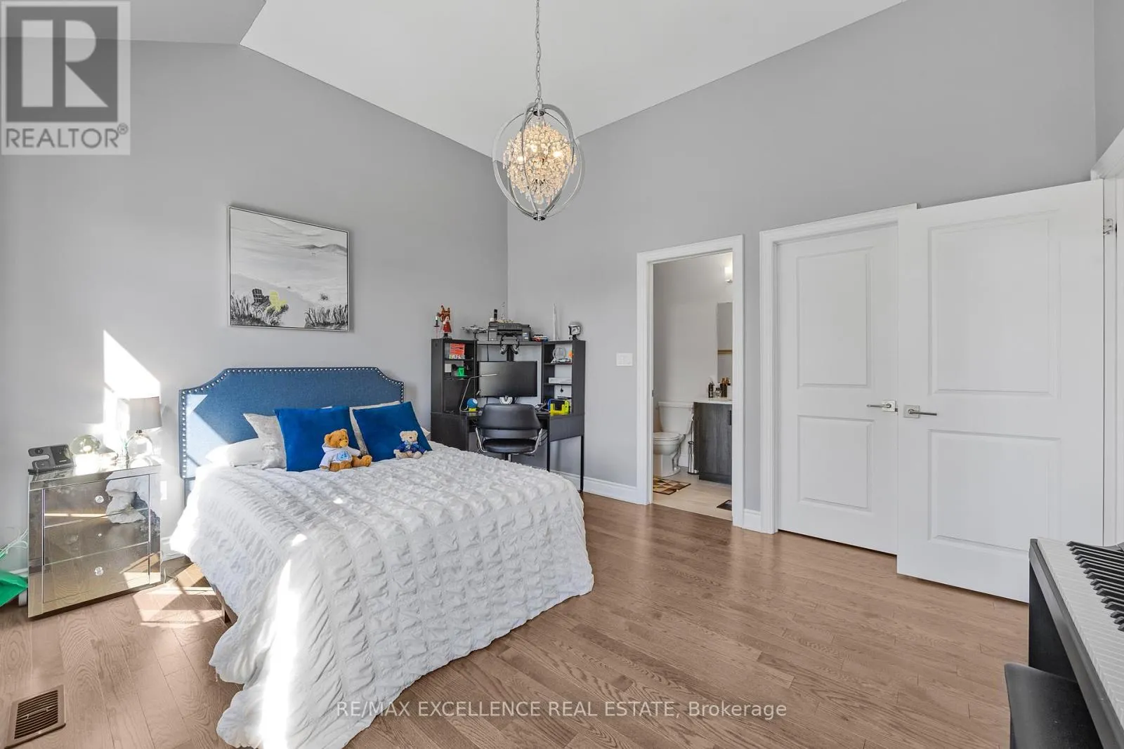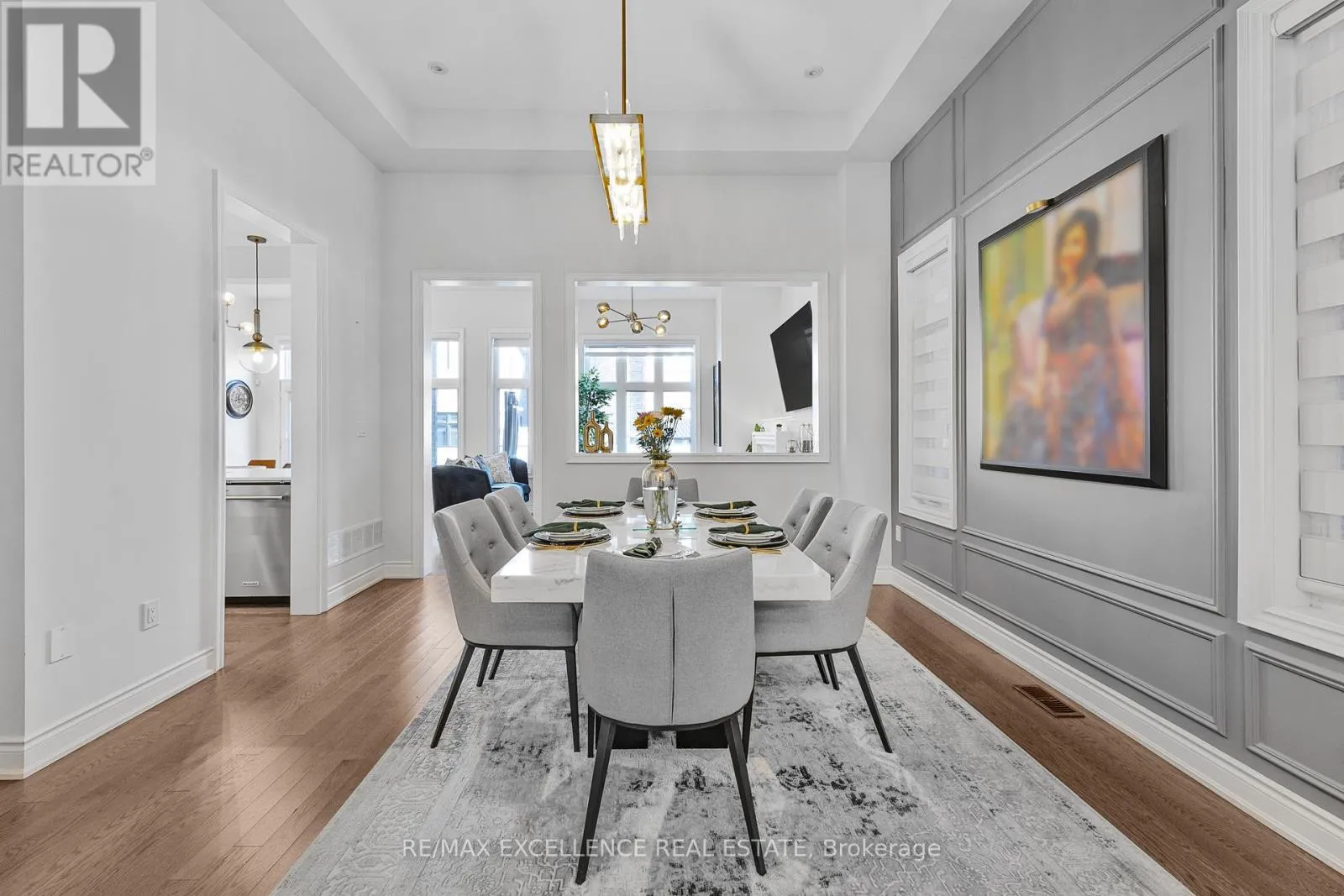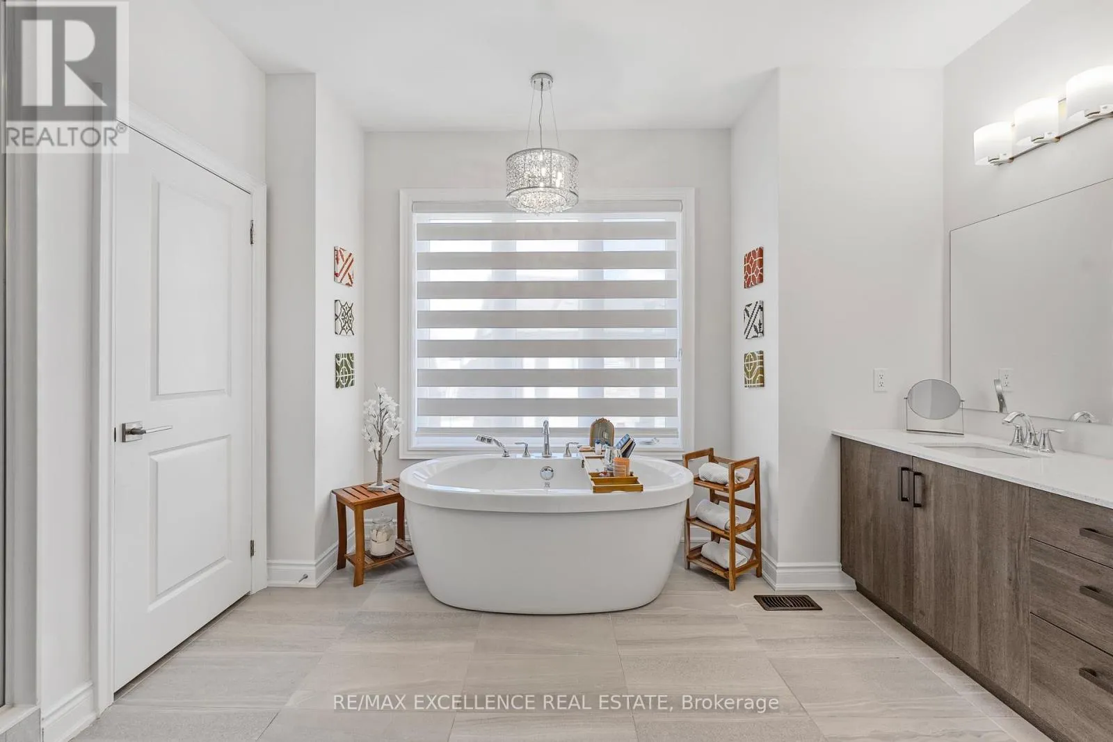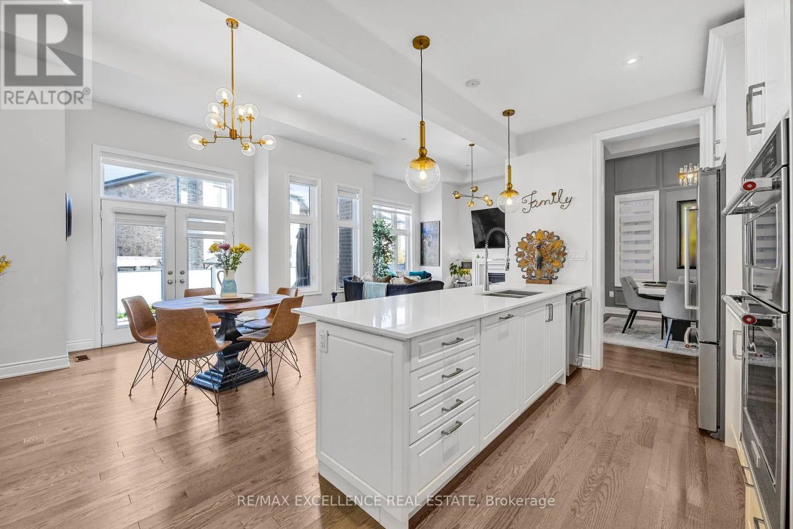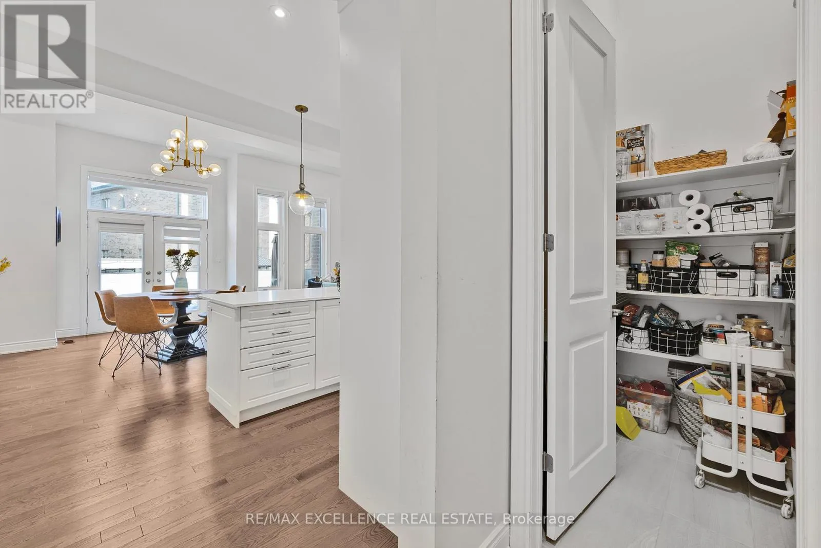 Bronte Rd & QEW This modern, light-filled home in Glen Abbey Encore sits on a quiet cul-de-sac on a 39 by 101-foot lot and welcomes you through double doors and natural stone entrance into a stunning carpet-free open layout. Soaring 12-foot ceilings on the main floor, 9-to-11-foot ceilings on the upper floor and 9-foot ceilings in the unfinished basement are complemented by elegant tray ceilings, accent walls, a centralized humidifier and over $100K in premium upgrades. The main floor features formal living and dining rooms perfect for entertaining. At the heart of the home is spacious family room with a modern fireplace overlooking beautifully landscaped backyard. The open-concept kitchen features built-in garbage bins, S/S appliances and custom full-height glass cabinets. Pot lights throughout the main floor add a warm, inviting ambiance. The mudroom, complete with a side entrance from garage and built-in closet adds everyday convenience. The garage features high ceilings, durable epoxy flooring and is equipped with EV charger. Upstairs, you'll find four generously sized bedrooms each thoughtfully designed to offer comfort and privacy. The primary suite, accessed through elegant double doors, serves as a luxurious retreat featuring a 5-piece ensuite, a separate marble-topped makeup counter and his-and-hers walk-in closets. Bedrooms 2 and 3 each include their own 4-piece ensuites and walk-in closets, Bedroom 4 offers a private 4-piece ensuite with a double closet. A bright private office bathed in natural light provides ideal environment for focus, work, or study. Completing the upper level is a conveniently located laundry area adding everyday ease to family living. The backyard is private oasis featuring a gas hookup for an outdoor kitchen - perfect for gatherings. A modern composite fence ensures privacy while both front and back yards are beautifully landscaped and enhanced with accent lighting and exterior pot lights creating a warm, inviting ambiance for evening relaxation. (id:27476)