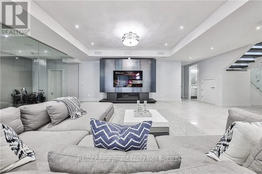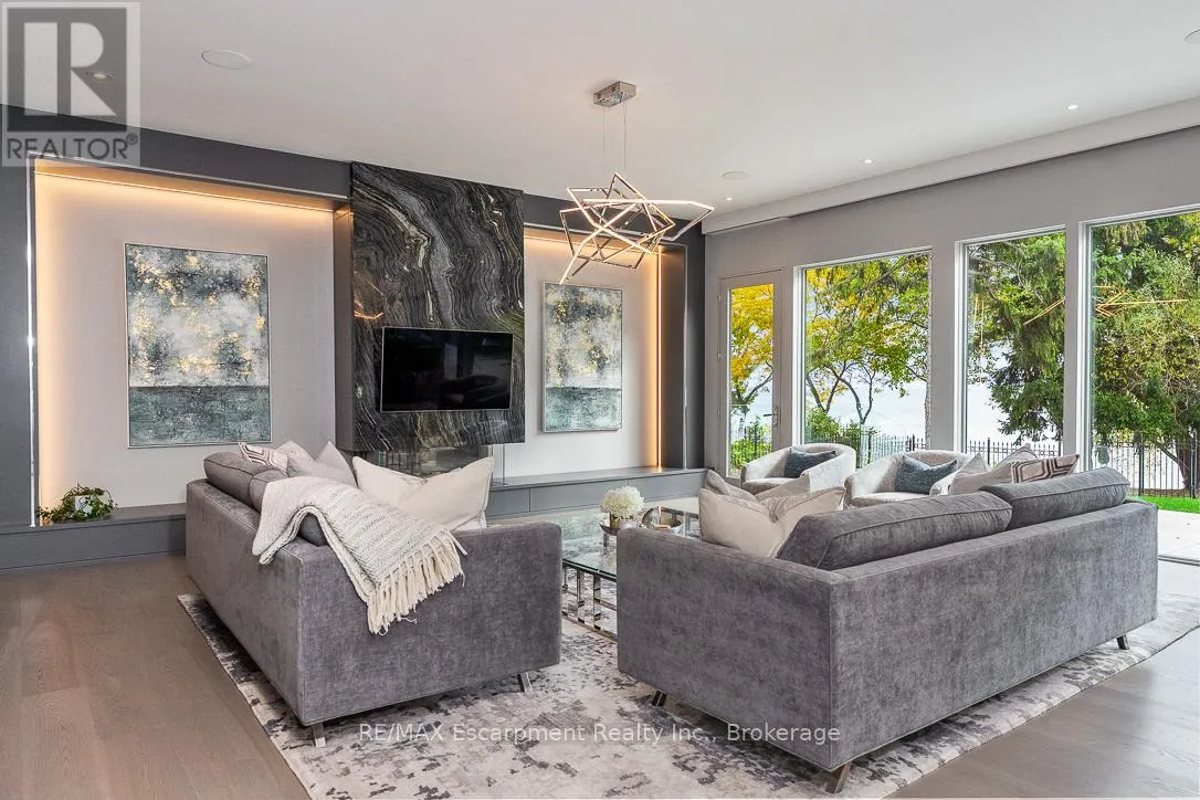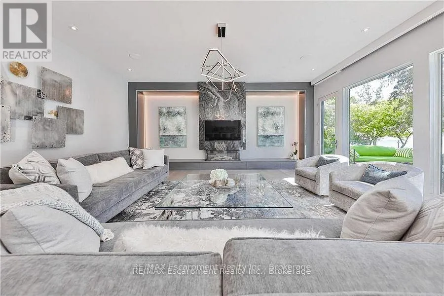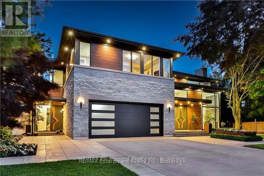 Kingsford Pl to Chancery Lane W Designed to capture panoramic water views - Waterfront luxury awaits at 2250 Chancery Lane W. On exclusive SE Oakville enclave, this modern masterpiece offers 9,177 sf w/5 bdrms & 7 baths. Bright & airy w/ soaring 10ft ceilings on every level & vast windows. Chef's kitchen w/ modern cabinetry, quartz countertops & slab backsplash & top-of-the-line Gaggenau B/I appliances. All living & entertaining spaces are generously proportioned, offer lake vistas & lux finishes such as suspended slab fireplaces, designer lighting & integrated storage to maintain a sleek aesthetic. Multiple walkouts lead to natural stone terrace & infinity pool. MF office. Upstairs - Primary retreat, w/spa-like ensuite & Lake views. 3 add'l bdrms, each w/ensuite, & a laundry rm. Lower Level-Automated theatre, golf simulator, rec/games room w/wet bar; 5th bedroom, exercise room, wine wall, 2 full bathrooms, & walk-up to yard. 3-level elevator, heated tiled floors & full home automation. LUXURY CERTIFIED. (id:27476)