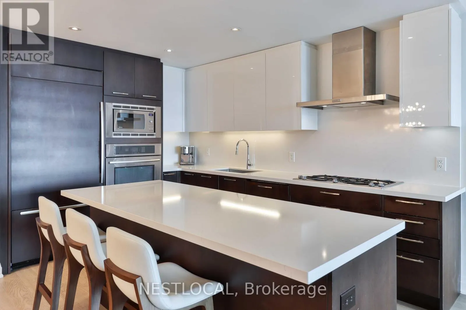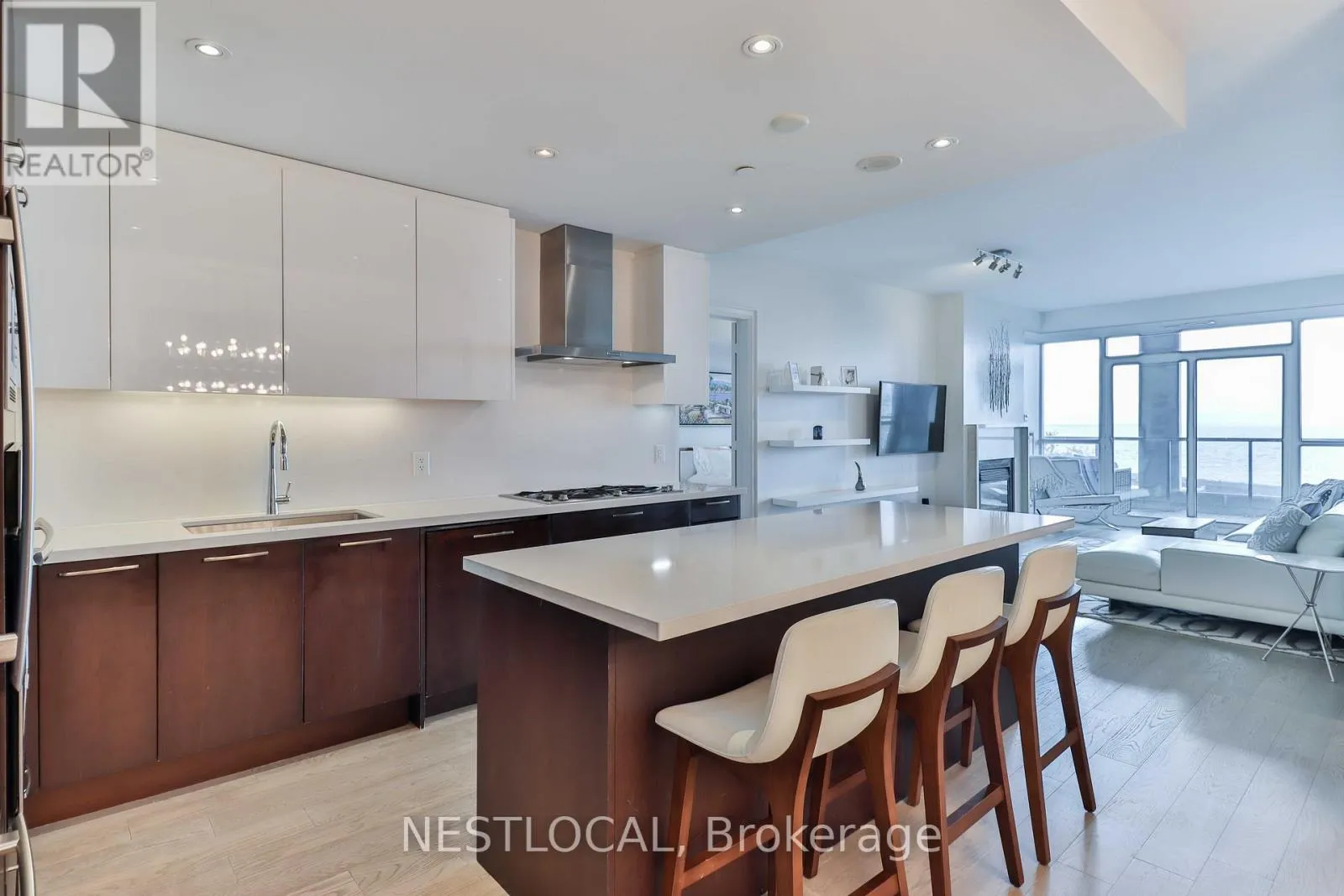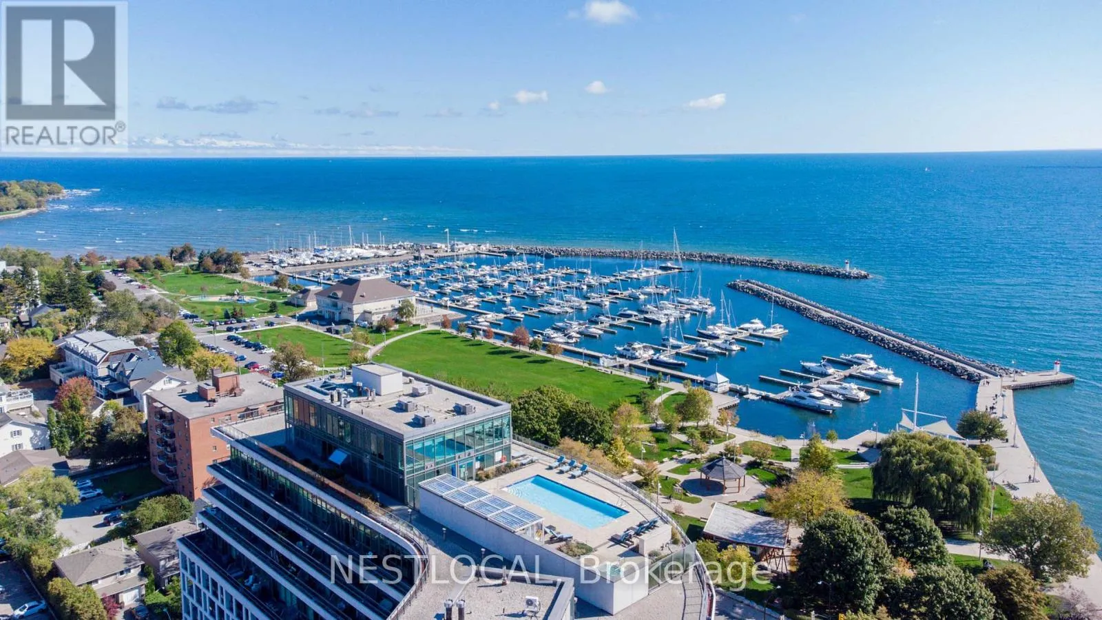 Cross Streets: Bronte Rd & Marine Dr. ** Directions: Drive South on Bronte Rd, the building is just passed Marine Dr on the East side. Experience Oakville's lakefront luxury living at its finest in this stunning 2 bedroom + den, 3-bathroom home, completely transformed with over $100K in high-end renovations. Step into an open-concept living space adorned with engineered hardwood floors, elegant lighting fixtures, and a chefs kitchen which boasts quartz countertops, built-in appliances, and a stunning center island, perfect for both entertaining and everyday living. Enjoy the spacious 220sq ft outdoor terrace with panoramic lake views, ideal for relaxing or hosting guests. This home includes 2 parking spots and a storage locker for added convenience. Indulge in resort-inspired amenities such as saunas, rooftop pool and hot tub with cabanas & a BBQ/dining area, along with a state-of-the-art gym and yoga studio offering breathtaking lakeside views. Entertain in style with an upscale wine lounge, 3 party rooms for every occasion, a cinema, and a game room. Unwind in the warm, elegant library, and don't forget to take advantage of the underground car wash and pet washing station. Every detail has been thoughtfully curated for refined, turnkey lakeside living in glorious Bronte Village! (id:27476)