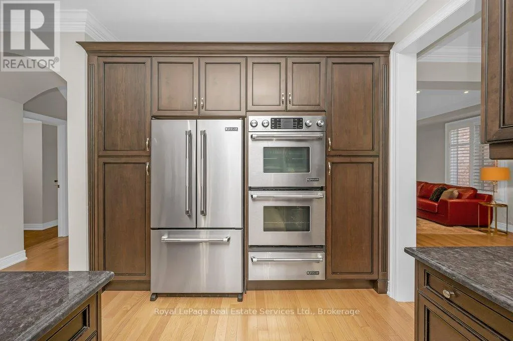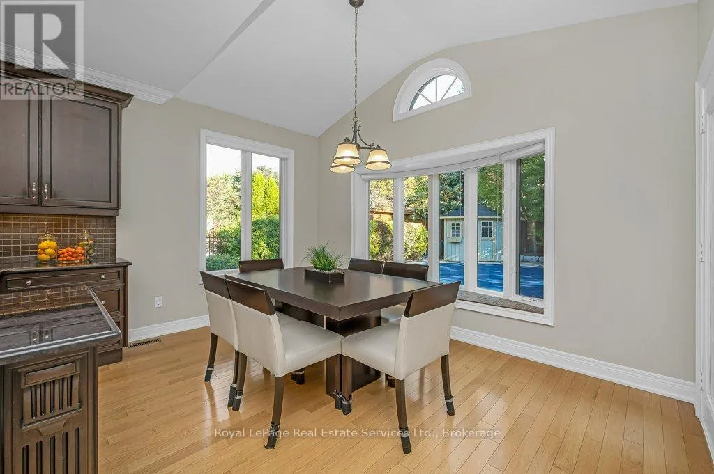 Cross Streets: Dundas/ Meadowridge. ** Directions: Dundas/Meadowridge/ Arrowhead/ Gamble. Rare Find! Prime Joshua Creek executive home with premium extra deep private lot nestled on a quiet family friendly street. A truly bright and airy home with soaring cathedral ceilings, light hardwood, loads of windows, open concept layout, spacious separate living & dining rooms, and the perfect home office complete with built-ins & extra high ceilings. The heart of this home is the chef inspired eat-in kitchen with high end Jenn Air stainless steel appliances overlooking the garden oasis with salt water pool. Upstairs, all 4 generous bedrooms have ensuite privileges. The carpet free lower level boasts a cozy rec room with gas fireplace, exercise area, and 5th bedroom with ensuite & walk-in closet. Located in Frazier top ranked Iroquois Ridge high school & Joshua Creek Public School districts. Recent improvements include Furnace & A/C '25, Roof '19, Pool Heater '23, Pool Pump & Salt System '22, Pool Safety Cover '17. Close to peaceful walking trails, parks, shops, and highways. A fantastic place to raise your family! (id:27476)