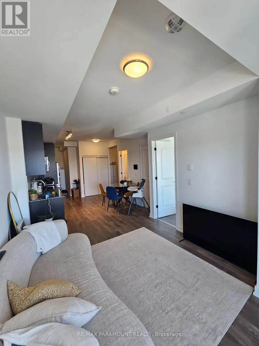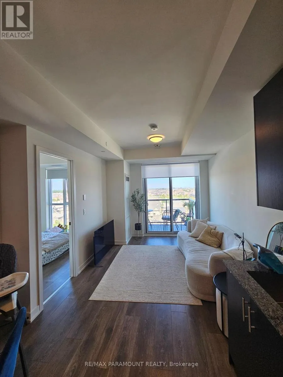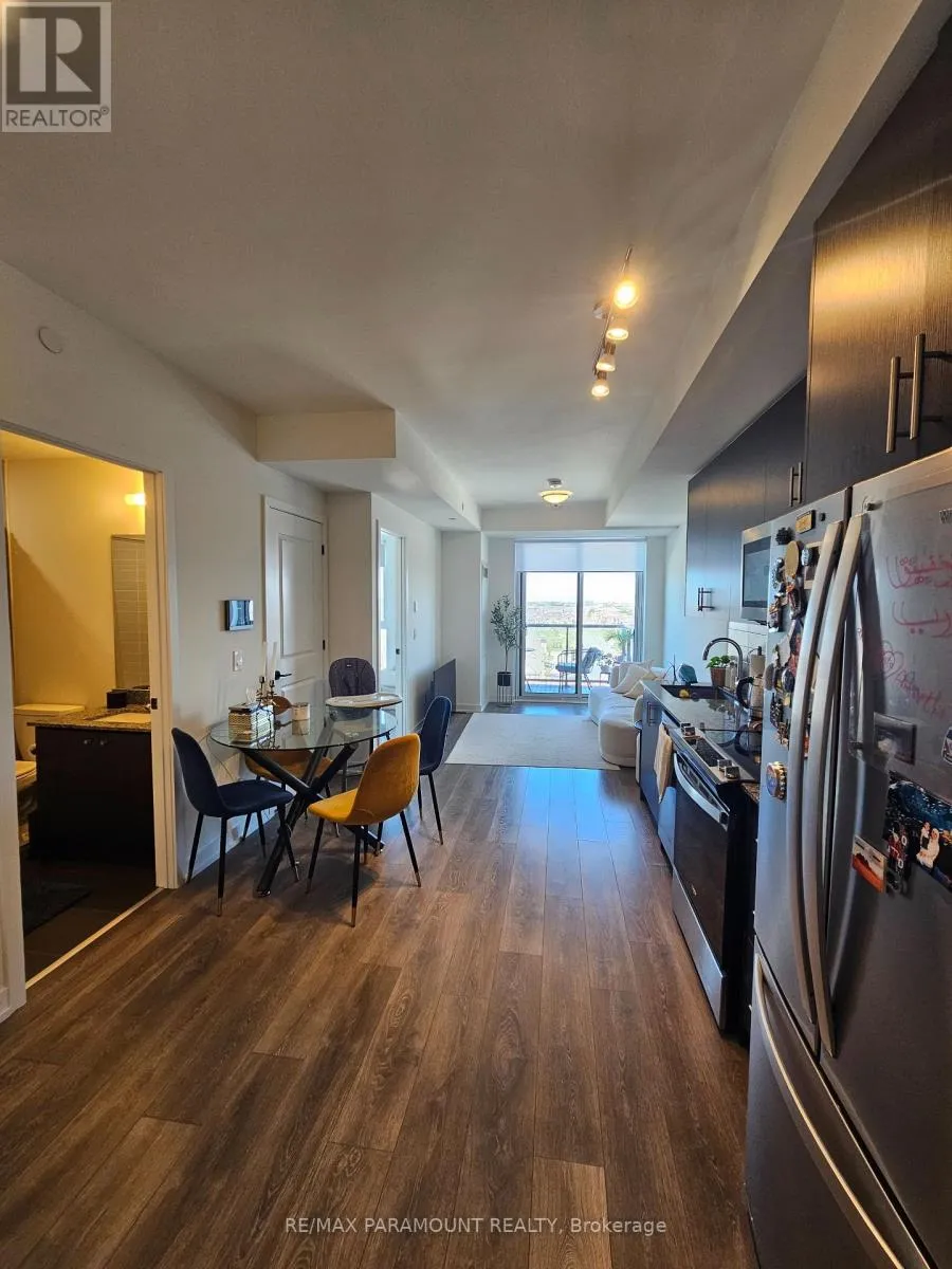 Dundas St E/Trafalgar Rd Welcome to Oakvillage by Minto Modern Luxury in the Heart of Oakville. Discover unmatched convenience and contemporary living in this spacious 1 + Den suite in Oakville's highly sought-after community at Dundas & Trafalgar. This stylish condo offers a thoughtfully designed layout with soaring 9 ceilings, floor-to-ceiling windows, and upgraded wide-plank hardwood flooring throughout. The open-concept living, dining, and kitchen areas are perfect for entertaining. A spacious kitchen features premium granite countertops, full-size stainless steel appliances and ample cabinetry. Step out to the balcony to enjoy panoramic views. The bright primary bedroom includes a walk-in closet, while the versatile den is ideal for a home office, bedroom, play area or guest space. Additional highlights include full-size in-suite laundry, a 4-piece monitoring. Residents enjoy premium amenities such as a fitness centre, party room, BBQ area, bike storage, visitor parking and more! One underground parking space and high-speed internet are included in the condo fees. Experience city living surrounded by nature, with over 200 km of walking trails, parks, and greenspaces right at your doorstep. (id:27476)