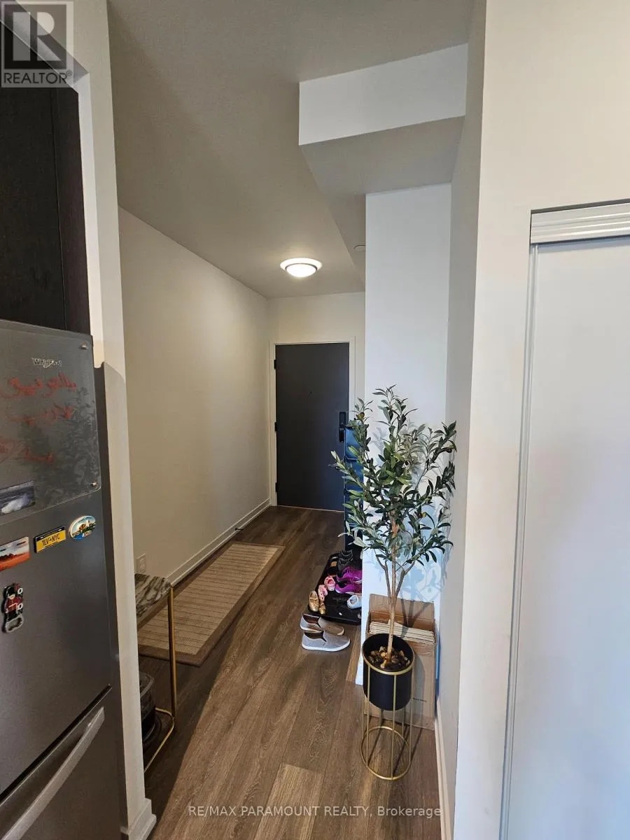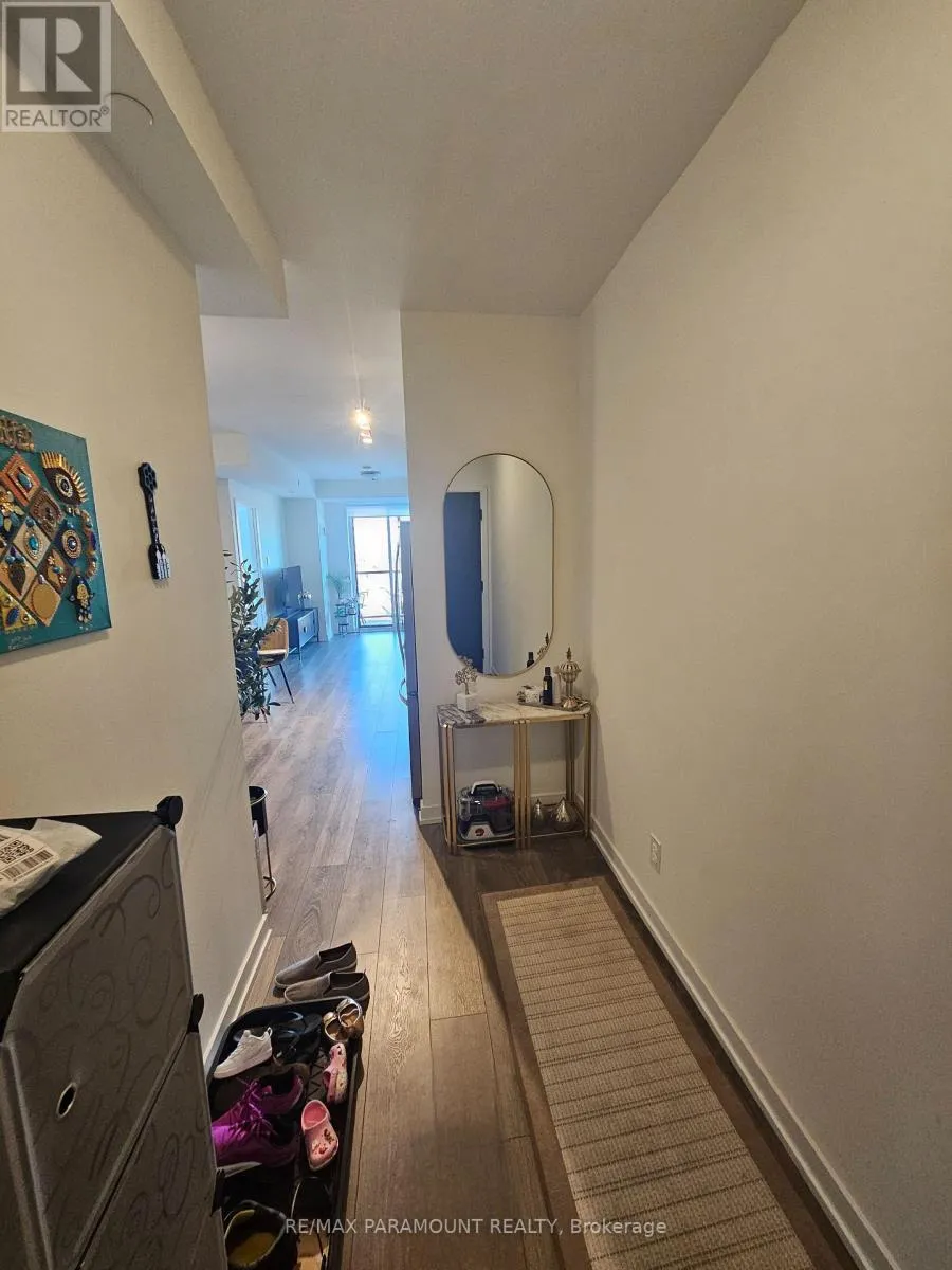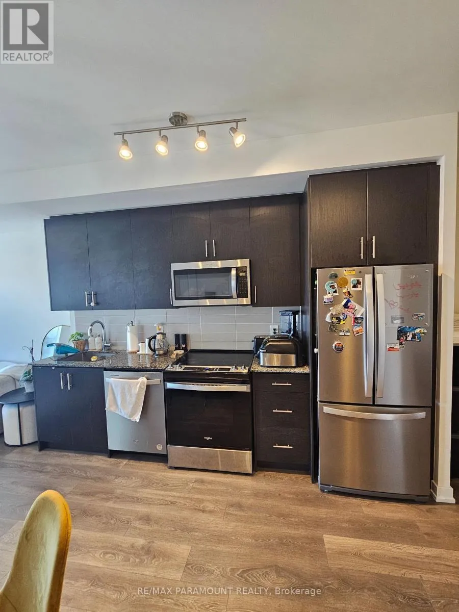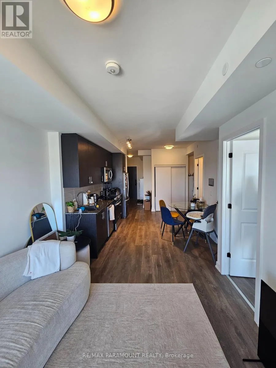 Dundas St E/Trafalgar Rd Welcome to Oakvillage by Minto Modern Luxury in the Heart of Oakville. Discover unmatched convenience and contemporary living in this spacious 1 + Den suite in Oakville's highly sought-after community at Dundas & Trafalgar. This stylish condo offers a thoughtfully designed layout with soaring 9 ceilings, floor-to-ceiling windows, and upgraded wide-plank hardwood flooring throughout. The open-concept living, dining, and kitchen areas are perfect for entertaining. A spacious kitchen features premium granite countertops, full-size stainless steel appliances and ample cabinetry. Step out to the balcony to enjoy panoramic views. The bright primary bedroom includes a walk-in closet, while the versatile den is ideal for a home office, bedroom, play area or guest space. Additional highlights include full-size in-suite laundry, a 4-piece monitoring. Residents enjoy premium amenities such as a fitness centre, party room, BBQ area, bike storage, visitor parking and more! One underground parking space and high-speed internet are included in the condo fees. Experience city living surrounded by nature, with over 200 km of walking trails, parks, and greenspaces right at your doorstep. (id:27476)
