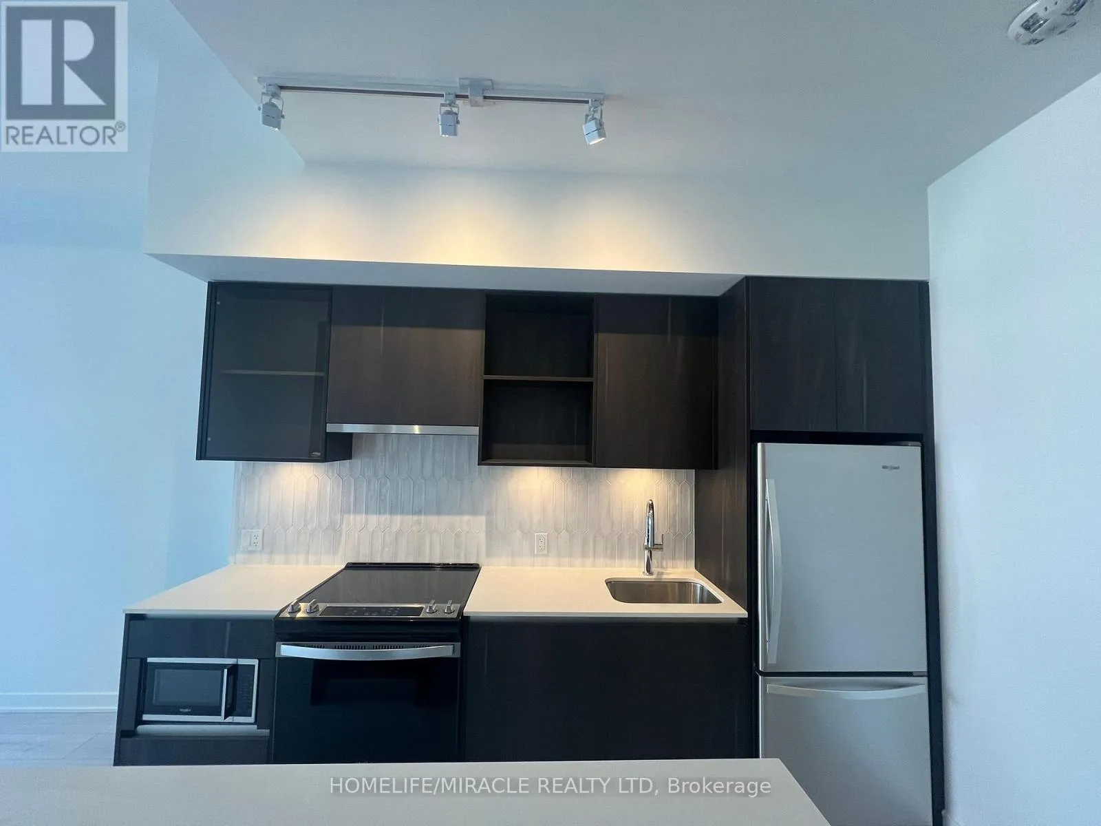 Dundas St W & Trailside Dr Discover modern living in this stylish one-bedroom + one versatile den, two full bathrooms condo in prestigious Oakville. Newly built and designed for comfort, this home offers a spacious bedroom with a luxurious ensuite bathroom and ample closet space. Convenience meets functionality with an ensuite laundry making everyday tasks a breeze. Featuring open concept living areas flowing seamlessly providing a perfect spot to relax and entertain. Sleek, contemporary kitchen equipped with stainless steel appliances, quartz countertops, and plenty of storage. Natural light fills the rooms with laminate flooring and 9'ft ceilings throughout. Designated parking spot and secure locker included. Conveniently located near GO transit, highways 407, 403 & QEW. Close to regional bus stops for easy commuting. Easy access to the state-of-the-art hospital, top schools, community centers, shopping, restaurants, beautiful golf courses, scenic parks & trails. Amenities include 24-hour security/Concierge, gym, lounge, terrace, lobby & social/games room (id:27476)