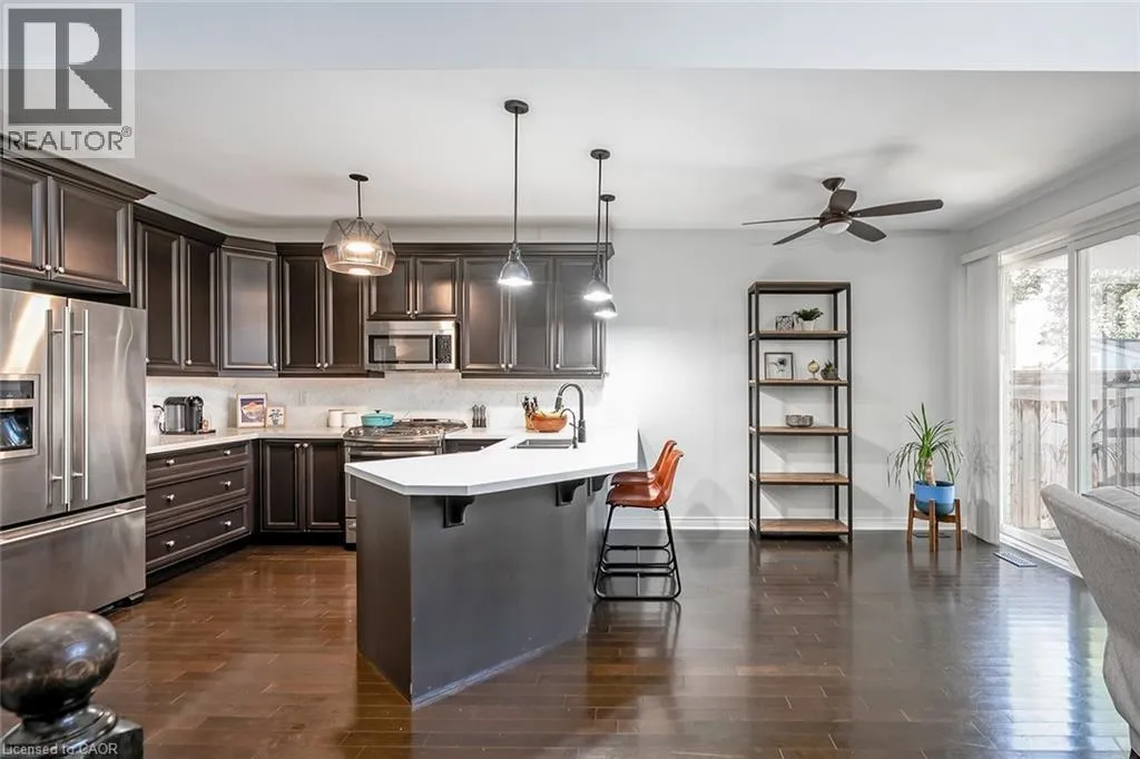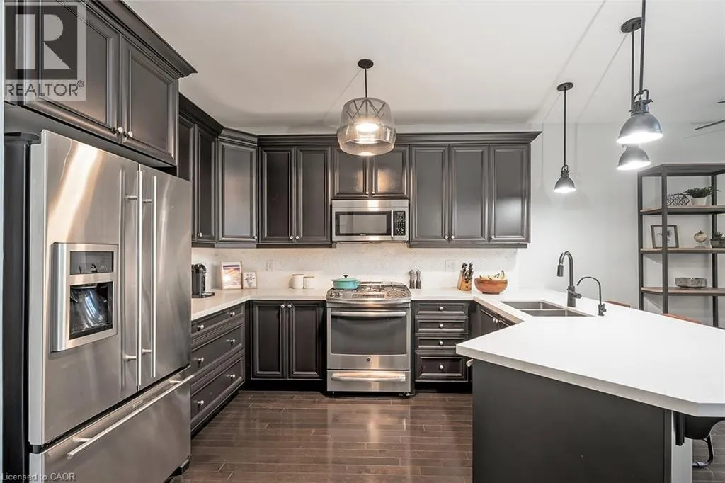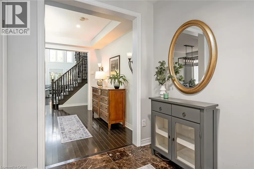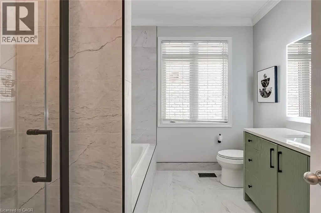 Dundas Street W to Colonel William Parkway Rarely offered freehold bungaloft on one of Bronte Creekâs most desirable crescents. Nestled among protected conservation areas, scenic trails, and top-ranked schools, this home combines the convenience of main-floor living with the flexibility of additional loft and finished basement spaces, totalling almost 4,000sqft. Inside, youâll find a thoughtfully designed layout starting with a spacious primary suite on the main level, featuring a cozy gas fireplace and a fully renovated spa-like 4-piece ensuite with soaker tub and glass shower. A second main-floor bedroom (or office) enjoys ensuite access to a beautifully updated 3-piece bath. The upper loft level offers a private retreat for guests or family, complete with a third bedroom, a full bathroom, and an inviting open family room. The heart of the home is the bright, open-concept living space: a formal dining room with coffered ceilings, an upgraded eat-in kitchen with new counters, faucets, and backsplash, and a sun-filled breakfast area overlooking the impressive two-storey great room with 18â ceilings and a second gas fireplace. Step outside to a professionally landscaped backyard oasis featuring stone walkways and a large patio - perfect for summer entertaining. The double garage with inside entry provides everyday convenience. For even more living space, the professionally finished basement features a large rec room, a fourth bedroom, a full bath, and an exercise room. Recent upgrades include: roof (DâAngelo), new front and garage doors, eaves, bathrooms, and kitchen finishes - giving you peace of mind and a move-in ready home. Located close to excellent schools, parks, trails, shopping, and major highways, this home offers both lifestyle and luxury in one of Oakvilleâs most sought-after communities. Donât miss your chance to own this Bronte Creek gem â book your private showing today! (id:27476)