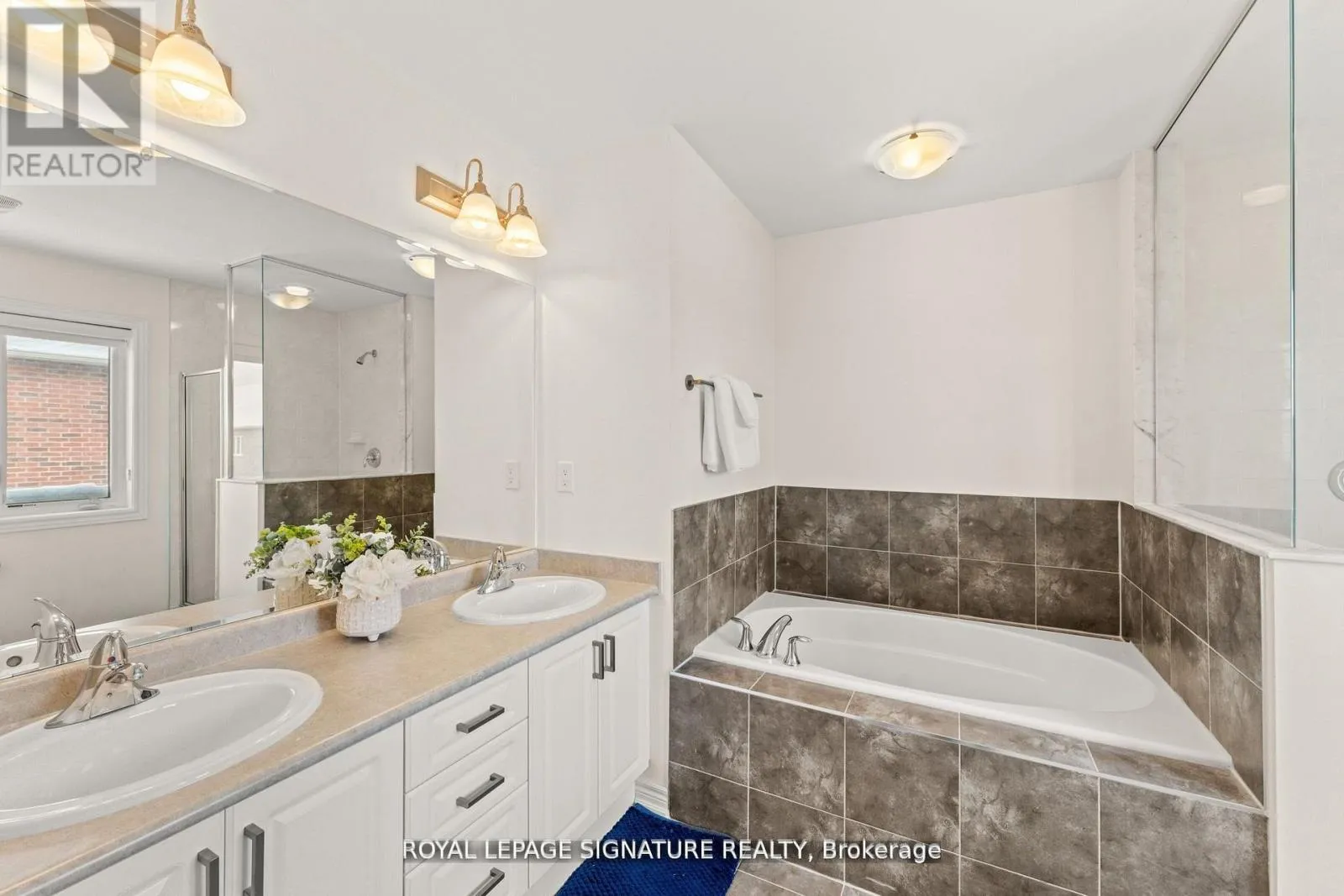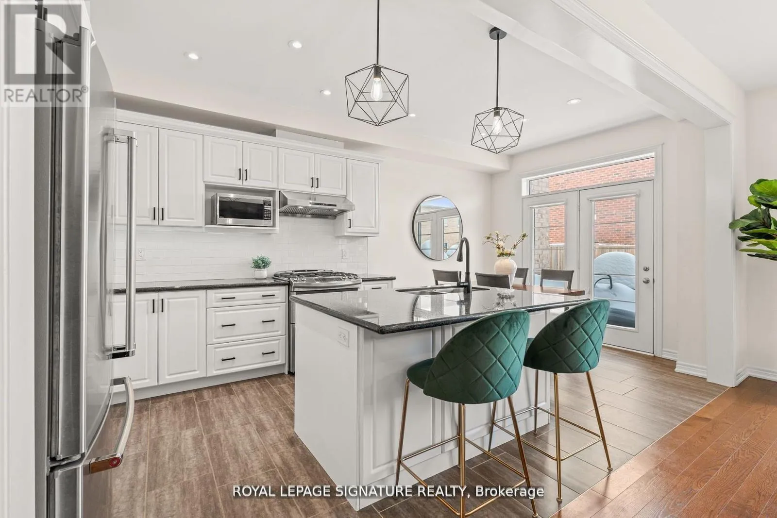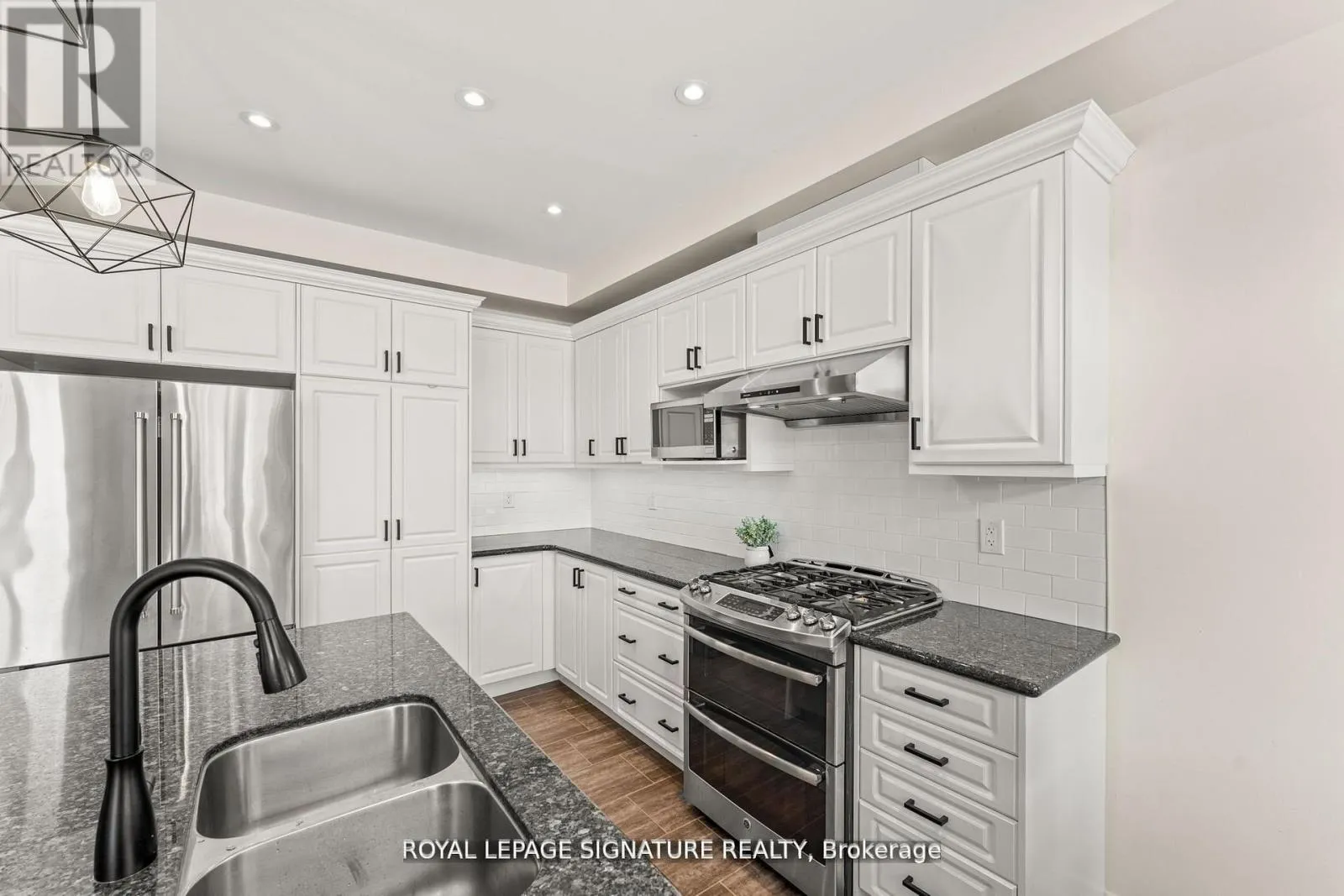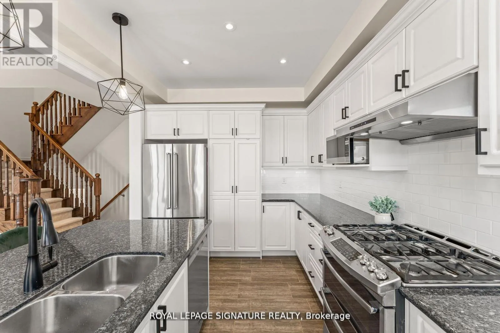 Fourth Line & Burnhamthorpe Welcome to 3453 Fourth Line by Rosehaven Homes, your perfect 3-bedroom 3-bath freehold townhome located in Oakville's most desired Glenorchy community. Step inside to high 9'ceilings and elegant hardwood floors on the main floor, and pot lights throughout both levels, leading outdoors to a fully-fenced backyard with manicured lawn, wood deck and gas BBQ line, perfect for gatherings. The open-concept kitchen features modern appliances, ample cabinet space with breakfast bar, quartz countertops & gas range. A living room complete with a gas fireplace. The second floor includes 3 spacious bedrooms, with the master suite boasting a walk-in closet and a luxurious 5-piece ensuite. A large guest bathroom and a conveniently located laundry room on the second level. Additional upgrades include EV charger, central vacuum, and owned hot water tank. Located in Oakville's Glenorchy community, this home is near top-rated schools, nature trails, golf courses, newly renovated sports complex, hospital and Highway 407. (id:27476)
