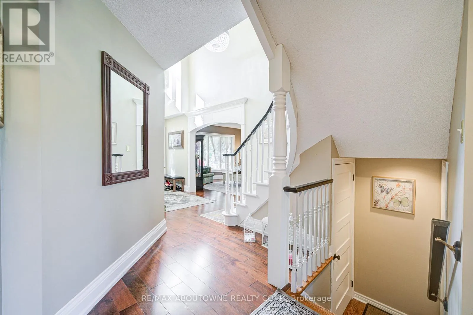 Cross Streets: Glenashton Dr & Trafalgar Dr. ** Directions: Southwest of Glenashton Dr & Trafalgar Dr. Welcome to this absolute Gem on a rarely available Ravine Lot on Meadowland Drive. Mattamy built "Ashley" Model. 4 bedroom, 3000 sq.ft beautifully maintained home. Hardwood flooring throughout main and 2nd floor. Stunning Kitchen with built in appliances, French doors from the breakfast area open to a professionally landscaped backyard, featuring a stunning ravine view, an in-ground pool, and a cabana bar your own private oasis in the heart of Oakville. Trex decking provides comfortable sitting area in the front of the home. Enormous Master Bedroom overlooking front of the home complete with 3 piece ensuite overlooking the ravine, as well as 3 generous sized bedrooms with views of the front and Ravine, plus additional 4 piece bath. An absolute must see! (id:27476)
