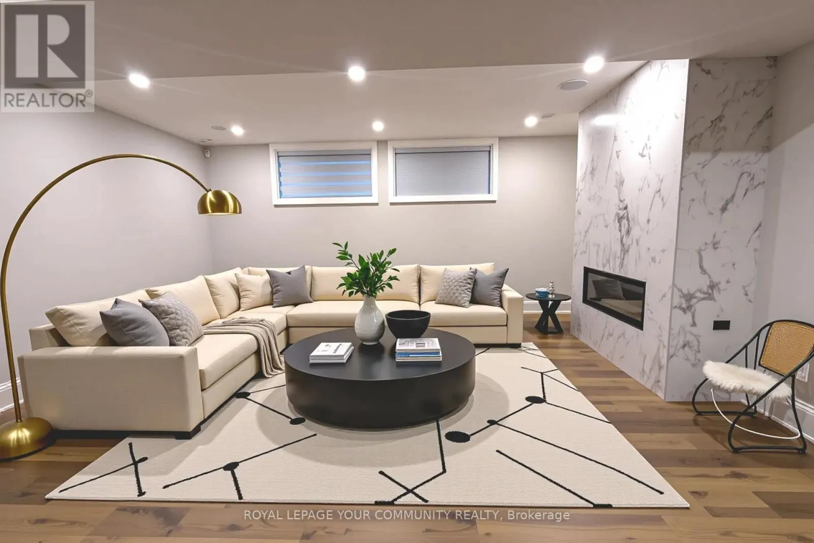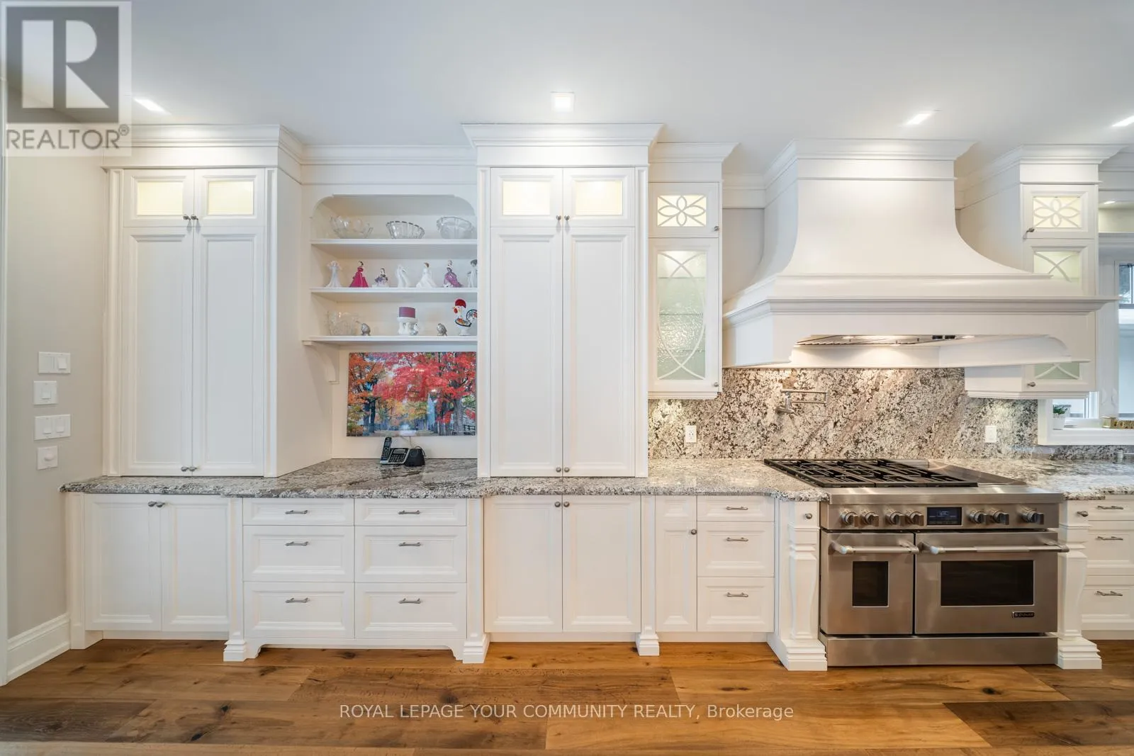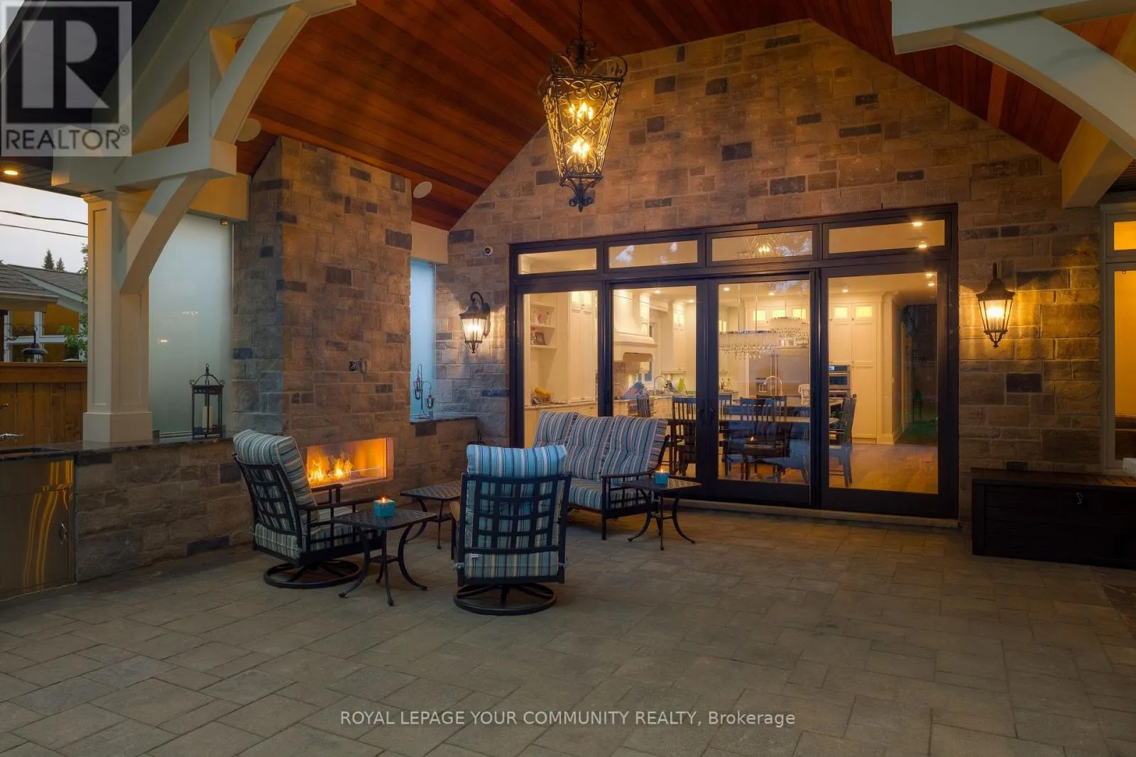 LAKESHORE/WESTMINSTER/WARLAND Welcome to 1551 Warland Rd, a stunning custom-built bungaloft in the heart of highly sought-after South Oakville. Nestled just a 5-minute walk from Coronation Park and the serene shores of Lake Ontario, this exceptional residence offers over 5,700 square feet of meticulously finished living space, blending luxury, comfort, and modern convenience. Step inside to discover an inviting main floor where primary rooms exude elegance with coffered ceilings, expansive picture windows flooding the space with natural light, and rich hardwood flooring. The gourmet kitchen is a chefs dream, featuring top-of-the-line JennAir appliances, including dual dishwashers, a gas stove with a custom hoodfan, side-by-side fridge, built-in oven, and microwave. A butlers pantry and servery seamlessly connect the kitchen to the dining room, perfect for effortless entertaining. The bathrooms elevate luxury with quartz countertops, undermount sinks, sleek glass shower enclosures, and heated flooring for year-round comfort. The primary suite, conveniently located on the main level, offers a tranquil retreat with sophisticated finishes and ample space. Downstairs, the lower level impresses with a custom wet bar and wine room, ideal for hosting guests, alongside a dedicated exercise room for your wellness needs. Every detail has been thoughtfully designed to enhance your lifestyle. Step outside to the backyard oasis, where an outdoor patio steals the show with a custom pizza oven, built-in barbecue, and a covered area featuring a cozy fireplace perfect for al fresco dining or relaxing evenings under the stars. Located in one of Oakville's most desirable neighborhoods, this bungaloft combines timeless craftsmanship with modern amenities, all just steps from parks, lakefront trails, and the vibrant South Oakville community. (id:27476)