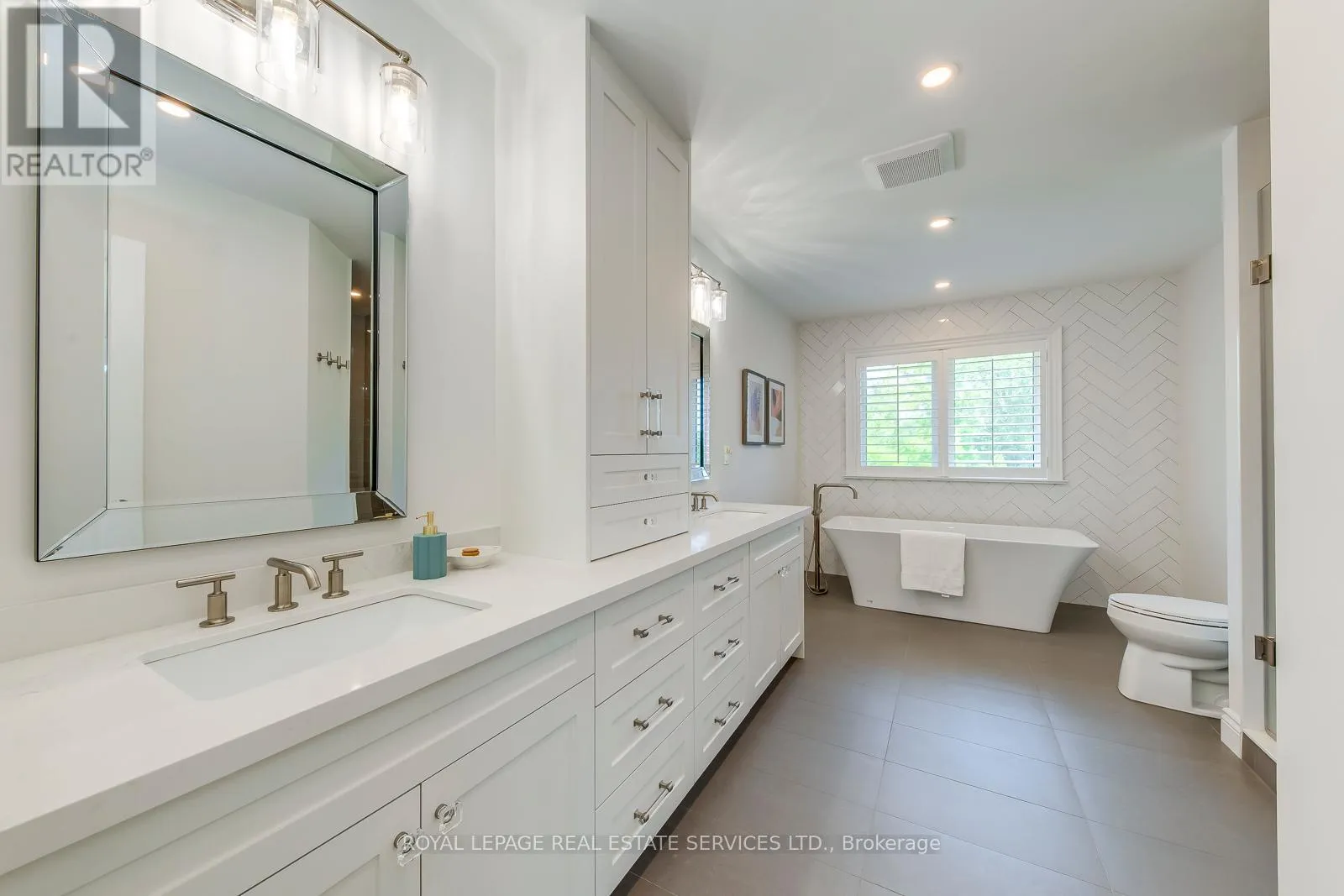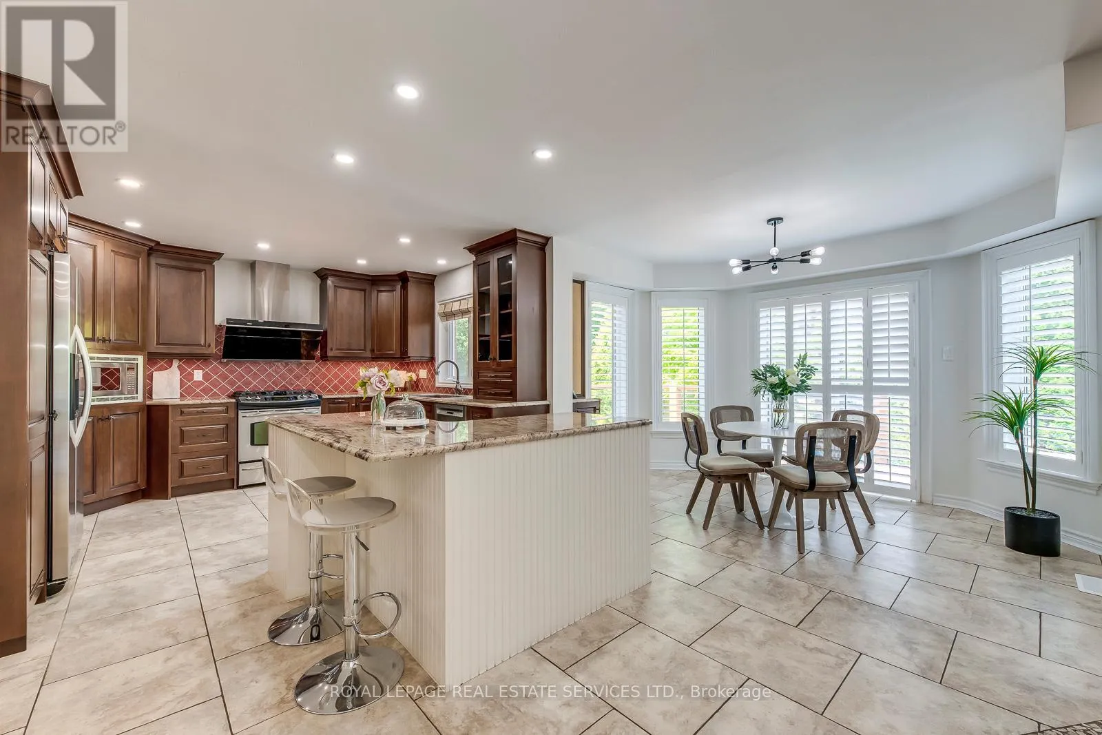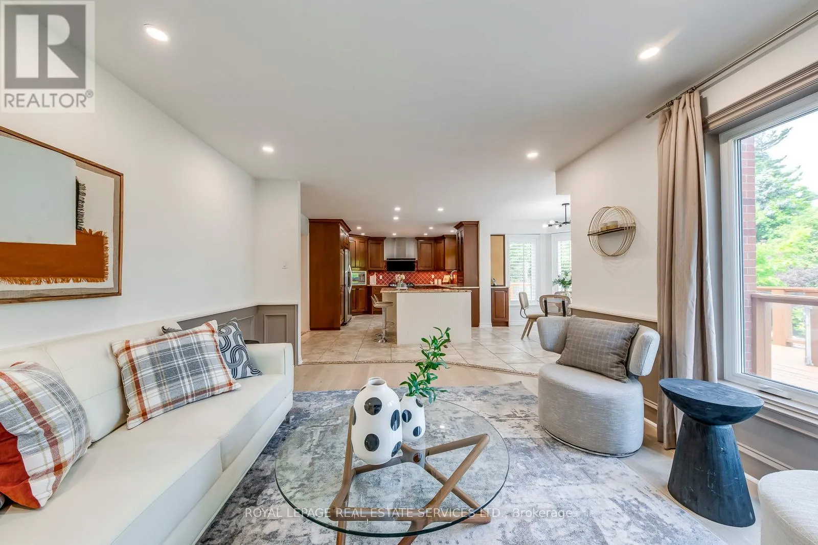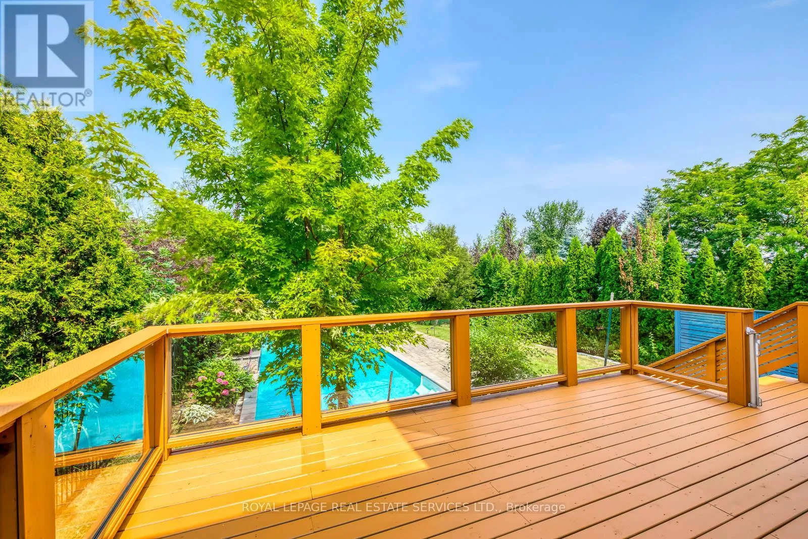 Upper Middle/Grand/Bayshire Dr Stunning 4-Bedroom Family Home Backing onto Ravine in Prestigious Joshua Creek! This beautifully maintained 3,121 sq ft detached home offers 4 bedrooms and 4 bathrooms, situated on a premium ravine lot with breathtaking views. Enjoy spectacular sunsets from your private deck overlooking a beautifully landscaped backyard oasis with a pool, mature trees, and complete privacy. The main level is thoughtfully designed for comfortable family living-featuring a spacious dining room perfect for gatherings, a bright living room with vaulted ceilings and impressive windows, and a dedicated office for working from home.Upstairs, the large primary bedroom retreat offers a walk-in closet and a relaxing atmosphere, complemented by three additional spacious bedrooms and a beautifully renovated main bath.The walk-out basement provides fantastic extra living space with a generous rec room, bar, game area, full bath, and ample storage-ideal for entertaining or relaxing after a summer swim. Recent upgrades include stylish new flooring and upgraded stair finishes (2022), an owned hot water heater (2022). Located in the highly desirable Joshua Creek community, within top-rated school zones (Joshua Creek PS & Iroquois Ridge HS), and complete with a double garage, this home is the perfect blend of space, comfort, and location. (id:27476)