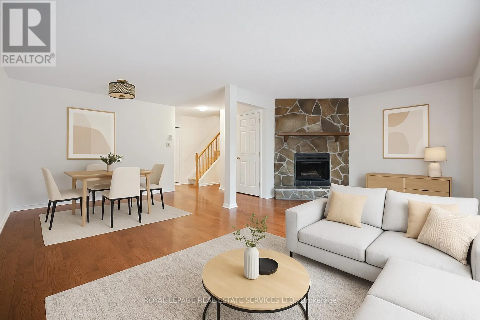 Cross Streets: Upper Middle Road East and Trafalgar Road. ** Directions: Trafalgar Road / McCraney Street East. MATURE COLLEGE PARK! PRIVATE ENCLAVE OF 16 EXCLUSIVE TOWNHOMES BACKING ONTO McCRANEY VALLEY TRAIL! PREMIUM END-UNIT CONDOMINIUM TOWNHOME SURROUNDED BY PARKS AND NATURE TRAILS! This sought-after family-friendly community is within walking distance of Montclair Public School, St. Michael Catholic Elementary School, White Oaks Secondary School, Sheridan College, and Oakville Place. This well-designed townhome features a spacious main level offering a dining room that is open to the living room with a woodburning fireplace ("as is" condition) and a sliding door walkout to the patio, plus an updated kitchen equipped with stainless steel appliances, pantry, and bright breakfast nook. Upstairs you'll find an oversized primary bedroom with a walk-in closet and two-piece ensuite, two additional bedrooms, and a four-piece main bathroom. The partially finished basement offers a generous recreation room, laundry/utility room, and an abundance of storage space. Additional highlights include hardwood flooring throughout the living and dining areas, bay windows in the kitchen, living room, and primary bedroom, an attached garage with access to the backyard, and new decorative privacy screens at the side of the property to be installed by the condominium corporation. The monthly condominium fee of $635.53 covers building insurance, water, landscaping, snow removal, and parking. With easy access to public transit, the GO Train, and major highways, commuting is a breeze. Close to essential amenities yet nestled in a peaceful natural setting, this property offers the perfect blend of lifestyle, comfort, and convenience - an opportunity not to be missed. (some images contain virtual staging) (id:27476)