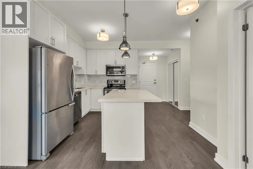 Dundas St - Old Bronte Rd CORNER UNIT! Fully upgraded, spacious and sun-filled 1 Bedroom 1 Bathroom condo comes with 1 underground parking spot, 1 storage locker, and a state of the art Geothermal heating and cooling system which keeps the hydro bills LOW!!! Featuring a 53sqft private balcony, an open concept fully upgraded kitchen with Quartz countertops, stainless steel appliances, tiled backsplash, upgraded lighting, vinyl flooring, and a large chefs island with deep storage cabinets. The condo is complete with a spacious & bright bedroom with a walk-in closet, a fully upgraded 4-piece bathroom and in-suite laundry with full sized stackable washer & dryer. Enjoy the fabulous amenities including a modern fitness facility. party room and rooftop patio. Situated in the desirable Westmount community in Oakville, with fabulous dining, shopping, schools and parks. Minutes away from the QEW/407, and a 15 minute commute to Mississauga, you donât want to miss this opportunity, book your showing today! (id:27476)