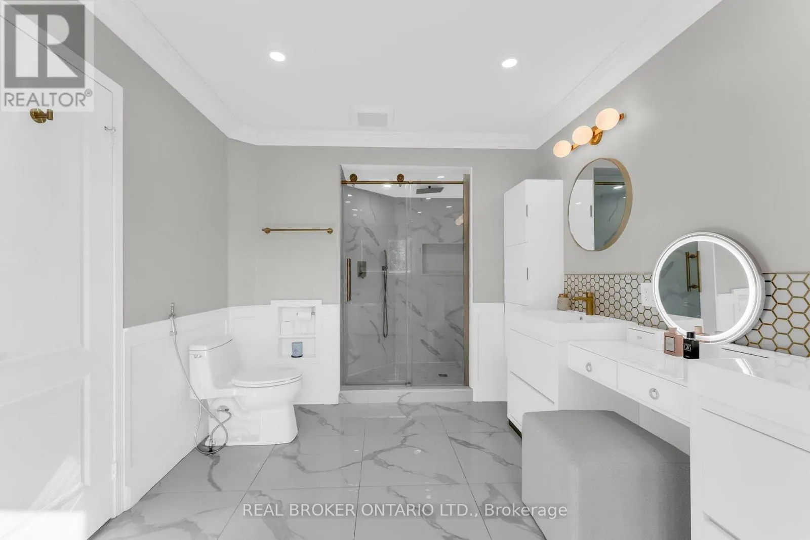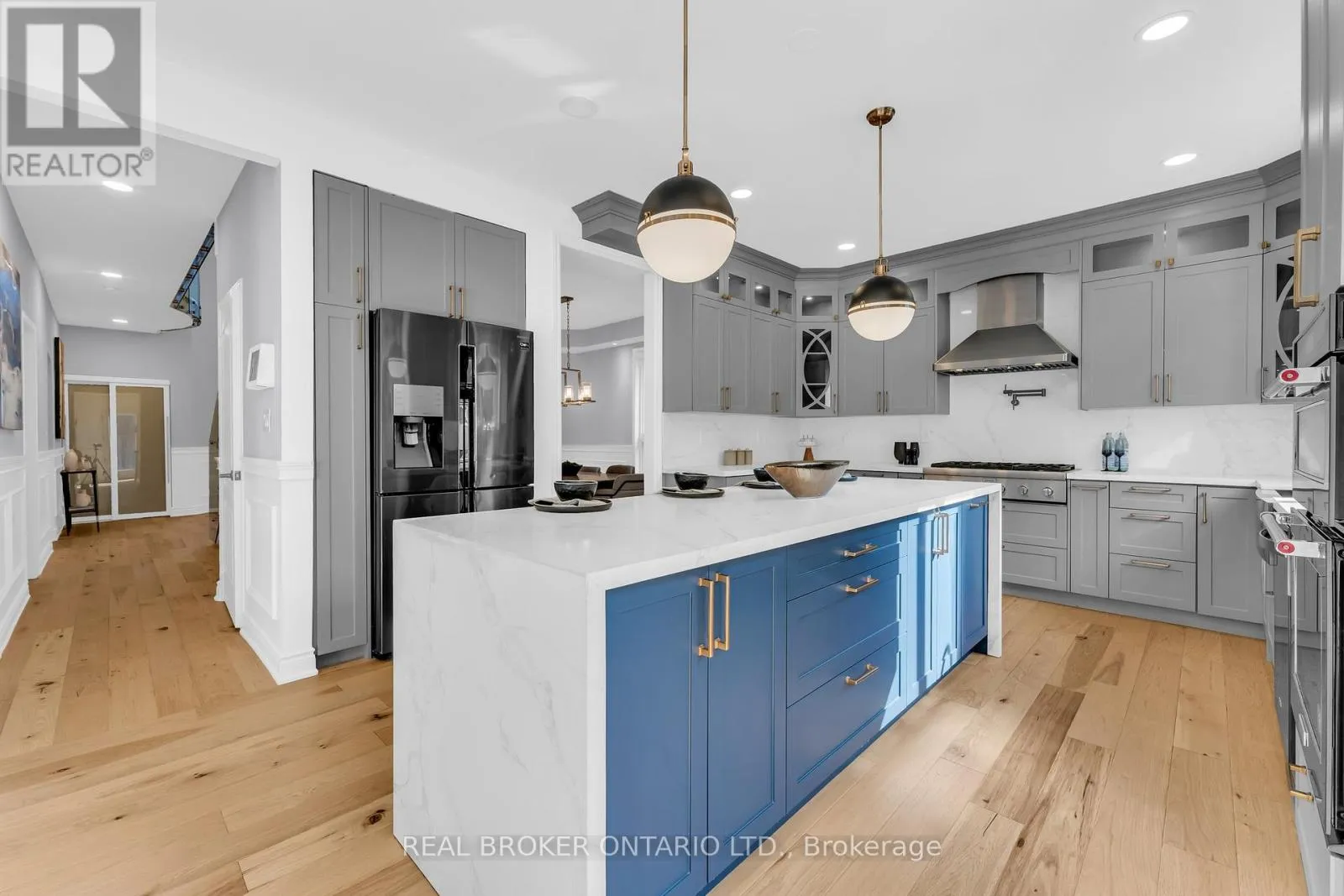 Postmaster Dr. and West Oak Trails Blvd. Welcome to 2293 Woodcrest Drive - a stunningly renovated 5-bedroom, 5-bath executive home nestled in Oakville's highly sought-after Westmount community. From the moment you enter, the quality and attention to detail are unmistakable-engineered hardwood floors, designer lighting, and a bright, open-concept layout designed for today's modern family lifestyle.The custom kitchen (2022) is a showpiece, featuring quartz countertops, stainless steel appliances, extended cabinetry, and a large centre island that flows effortlessly into the spacious family room. With its gas fireplace and wall-to-wall windows overlooking the backyard, this is the perfect spot for relaxing or entertaining.Upstairs, you'll find four generous bedrooms, including a serene primary suite complete with a walk-in closet and a spa-inspired ensuite bath. The finished basement extends the living space with a fifth bedroom, full bathroom, and a large recreation area-ideal for guests, teens, or a home office.Set on a 40 x 108 ft landscaped lot, the private backyard offers mature trees and a new deck, creating an inviting outdoor retreat for family gatherings and summer evenings.Enjoy peace of mind with major updates, including a new roof (2020), high-efficiency furnace and A/C (2023), EV-ready garage, and smart-home controls.Perfectly positioned within walking distance of top-ranked schools (Emily Carr PS, St. Joan of Arc CES, Garth Webb SS), scenic parks, trails, and shopping, with quick access to Bronte GO, Highway 407, and the QEW.Move-in ready, meticulously upgraded, and ideally located-this home offers the perfect blend of luxury, comfort, and Westmount charm. Bonus: The seller is offering a $10,000 home improvement credit-a unique opportunity to personalize your new home to your taste. Book your private showing today and experience executive living at its finest. (id:27476)