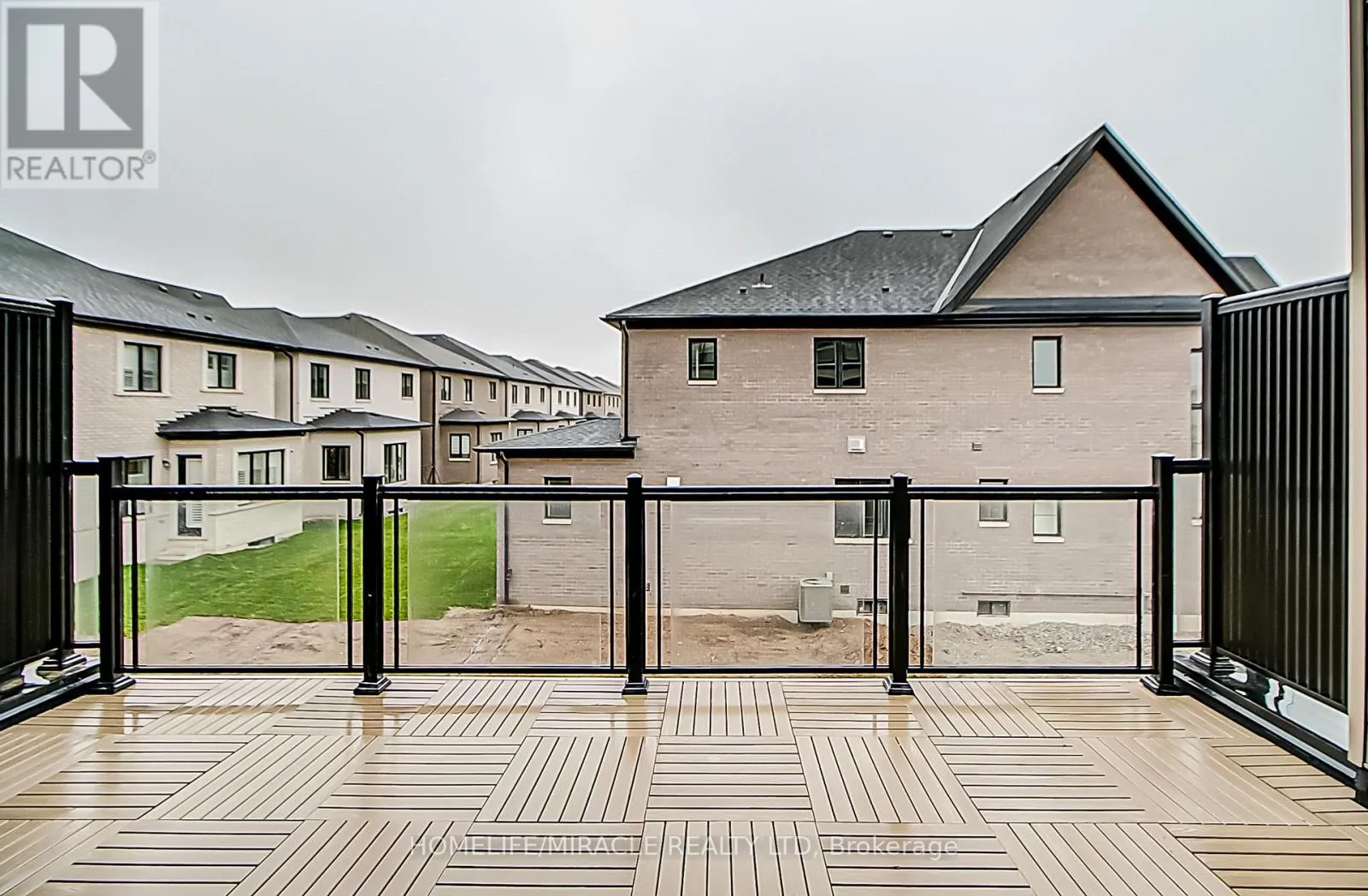 Meadowridge / Wheat Boom Gorgeous townhome (2,360 sq. ft) facing 4-acre park located in the family friendly community of Joshua Creek. This home features hardwood throughout, countless upgrades including quartz counters, undermount sinks, luxurious vanities, high ceilings (10 ft. on main and 9 ft. on upper) and an elegant oak staircase. Chef's kitchen features B/I Stainless Steel appliances and extended upper cabinets. Primary bedroom has a 5 pc. spa-like ensuite with double vanity, freestanding tub and standing glass shower. Main floor has separate living and family rooms, along with an office. Ground floor is above grade and features another bedroom and an ensuite. Lots of parking with a double car garage and 2 spots on the driveway. Upstairs Laundry. Basement is unfinished for additional storage. Two sprawling terraces for entertaining friends and family. Unbeatable location close to highways, top schools, grocery, restaurants etc. (id:27476)