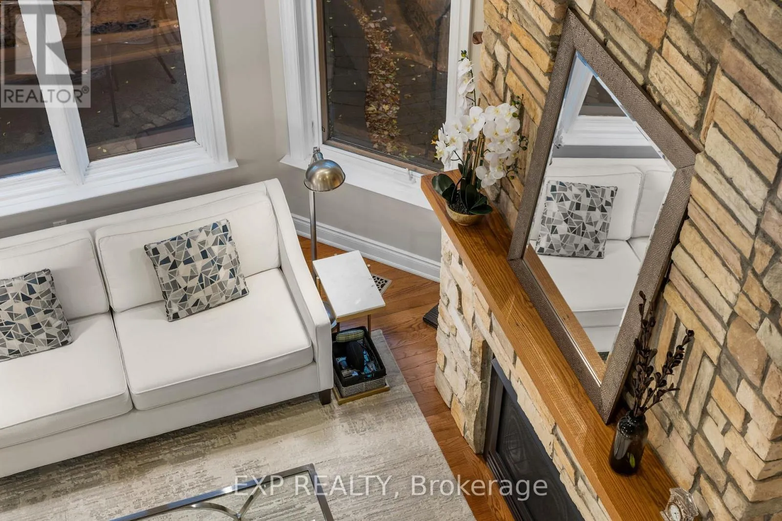 Cross Streets: Neyagawa and Upper Middle. ** Directions: Upper middle to Neyagawa, left, left on Ashdown Rd, left on Providence Rd, Left on Stratford Rd. Welcome to 448 Stratford Road, where refined elegance meets tranquil living in one of Oakville's most desirable neighborhoods. Nestled in the prestigious Woodhaven community, this one-owner luxury bungalow-loft offers exceptional craftsmanship, modern updates, and serene views backing onto a protected conservation area. From the moment you arrive, the professionally landscaped grounds and inviting stone interlock walkway set the tone for the sophistication found within. The private backyard oasis features a beautiful water feature, built-in stone seating, and lush natural surroundings, creating the perfect setting for relaxation or entertaining. Step inside to discover a bright, open-concept layout showcasing an impressive two-story great room with floor-to-ceiling stone gas fireplace, remote-controlled blinds, and hardwood flooring throughout the main level. The updated gourmet kitchen boasts new granite countertops, built-in appliances, under-cabinet lighting, and ample space for culinary creativity. The main-floor primary suite offers a peaceful retreat, featuring a 5-piece ensuite with jacuzzi tub, double sinks, and a spacious walk-in closet. Upstairs, you'll find two generous bedrooms, including one with a private 4-piece ensuite, ideal for guests or family. The fully finished lower level expands your living space with a gym area, family room, sitting area, and 3-piece bath - perfect for recreation or relaxation. Located just steps from heritage trails, parks, and top-rated schools, with easy access to shopping, restaurants, and major highways, this property delivers the best of luxury, comfort, and convenience. Features: New roof and gutters Aug 2025, kitchen renovation 2022, (B/i) oven and microwave combo 2024, A/c and furnace replaced 2017, painting (bedroom) 2025 and (main floor) 2022, remote blinds 2023, replaced two single garage doors to one double garage door with overhead clearance 2014. (id:27476)