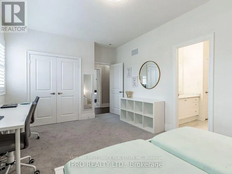 Burnhamthorpe & Eternity Exquisite 5-Bedroom Corner Home in Oakville's Prestigious Glenorchy Community! This stunning detached 2-storey home offers over 3500 sq. ft. of luxury living with 10' ceilings on the main floor and 9' ceilings upstairs, creating an open and airy atmosphere. The main floor features a private den/office, spacious family room with a cozy gas fireplace, and a gourmet kitchen with high-end appliances, quartz countertops, center island, and a bright breakfast area with walk-out to the backyard. Hardwood floors flow throughout, complemented by an ideal open-concept layout. Upstairs, the master suite boasts a walk-in closet and 5-piece ensuite, while all four additional bedrooms enjoy ensuite access. Additional highlights include upper floor laundry, a 2-car garage, and meticulous attention to detail in every room. Situated in a top school district and close to parks, trails, shopping, transit, and highways, this home perfectly blends elegance, comfort, and functionality - the ultimate family sanctuary in one of Oakville's most desirable neighborhoods (id:27476)