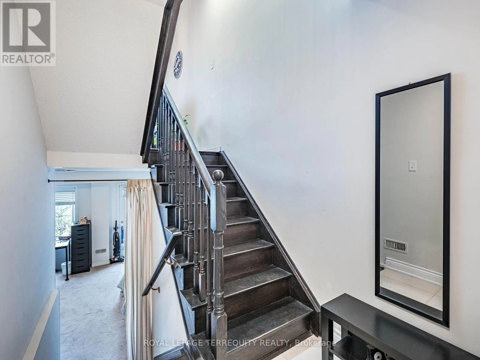 Cross Streets: Dundas st W. and Postmaster Dr. ** Directions: South on Paostmaster Dr off Dundas St. Follow your dream home to this beautifully upgraded three-storey townhome, perfectly tucked away in Oakville's sought-after Westmount community. Backing onto peaceful green space, this residence combines modern comfort with a serene natural backdrop - a wonderful place to come home to. Nestled in a welcoming, family-oriented neighbourhood, this home offers easy walkability to top-rated schools, shops, parks, and the Oakville Hospital - everything you need just steps from your door. Inside, you'll discover 3 spacious bedrooms and 2.5 bathrooms within a thoughtfully designed living space. From the rich hardwood floors to the large windows that bring warmth and elegance throughout. The heart of the home is the eat in kitchen full of natural light- featuring a centre island, glass tile backsplash, and stainless steel appliances. Downstairs, the lower-level family room opens directly to a private deck and backyard, making it the ultimate space for entertaining or relaxing. Enjoy evenings outdoors, simply unwind with the peaceful green view behind you. If you're ready for a lifestyle upgrade, this home is a true gem - move-in ready, full of character, and designed for comfortable, connected living. Don't miss your chance to experience this special property. Enjoy your tour! (id:27476)