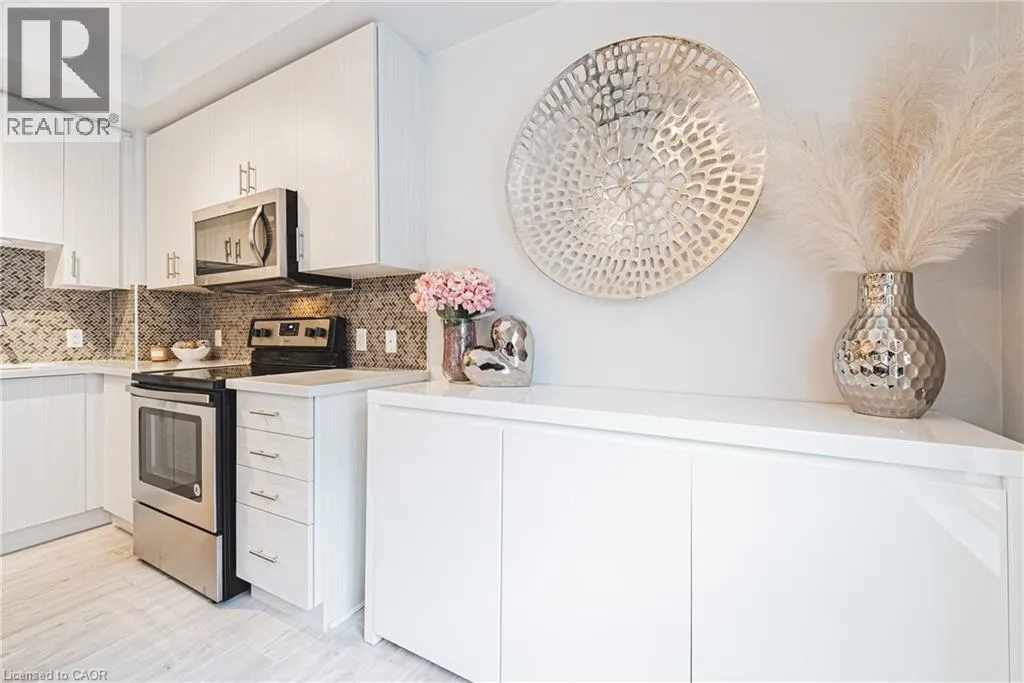 Dundas St W & Old Bronte Rd Welcome to this bright and stylish 1-bedroom condo in Oakvilleâs desirable Bronte Creek community. Offering 799 sq ft of well-designed living space, this suite has been thoughtfully updated throughout. The modern kitchen features stainless steel appliances, and opens to a spacious living area with access to a private enclosed balcony. The bedroom is enhanced with a custom closet storage system, while the unit also includes updated light fixtures, fresh paint, and zebra blinds for a polished, contemporary feel. A built-in hallway closet adds valuable extra storage. Enjoy in-suite laundry, geothermal heating/cooling, two owned parking spots, and a convenient locker. The building offers great amenities, including a party room and elevator, all set within minutes of parks, trails, shops, transit, and major highways. A beautifully updated, move-in-ready condo in a fantastic Oakville locationâideal for first-time buyers, downsizers, or investors. (id:27476)