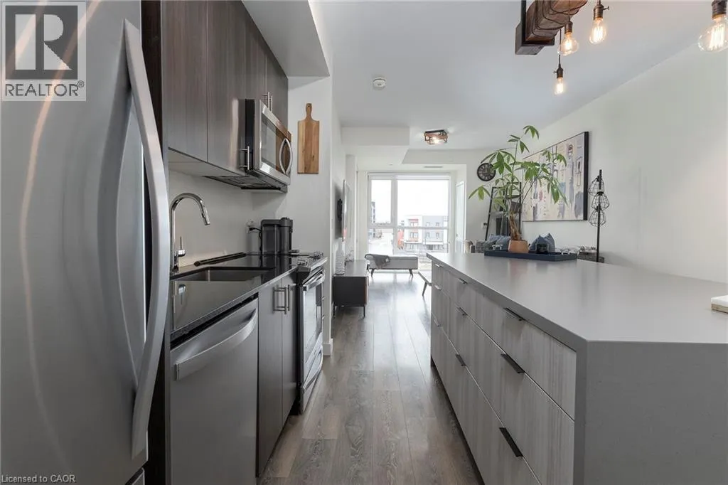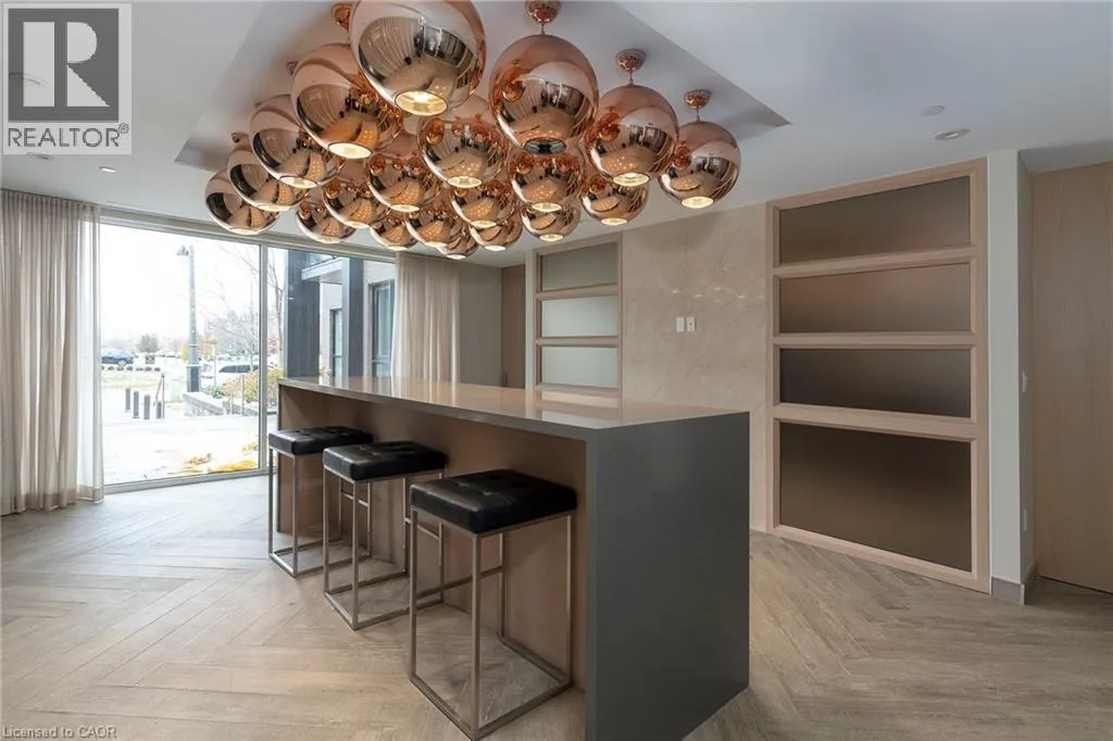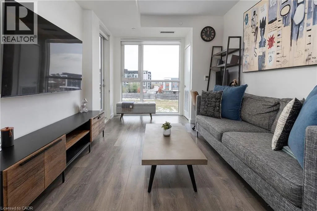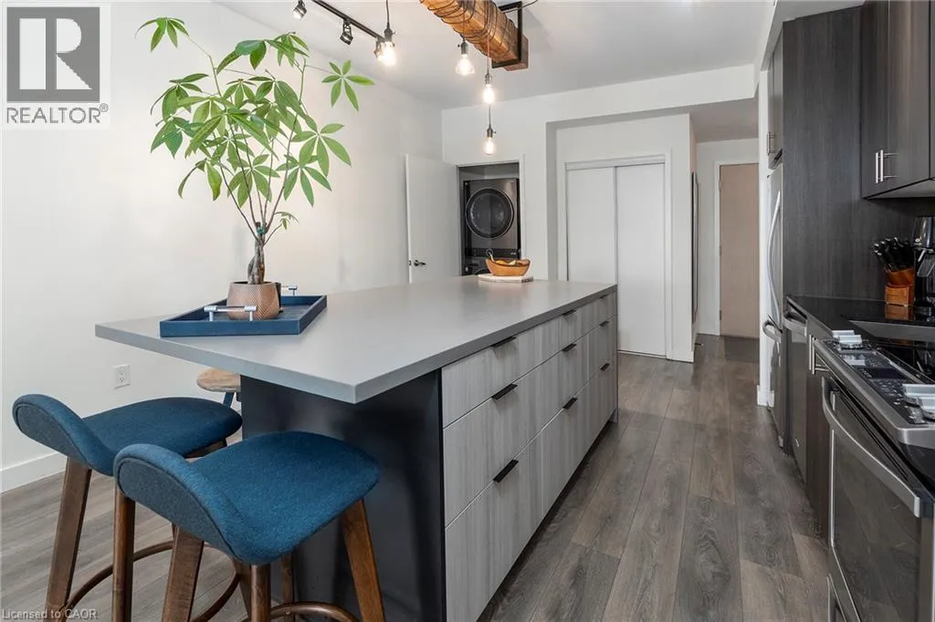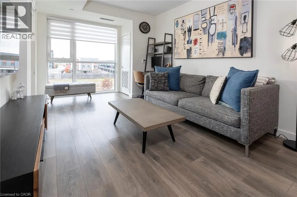 DUNDAS ST TO POSTVILLE TO SABINA DR Looking for HIGH END/LOW MAINTENANCE LIVING close to ALL CONVENIENCES this is the one for you!!! This beautifully designed home offers a great layout and plenty of space and exudes natural light with the west facing location. The open concept living is ideal for entertaining family & friends. The Kitchen is the ultimate WOW factor offering S/S appliances, modern cabinets and an amazing large custom island offering plenty of seating and storage & art piece style light fixture above island. The spacious bedroom offers black out blinds offering you a great nights sleep. This unit also offers a bonus den, the convenience of in-suite laundry w/new front loading washer/dryer combo and a modern 4 pce bath. This great unit also offers a covered balcony to enjoy your morning coffee or evening wine. Added features to make this an even more comfortable and convenient living space are the blinds on all windows and doors, upgraded dimmers on the light switches that can be controlled through Alexa & Google & updated closets. You can save on a gym membership with the nicely equipped in-house gym, locker for all your storage needs, not all units offer this great feature, bike parking, underground parking, party room & media room. Need another reason to call this one HOME it is the Uptown Oakville location close to all highways, public transit including the Go and ALL other amenities!!! (id:27476)