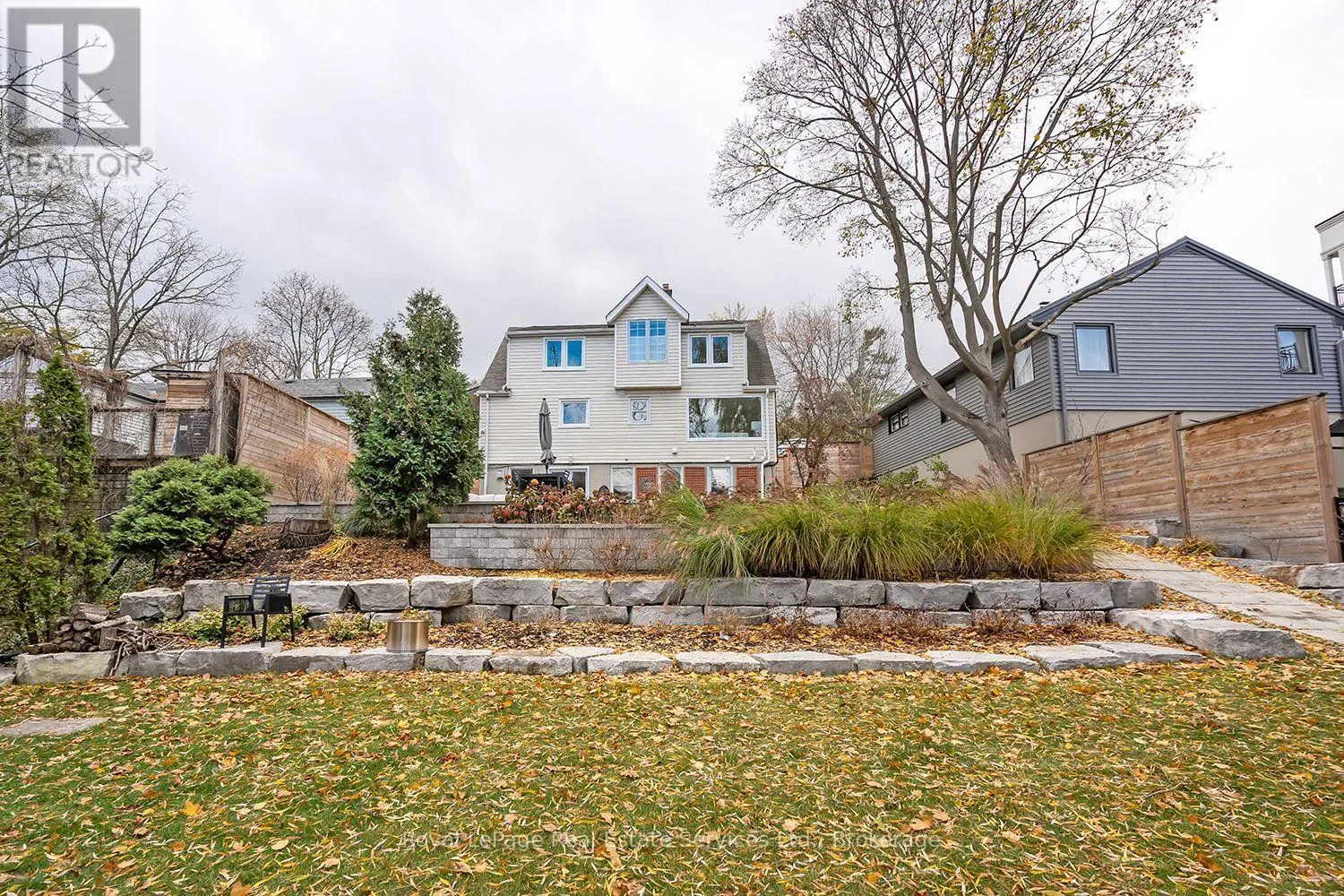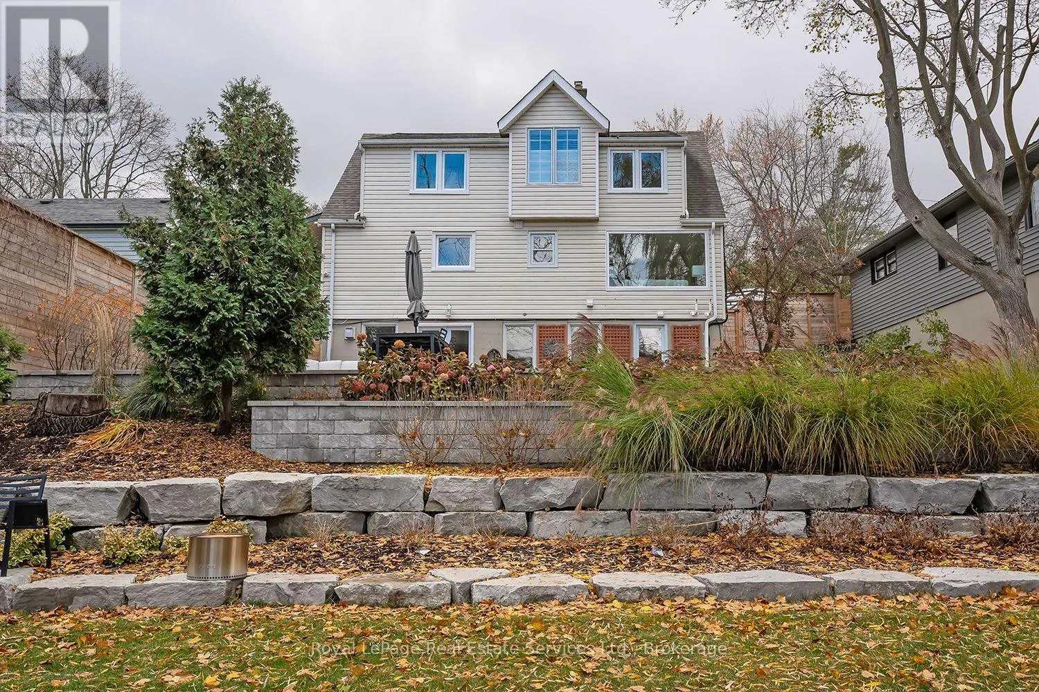 Cross Streets: Dorval Drive + Lakeshore Road W. ** Directions: Lakeshore Rd W to Brookfield Drive. Beautiful Renovated Home Located in the Highly Coveted 'West Harbour' Neighbourhood just steps to Downtown Oakville, Tannery Park, the Lake & Kerr Village. This Charming 1 1/2 Storey Home has been Extensively Renovated w over $400K spent in the last 5yrs & Boast over 2500 sq. ft. of Luxury Living. Featuring 3 Bed, 3 Bath & Fully Finished Lower Level w Walk-Out to Newly Landscaped Mature Backyard ('22). The main floor interior offers Hardwood T/O (Refinished '21), Oversized Windows in the combined formal Living/Dining Rms. offering a stunning view of the Mature Trees; Open Concept Family Rm. w Gas F/P to the Renovated White Kitchen ('21), w B/I stainless Appliances, Quartz Counters, Breakfast Bar & Side Entry. The main floor also offers a Beautifully Reno'd ('21)Main Flr. Bath w Custom Glass Shower & Features. The Hardwood stairs lead to the 2nd floor w 3 Bed all HWD Flrs., charming Sloped ceilings in all the bedrms., Reno'd main bath ('21) w soaker tub, in floor heating & free floating double vanity. Fantastic Bright Lower Level w Spacious Rec. Rm w Stone Feature Wall, Newer Broadloom T/O, 3 Pc. Bath, Laundry Rm w Newer Washer/Dryer, Double, Storage, Over Sized Windows & Double Door Exit to the Backyard Oasis. Renovated Landscaping both front & back ('22) w Spacious Stone patio w B/I Firepit, Multi-Levelled w Armour Stone retaining Walls, Astroturf area, Exterior Storage, Fence Gates, Circular Driveway & Surrounded by Beautiful Mature Trees; the Perfect place to Entertain or Enjoy a Peaceful Cup of Coffee. Some of the other features this home offers are some Newer Windows on 2nd flr. ('21), A/C ('21), plus 1 split unit on 2nd floor for energy saving, pot lights, Newer Trim, doors, baseboards & hardware ('21). Don't miss this Amazing Opportunity to live in the Heart of Oakville. (id:27476)