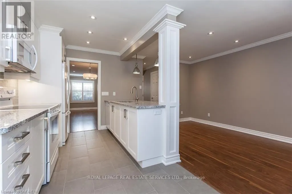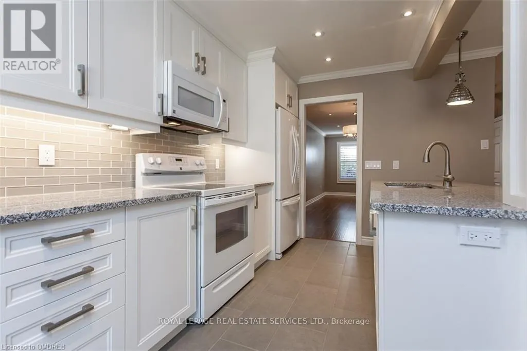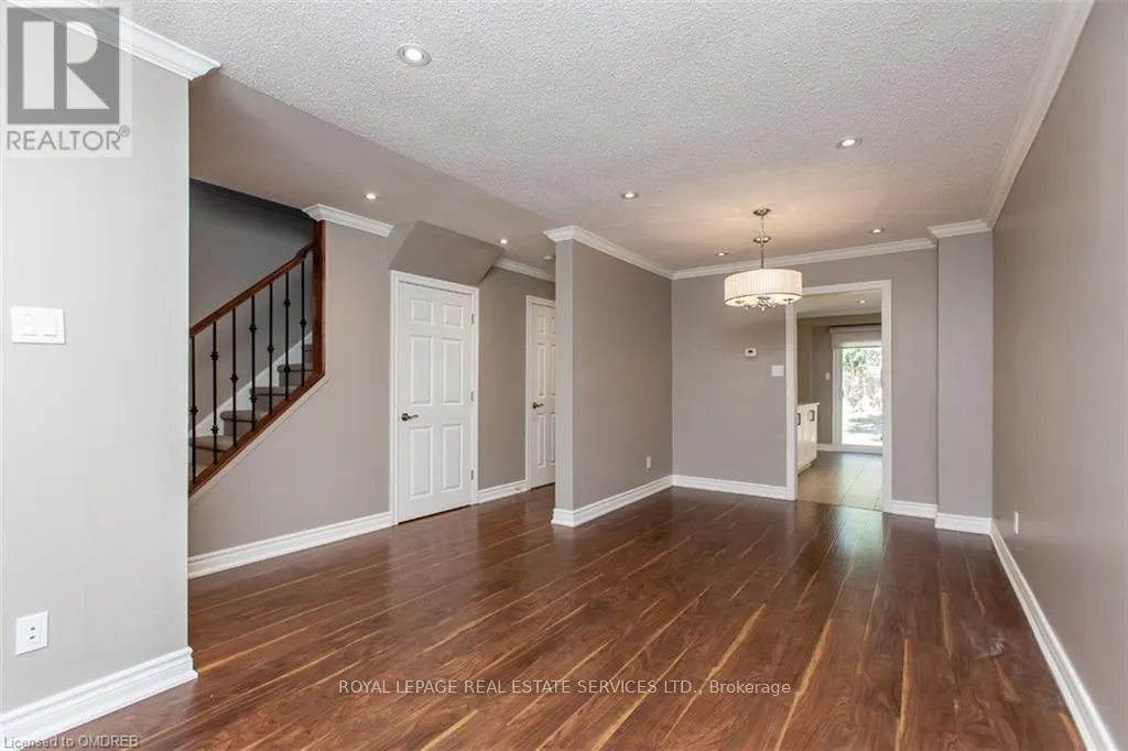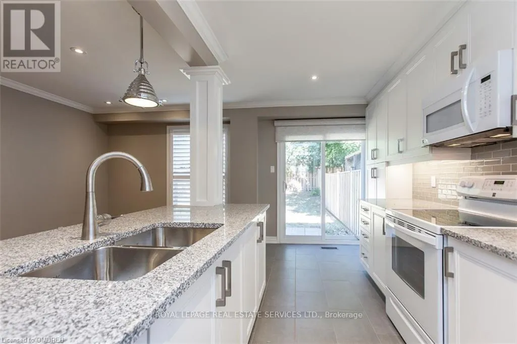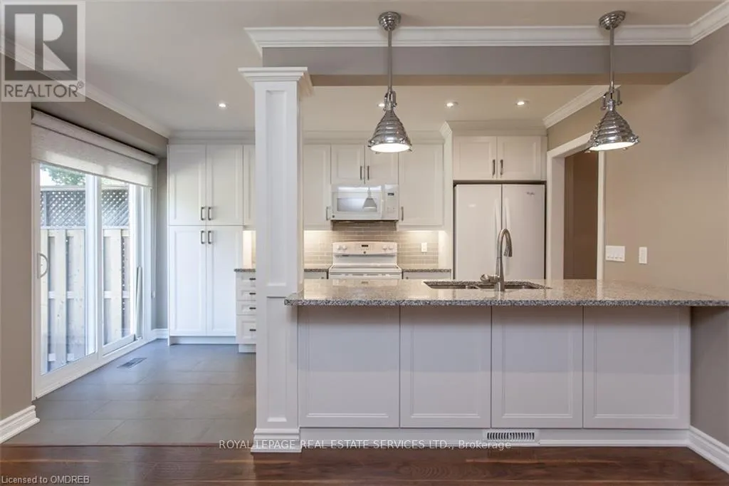 Neyagawa Blvd & River Oaks Blvd W Experience modern comfort and style in this stunning 3+1 bedrooms and 4 bathrooms semi-detached home in River Oaks. Upon entry, you are greeted by scraped engineered hardwood flooring that flows seamlessly throughout the main level, which is enhanced by pot lighting, California shutters, and designer hardware. The gourmet kitchen is a true centerpiece, featuring pristine white cabinetry, granite counters, a sleek glass backsplash, and a large island with seating for four. The adjacent dining area opens directly onto a deck within the fully fenced backyard, perfect for outdoor gatherings. Ascend the staircase with its stylish wrought iron pickets to find spacious bedrooms, including a master suite that boasts an oversized glass shower. The fully finished lower level offers significant additional living space with plush Berber carpeting, a versatile fourth bedroom or office, a 4pc bath, ample storage and a dedicated laundry room complete with built-in cabinetry and a sink. This home is also wired for CAT 5 and includes a single-car garage plus driveway parking for two vehicles. (id:27476)