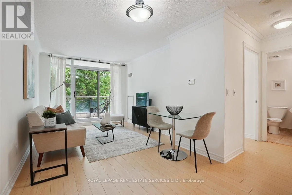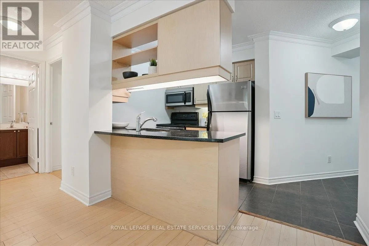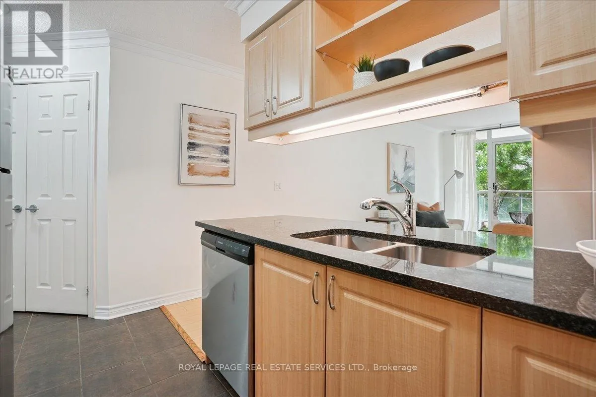 Dundas St E and Trafalgar Road Experience elegant, low-maintenance living in this beautifully maintained 2-bedroom, 2-bathroom condo, located in Oakville's sought-after River Oaks community. This carpet-free, 850 sq ft southwest corner unit offers a bright and airy open-concept layout that seamlessly connects the living, dining, and kitchen areas, perfect for today's lifestyle. The unit boasts several tasteful upgrades, including crown molding, hardwood floors throughout, undermount sinks and lighting, and galley cupboards, enhancing its stylish and comfortable feel. The Courtyard Residences provides an exceptional lifestyle with extensive amenities, including an outdoor pool, spa, sauna, gym, party room, and a BBQ patio area. Your daily life is made easy with in-suite laundry, an underground parking spot, and a storage locker. Situated in the vibrant uptown core, you are just steps away from a variety of shops and restaurants, including Walmart, LCBO, The Keg, and Spoon & Fork. Commuting is a breeze with close proximity to Highways 407 and 403, as well as transit options to the Oakville GO station. This condo is an ideal choice for those seeking a blend of comfort, style, and unparalleled convenience. (id:27476)
