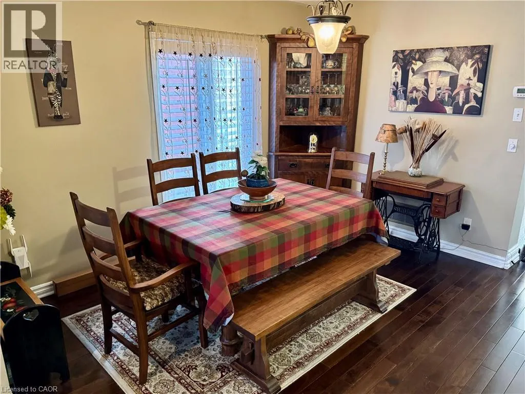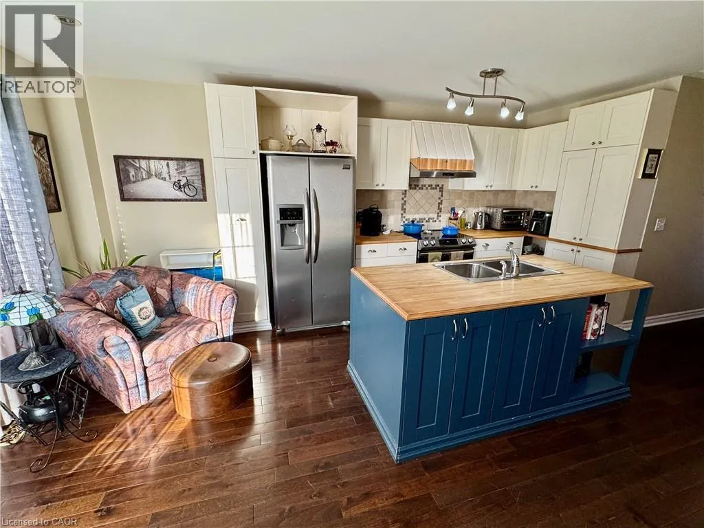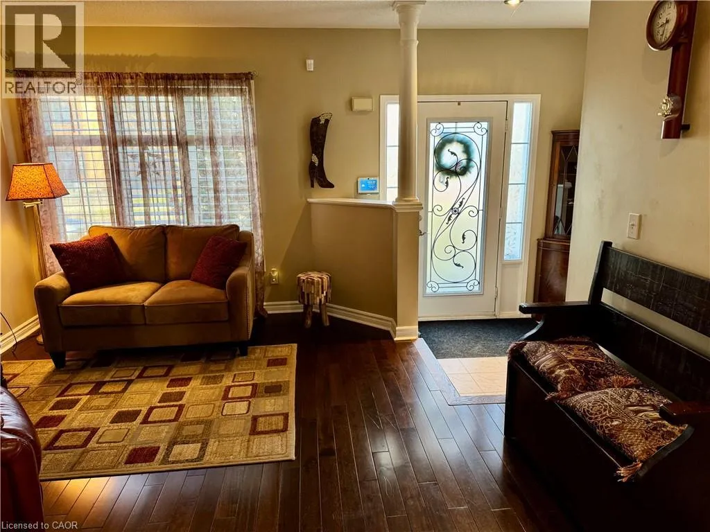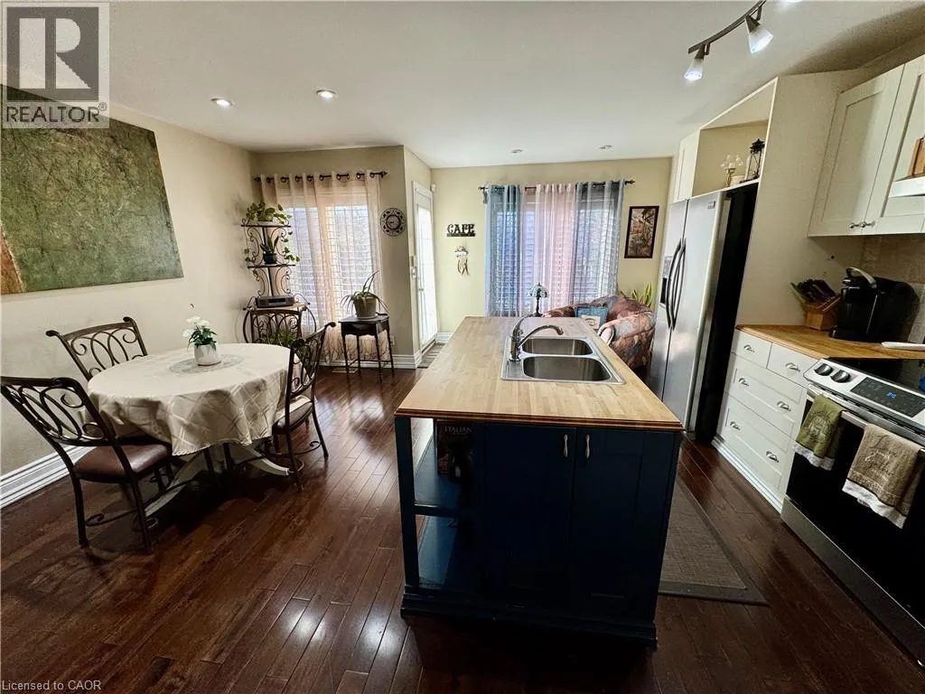 Dundas - Towne - Capilano Beautiful Carriage-Style Home on a Quiet Crescent in Sought-After River Oaks. Welcome to this charming carriage-style home offering approximately 1,768 sq. ft. of beautifully finished living space, including a professionally completed basement with additional bedroom, plus 3 pc bathroom. The main level features rich dark hardwood flooring, powder room, convenient main-floor laundry, and a modern kitchen equipped with stainless steel appliances. The second floor features 3 bedrooms and 2 full bathrooms. The spacious primary bedroom includes its own ensuite with a relaxing Jacuzzi tub. Additional living areas provide comfort, functionality, and plenty of natural light throughout. Extra long driveway leads to a detached garage. Rear fenced yard is great for entertaining. Located in the heart of popular River Oaks, this home provides easy access to the 407, 403, and QEW, and is just minutes from shopping, top-rated schools, and recreation centres. (id:27476)