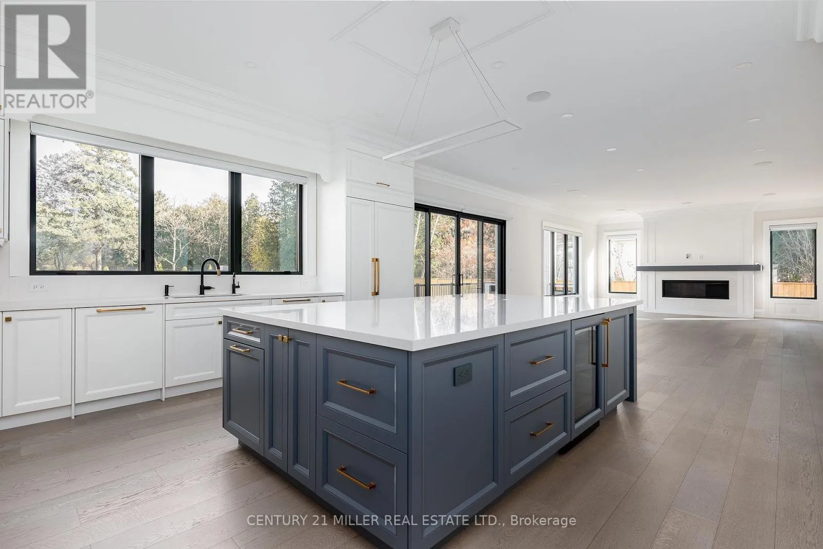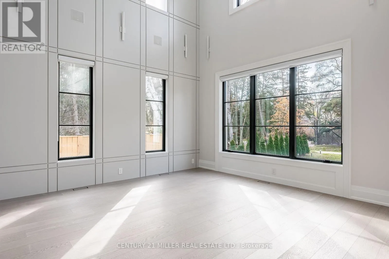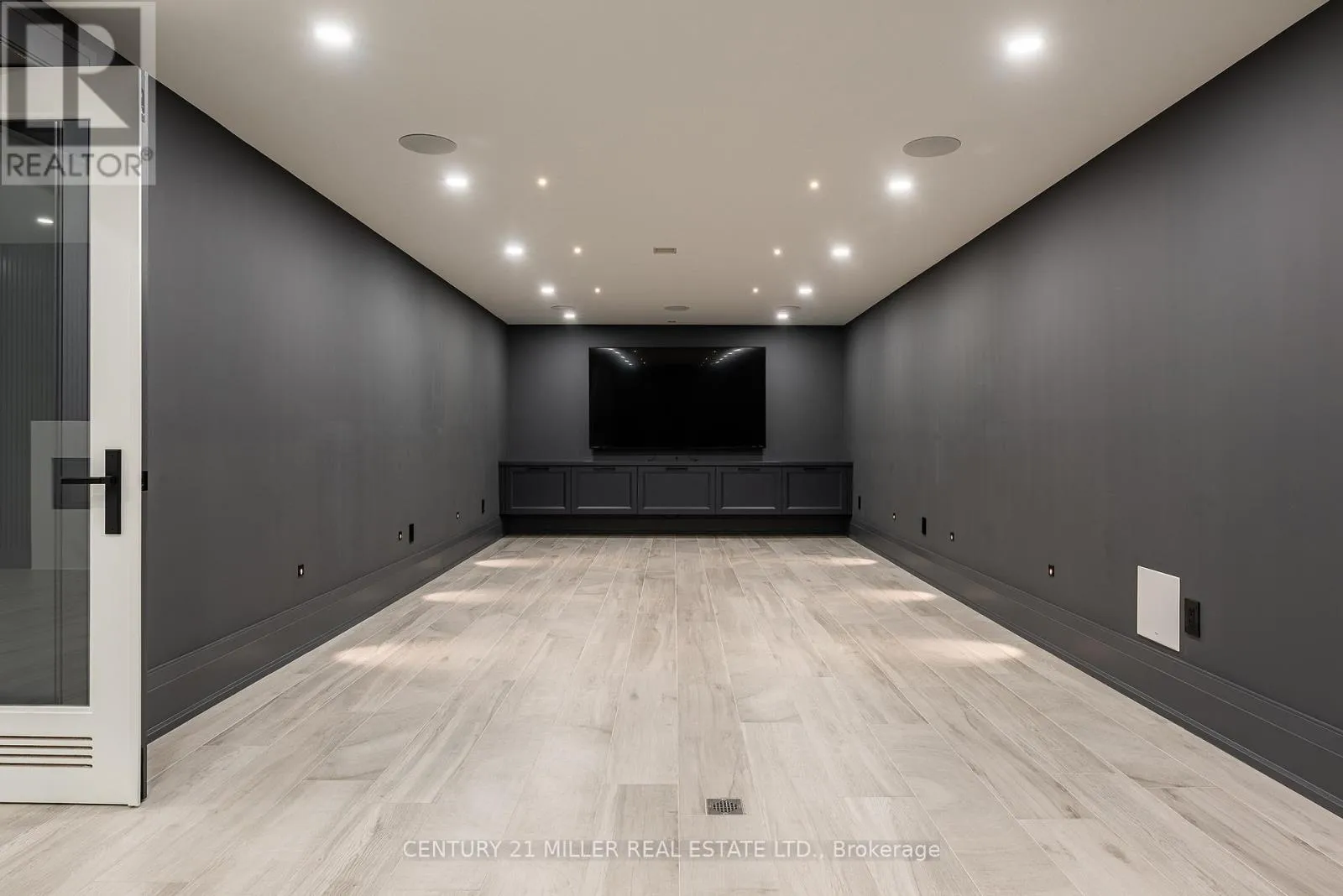 Cornwall Road / Chartwell Road Beautifully built and impeccably finished, this custom residence offers more than 6,700 square feet of living space in one of Oakville's most sought-after neighbourhoods. Stone construction, a solid wood entry door, heated garage floors, and timeless architectural detailing set the tone for the quality found throughout the home. Inside, the foyer features heated marble tile, plaster crown mouldings, poplar baseboards, and sightlines that lead into bright, open spaces. A dramatic dining room anchors the main level with a soaring skylight, custom wall panelling, integrated speakers, and carefully curated lighting. The chef's kitchen is designed with extensive custom cabinetry, quartz countertops, a large island, and easy flow to the family room. The servery and mudroom connect seamlessly; each finished with thoughtful storage and heated floors. Upstairs, all four bedrooms are generously scaled and feature private ensuite baths. The primary suite includes a fireplace, custom walk-in closet, and a beautifully coordinated ensuite with heated floors, a freestanding tub, glass shower, and frosted-glass water closet. A full-size laundry room with cabinetry and folding space completes this level. The lower level offers exceptional versatility with radiant in-floor heating, two additional bedrooms, a three-piece bath with sauna, a recreation room with fireplace, a wet bar/kitchen setup, and a dedicated theatre room beneath the back porch. Wide walk-up access brings in natural light and creates an ideal in-law or extended-family space. Outdoors, the large stone terrace features a gas fireplace and outdoor kitchen with built-in BBQ, extending the home's entertaining potential. Motorized blinds, CAT-6 wiring, solid core doors, and an oak staircase with glass panels highlight the home's elevated craftsmanship. With top-ranked schools, shopping, GO access, and major highways nearby, this is a quality home in a prime location. (id:27476)