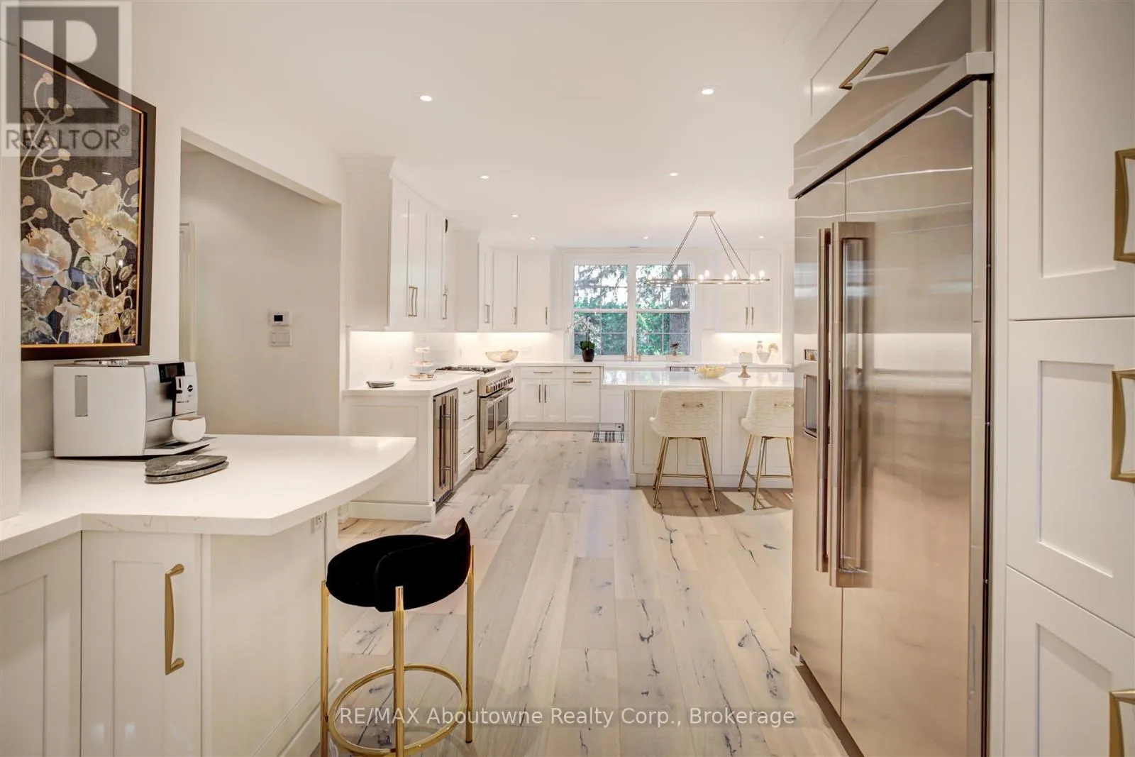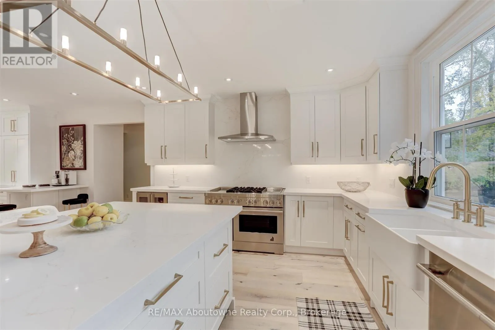 Lakeshore Rd E to Gloucester Transitional Elegance in the Heart of Olde Oakville. A rare property on one of the community's most coveted streets. Experience refined living in this exceptional residence- set on a triple lot over 1/2 acres with an impressive 154.73 ft frontage, curated for those who value privacy, design and indoor-outdoor living at its finest. Beautifully reimagined in 2024, the main level showcases a sophisticated blend of transitional elegance and casual upscale comfort, perfect for both everyday living and effortless entertaining. A Main Floor Redesigned for Modern Luxury. Step inside to wide-plank oak hardwood floors, luxurious finishes, and stunning sightlines to the property's park-like grounds. The brand-new designer kitchen is a true showpiece, featuring: Main kitchen+ second "messy kitchen" for concealed prep, storage, and small appliances. Silk granite farmhouse sink with brushed gold gooseneck faucet and gold hardware accents throughout.- Oversized picture window overlooking the gardens. Square island with integrated fridge/freezer drawers. Quartz countertops & full-height backsplash in both kitchens. Built-in wine/beverage station. Dedicated coffee bar. A walk-out from the dining room and a large picture window open to views of the serene screened-in sun porch, creating a seamless flow for indoor-outdoor enjoyment. The magnificent great room features dramatic cathedral ceilings, a stone wood-burning fireplace (forced-air assist) with aged beam mantel, and wiring/rough-ins for a full theatre- quality sound system. A second walk-out continues to the sun porch- offering year-round enjoyment framed by nature. Flexible living spaces: Third floor loft/suite ideal for guests, teens, studio or office.4+1 bedrooms, 4 bathrooms, and over 5200 sq ft of total finished living space. Finished basement with heated floors in media room (or current gym). Dust-free heat system with individually controlled room zones. **Remarks continued in Attachments (id:27476)