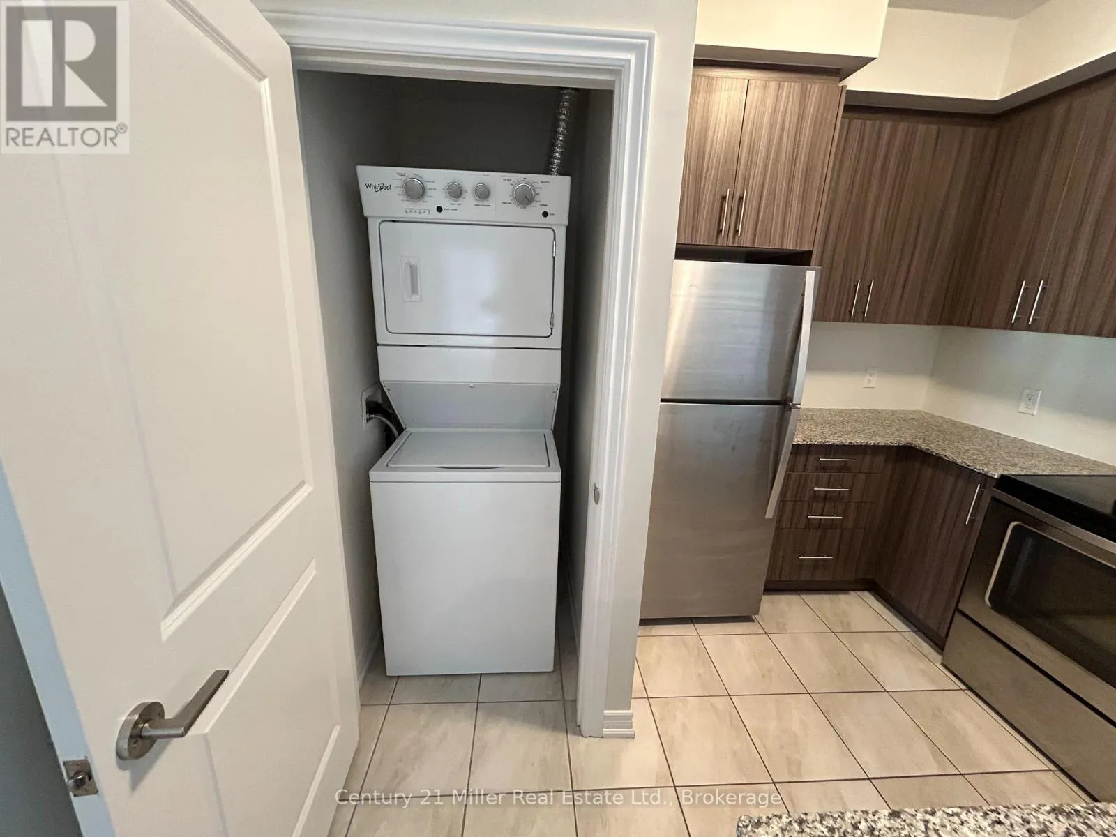 Cross Streets: Bronte Rd / Pine Glen Rd. ** Directions: Dundas St / South on Bronte Rd / Pine Glen / Khalsa Gate. ****** 2 PARKING SPACES/2 FULL BATHS/RARE ADDITIONAL DEN-LIKE SPACE in primary bedroom. ****** This exceptional top floor rental in Westmount is ideally located within walking distance to highly sought-after elementary schools (St. Joan of Arc, Captain R Wilson), Starbucks, medical clinics, places of worship, and a neighbourhood park bustling with summer soccer activities. The unit features high ceilings, an open concept living area, and a private balcony. The modern kitchen is equipped with stainless steel Whirlpool appliances, granite countertops, a double undermount sink, tall cabinets, and a stacked washer and dryer. The family room boasts laminate flooring, a linen closet, and balcony access. The primary bedroom is flooded with natural light from multiple large windows, and boasts a coffered ceiling, walk-in closet, 3-piece ensuite, and a rare den-like space ideal for an office, workout area, or study nook. On the other side of the living area is the second bedroom with a large window, deep closet with sliding doors, and access to the 4-piece main bathroom. This unit comes with two outdoor parking spaces - one private garage space with an electrical outlet, perfect for your electrical car, and one surface level parking space - as well as a large oversized basement locker for storage. Located in an exclusive 3-storey building, this apartment offers privacy and peace without the crowded feel of high-rise living. Just a few minutes' drive to the new hospital and highway access. No pets and no smoking. The tenant is responsible for all utilities plus HWT rental. Don't miss out on this wonderful opportunity! January 1st occupancy. (This building does not have an elevator.) (id:27476)