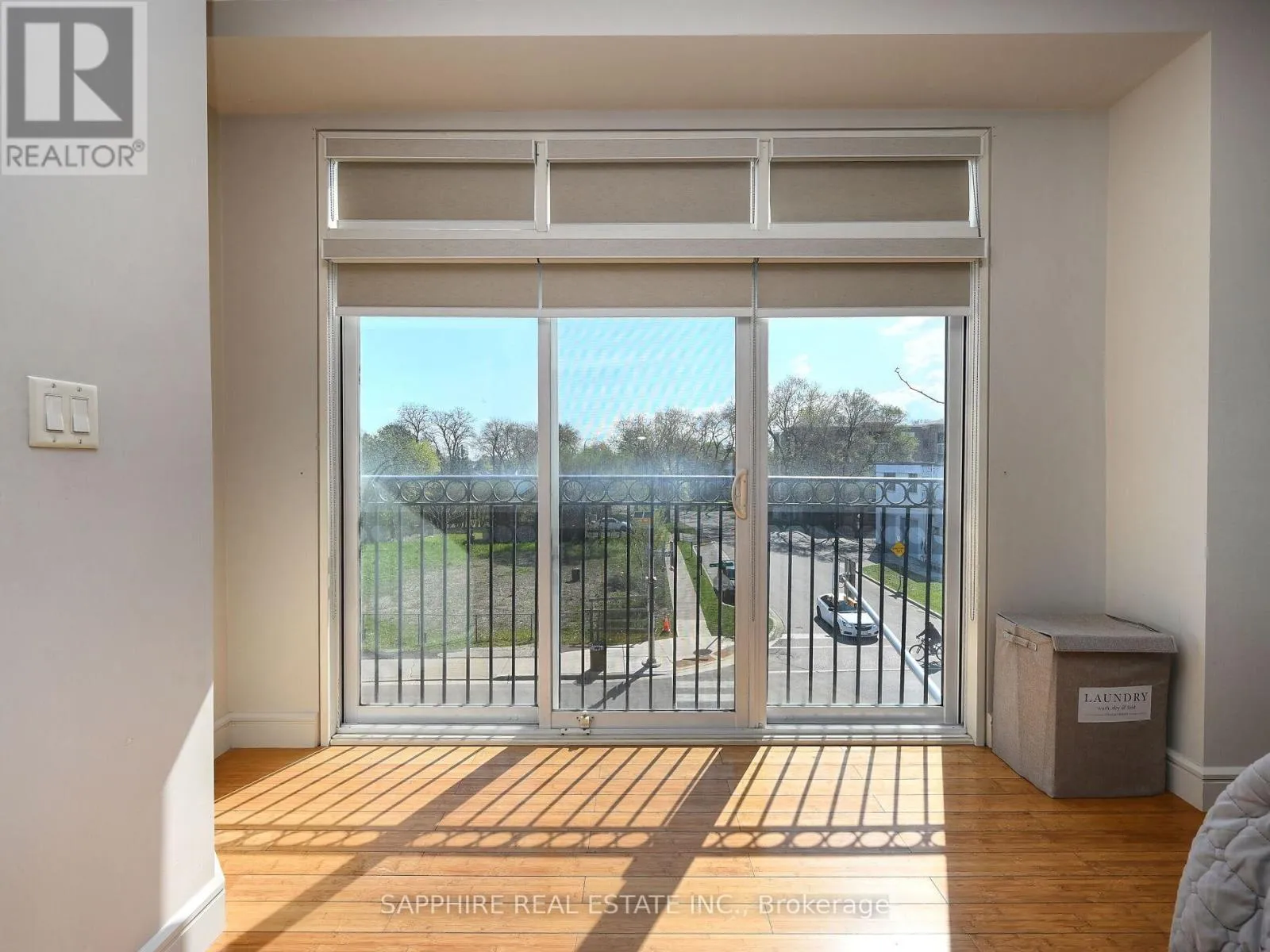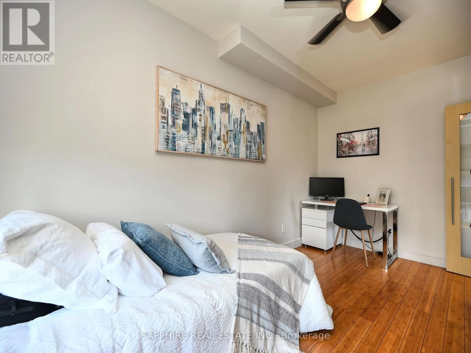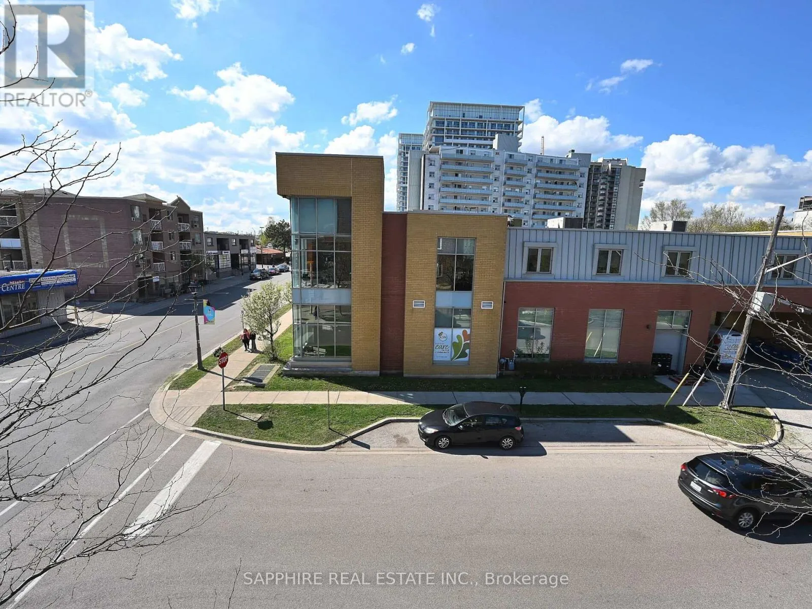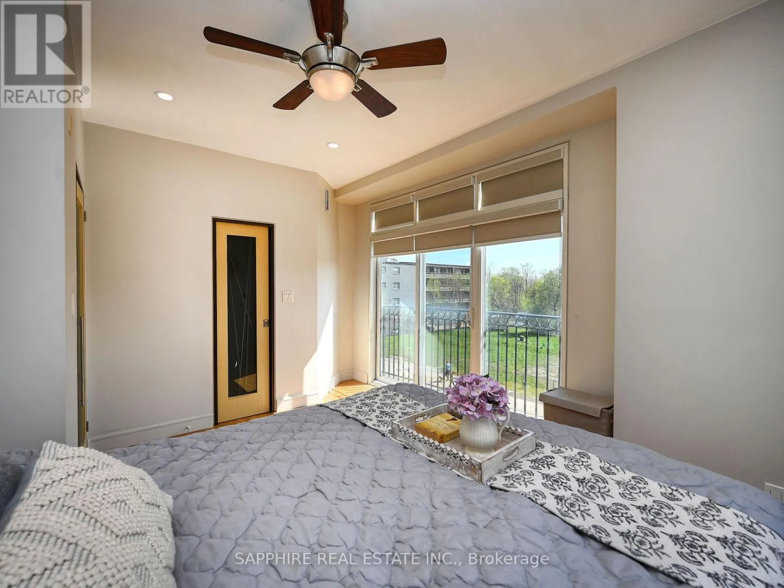 Speers Rd. And Kerr St. Welcome to Kerr Studios, a boutique-style condo community nestled in the heart of vibrant Kerr Village. This meticulously maintained 2-bedroom, 2-bathroom suite offers 900 sq.ft. of bright, open-concept living with ideal bedroom separation each with its own full bathroom perfect for shared living or guests. Overlooking the tranquil, east-facing rear of the building, the unit features high-end bamboo hardwood floors with cork underpadding, granite counters, and a thoughtfully upgraded kitchen boasting 23 drawers, glass cabinetry, a centre island, a European-style brushed steel fridge, built-in cooktop and oven, and a drawer-style dishwasher. The spacious primary bedroom includes an ensuite bath and Juliette balcony. Enjoy smart pot lights, travertine flooring, modern bathrooms with granite walls and glass sinks, custom roller blinds, and large windows throughout. Includes S/S appliances, washer/dryer, window coverings, and one parking spot. Walk to cafes, shops, Oakwood Public School, Tannery Park, Trafalgar Park Community Centre, and the lake. Oakville GO and QEW are minutes away making this a commuters dream. Move-in ready, unpack and enjoy the best of Kerr Village living. (id:27476)