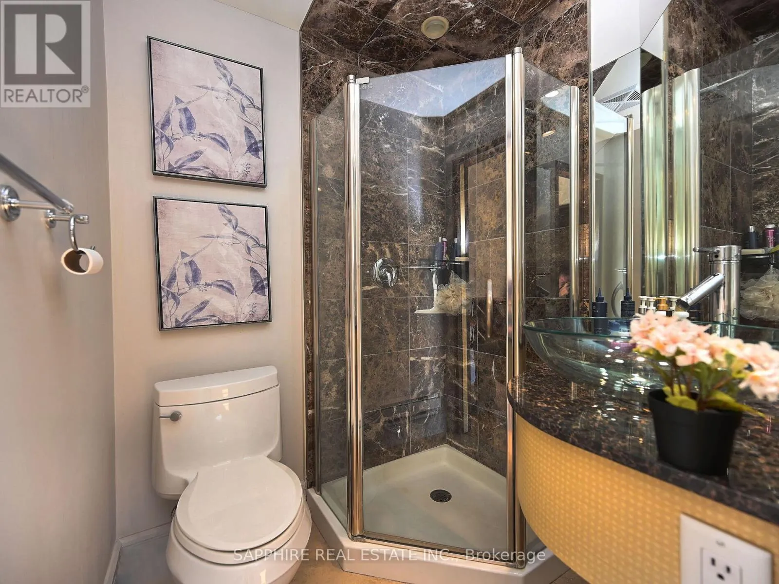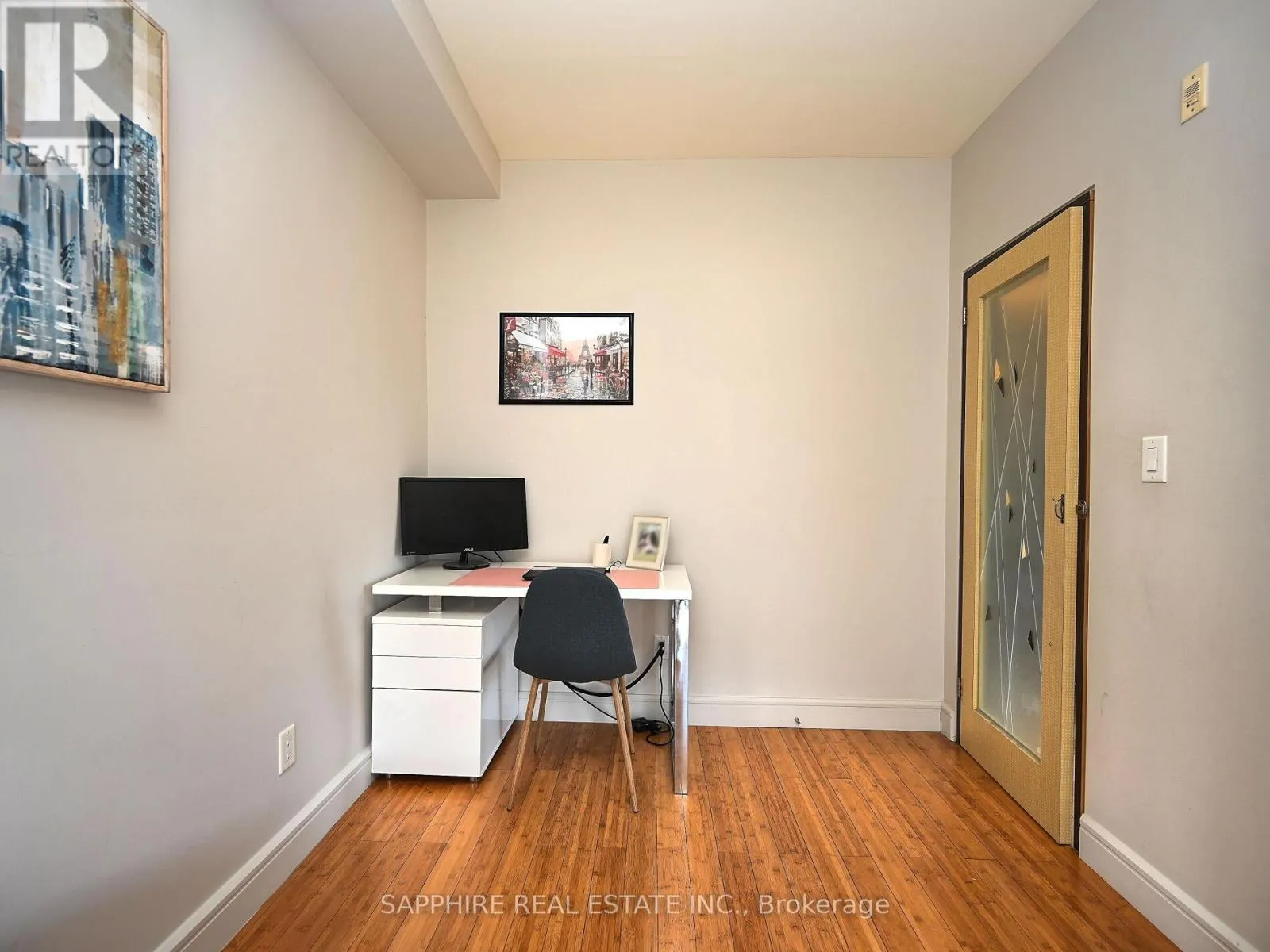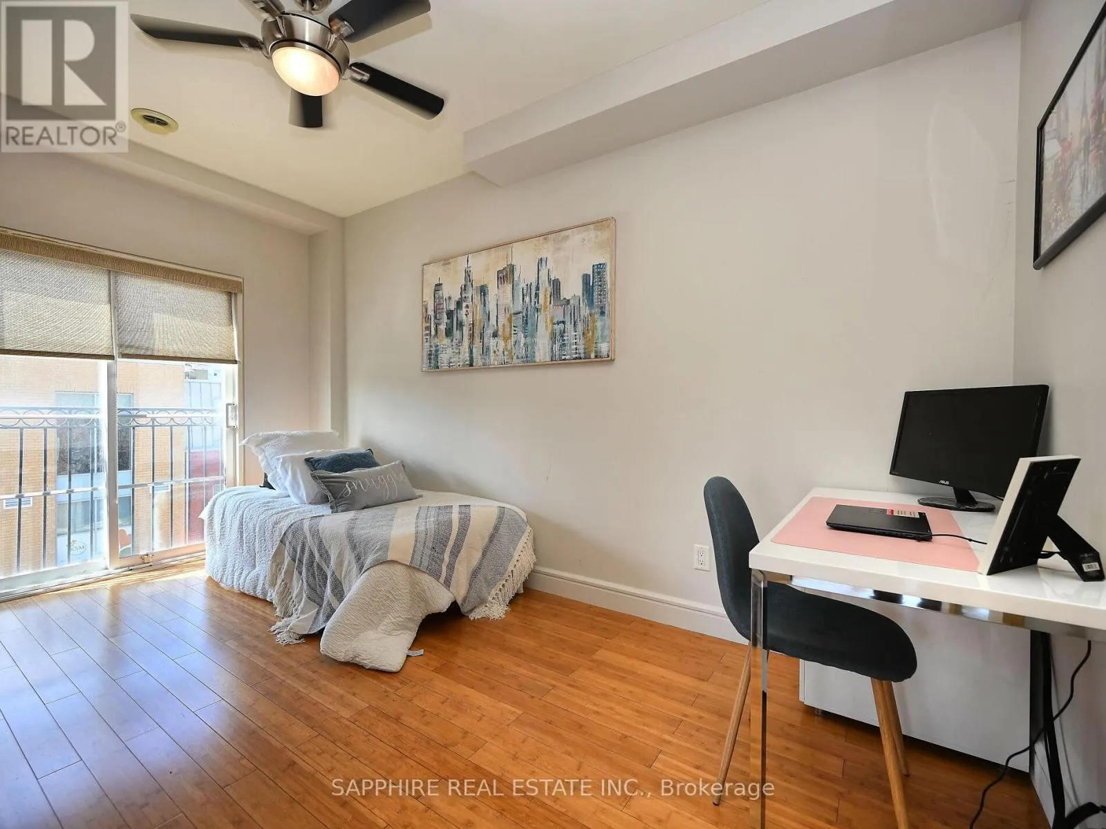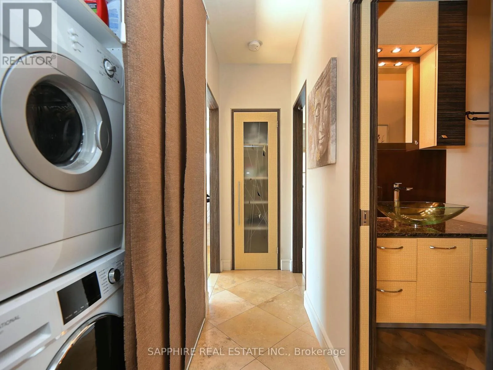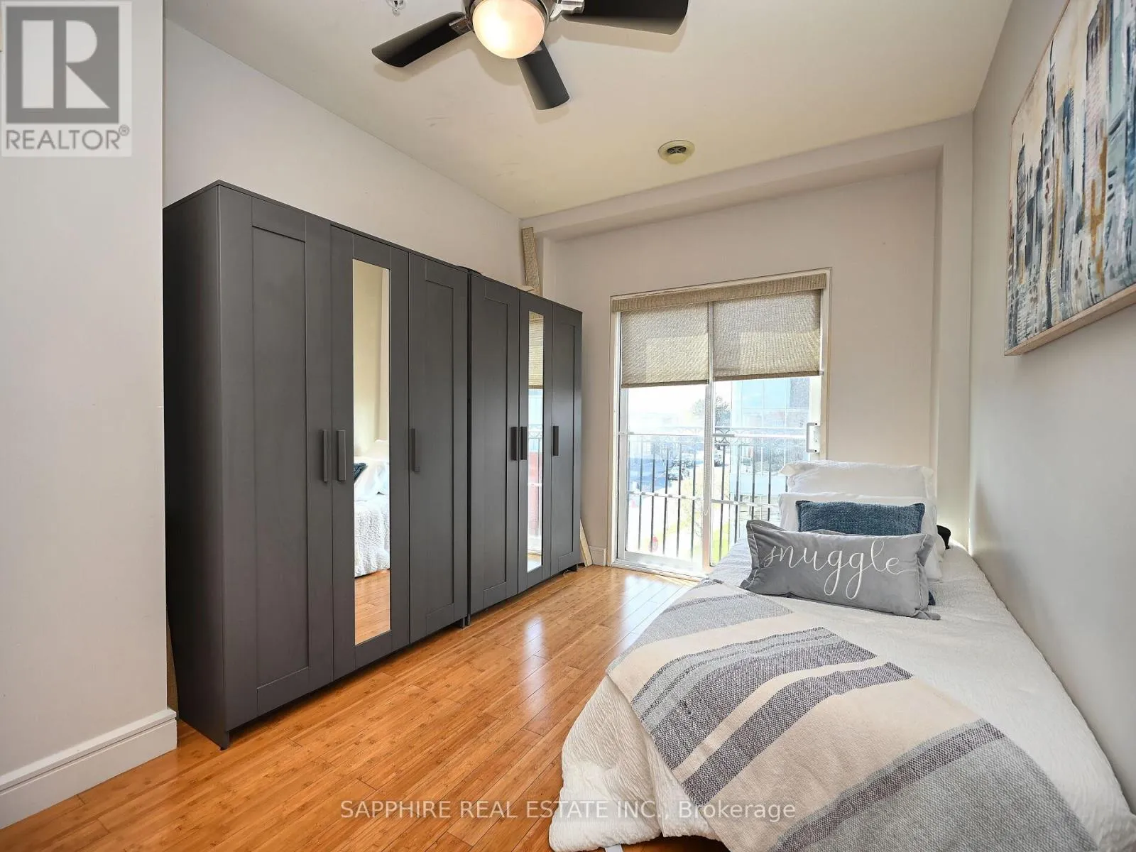 Speers Rd. And Kerr St. Welcome to Kerr Studios, a boutique-style condo community nestled in the heart of vibrant Kerr Village. This meticulously maintained 2-bedroom, 2-bathroom suite offers 900 sq.ft. of bright, open-concept living with ideal bedroom separation each with its own full bathroom perfect for shared living or guests. Overlooking the tranquil, east-facing rear of the building, the unit features high-end bamboo hardwood floors with cork underpadding, granite counters, and a thoughtfully upgraded kitchen boasting 23 drawers, glass cabinetry, a centre island, a European-style brushed steel fridge, built-in cooktop and oven, and a drawer-style dishwasher. The spacious primary bedroom includes an ensuite bath and Juliette balcony. Enjoy smart pot lights, travertine flooring, modern bathrooms with granite walls and glass sinks, custom roller blinds, and large windows throughout. Includes S/S appliances, washer/dryer, window coverings, and one parking spot. Walk to cafes, shops, Oakwood Public School, Tannery Park, Trafalgar Park Community Centre, and the lake. Oakville GO and QEW are minutes away making this a commuters dream. Move-in ready, unpack and enjoy the best of Kerr Village living. (id:27476)