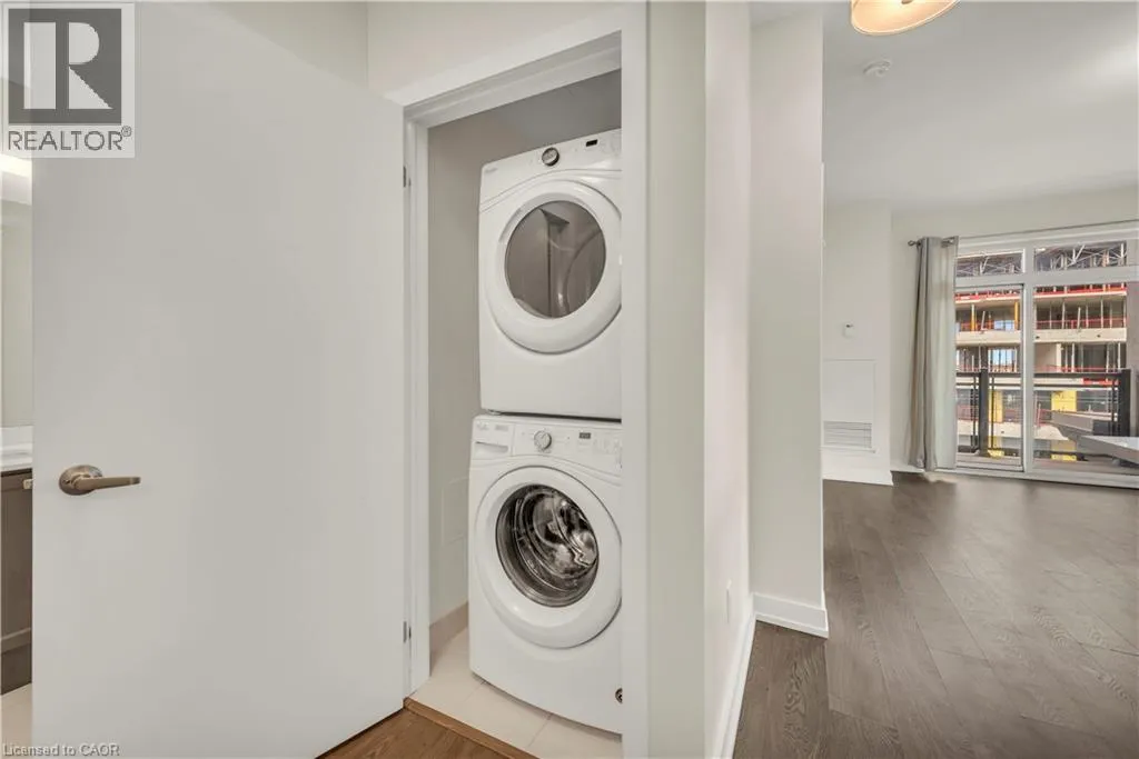Dundas St - Old Bronte Rd CORNER UNIT! Fully upgraded, spacious and sun-filled 1 Bedroom 1 Bathroom condo comes with 1 underground parking spot, 1 storage locker, and a state of the art Geothermal heating and cooling system which keeps the hydro bills LOW!!! Featuring a 53sqft private balcony, an open concept fully upgraded kitchen with Quartz countertops, stainless steel appliances, tiled backsplash, upgraded lighting, vinyl flooring, and a large chefs island with deep storage cabinets. The condo is complete with a spacious & bright bedroom with a walk-in closet, a fully upgraded 4-piece bathroom and in-suite laundry with full sized stackable washer & dryer. Enjoy the fabulous amenities including a modern fitness facility. party room and rooftop patio. Situated in the desirable Westmount community in Oakville, with fabulous dining, shopping, schools and parks. Minutes away from the QEW/407, and a 15 minute commute to Mississauga, you donât want to miss this opportunity, book your showing today! (id:27476)