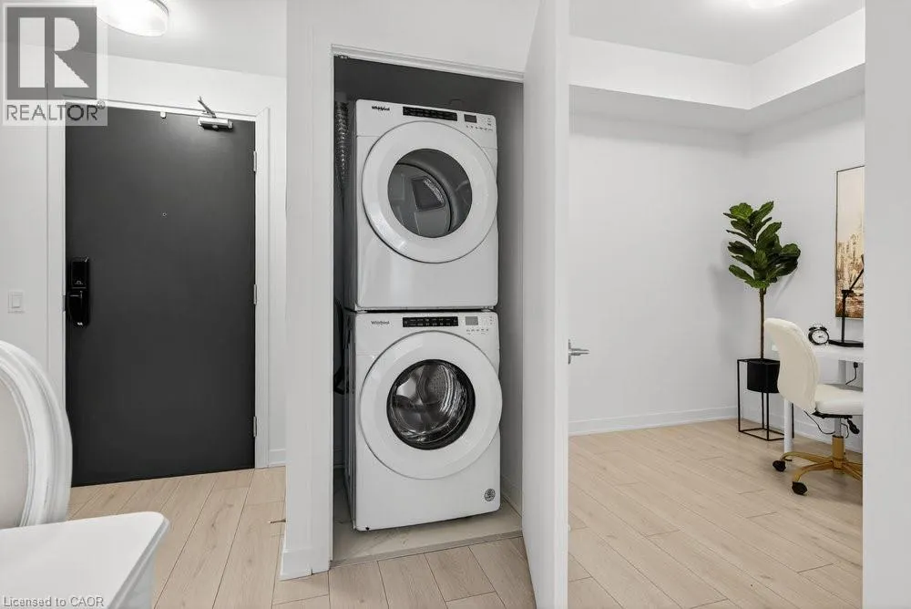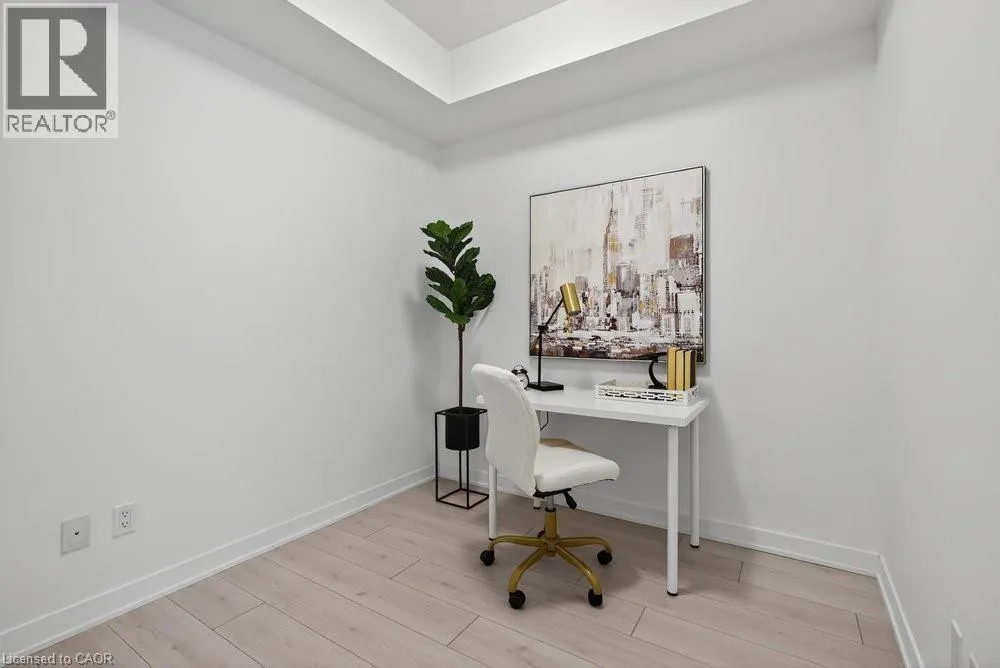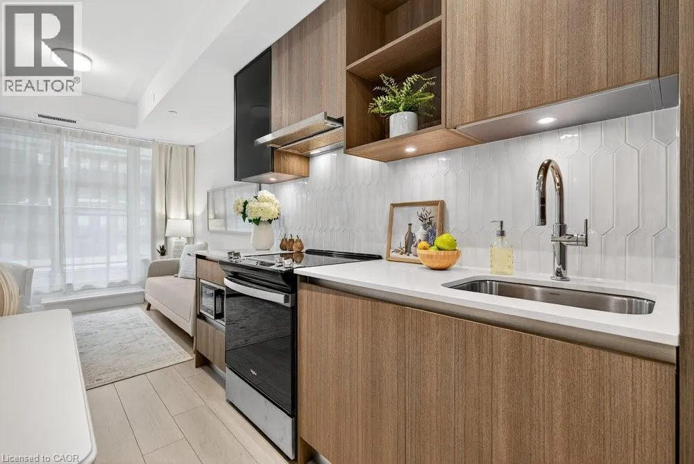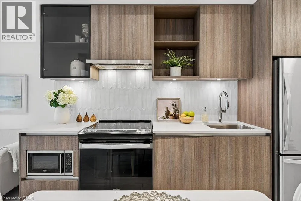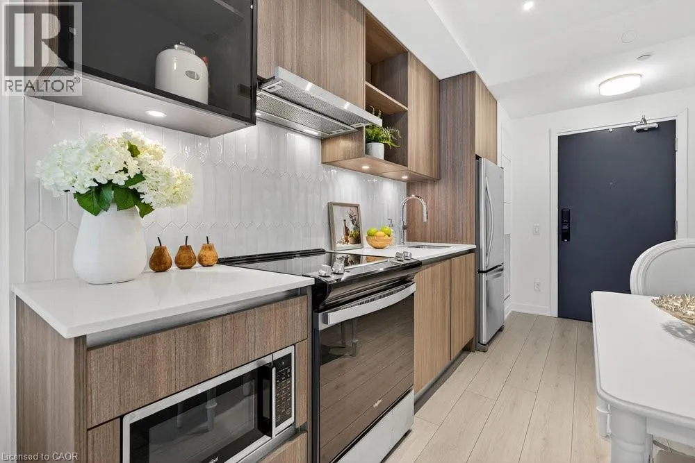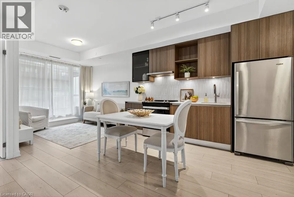Neyagawa Blvd and Dundas Street W Discover upscale living at Distrikt Trailside with this stylish 1+den suite offering 595 sq ft of bright, open-concept space in coveted North Oakville. Designed for modern living featuring vinyl flooring, high-end finishes & a European-inspired kitchen with stainless steel appliances, sleek cabinetry & under-cabinet lighting. The versatile den is ideal for a home office, study or creative space, while the freshly painted interior adds a clean, move-in-ready touch. Enjoy 1 underground parking space plus resort-style amenities including a full-size gym, party & games rooms, rooftop terrace with BBQs, pet wash station & 24-hr concierge. Perfectly located steps to grocery stores, coffee shops, sports facilities, schools & restaurants, with seamless access to Hwy 403/407 & the GO. A rare opportunity for buyers seeking comfort, convenience & a vibrant Oakville lifestyle. (id:27476)