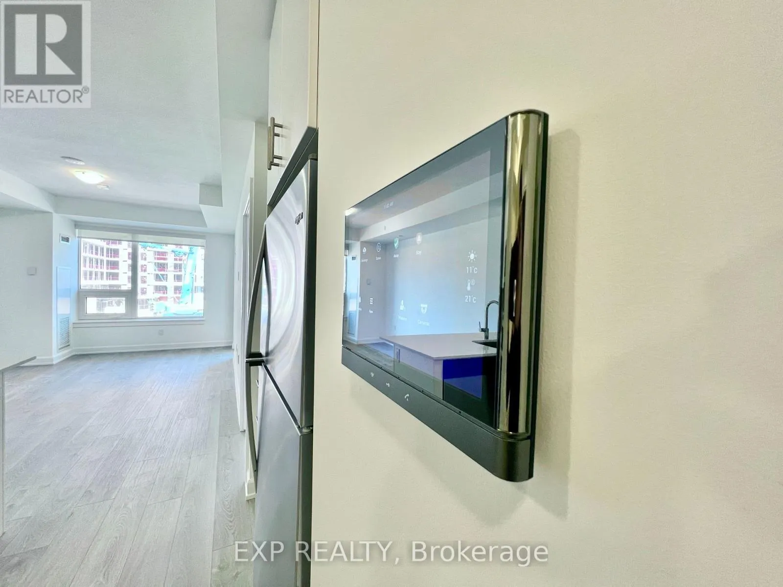Cross Streets: Trafalgar and Dundas. ** Directions: North on Trafalgar Off Dundas. Light-filled Upper West Side condo offering 1 bedroom + den and close to 700 sq ft of thoughtfully upgraded living space, elevated beyond builder standards with a custom appliance station, full pantry, and rare dual bathroom access from both the bedroom and main living area; this truly unique suite showcases crisp, modern finishes throughout, an airy open-concept layout with 9-ft ceilings, and a stylish kitchen featuring quartz countertops, Whirlpool appliances, ample cabinetry, and sleek contemporary details. The generous den provides outstanding flexibility as a second bedroom, home office, or extended living area, while the large balcony terrace is perfect for entertaining or relaxing outdoors. Includes one parking space and one locker, all in a prime Oakville location just steps to groceries, retail, LCBO, restaurants, and everyday conveniences, and minutes to the hospital, Highways 407 & 403, Sheridan College, parks, and green space. (id:27476)