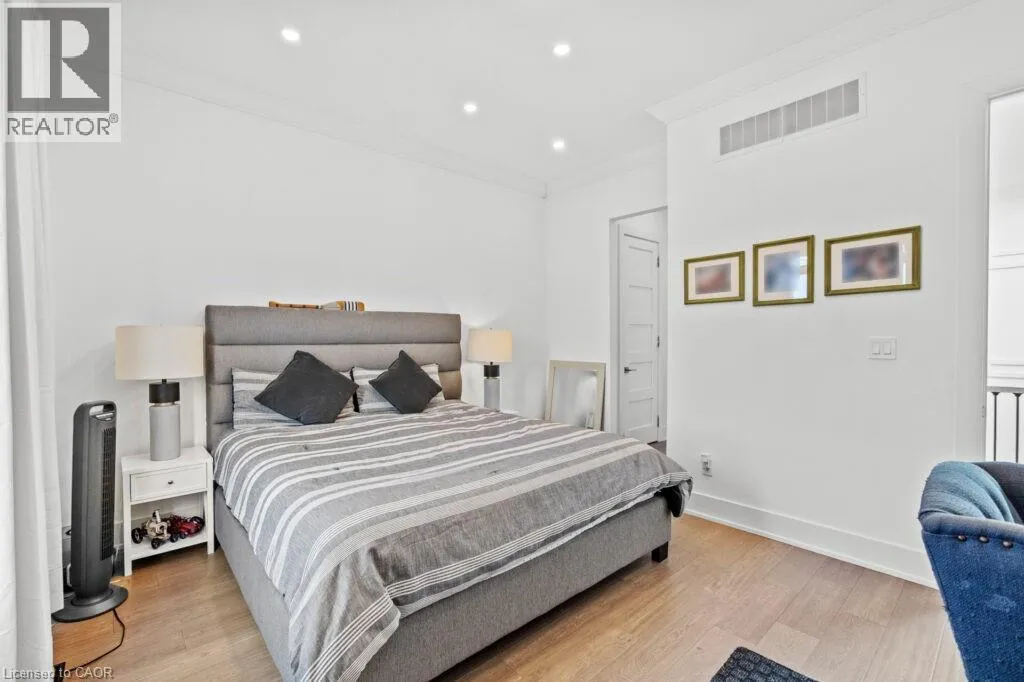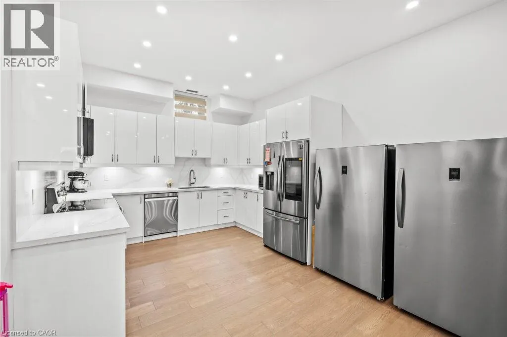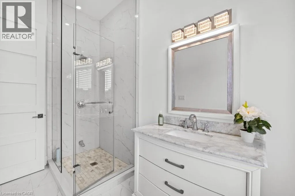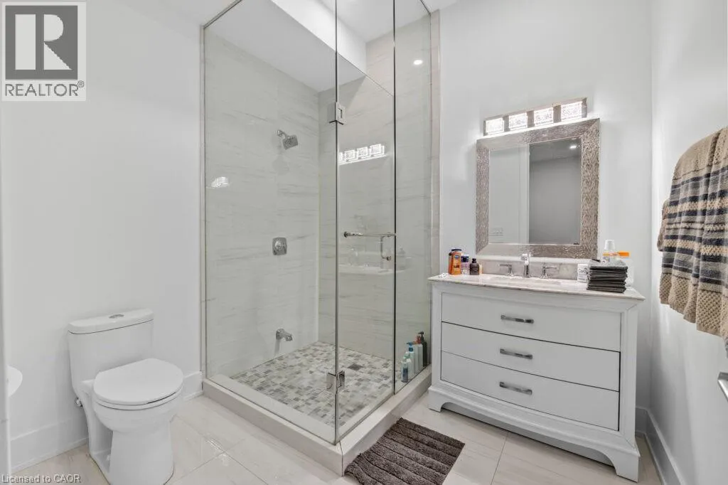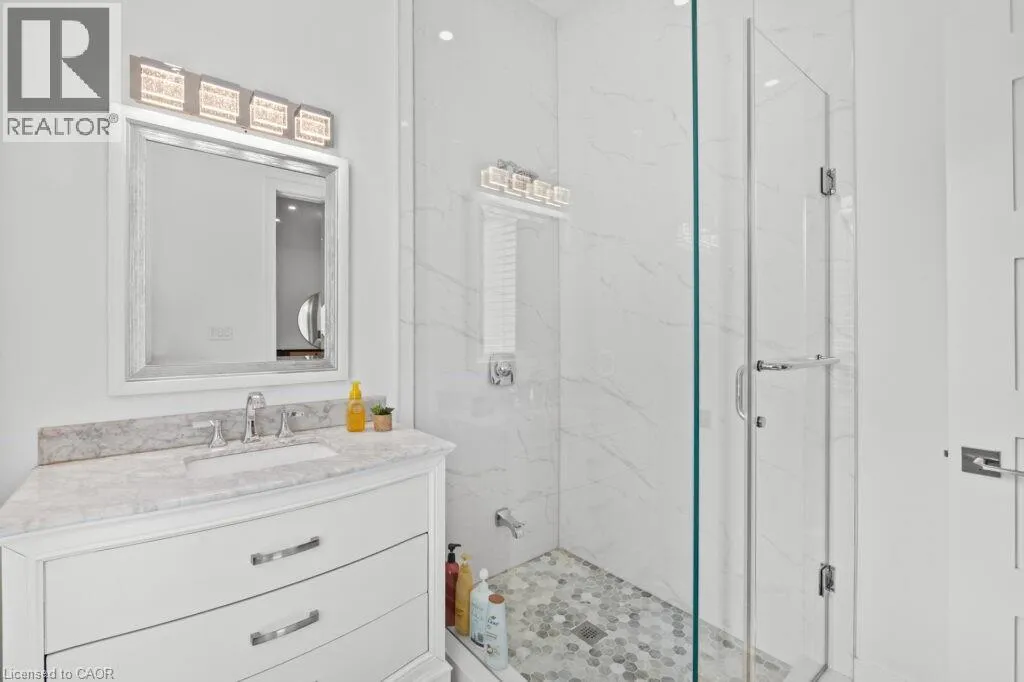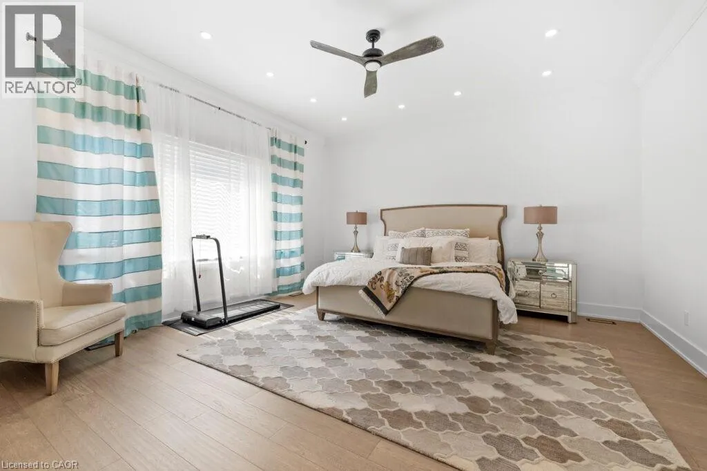 Rebecca and Third Line A showpiece of refined luxury, this home sits on an impressive 77' x 147' lot, where timeless design blends seamlessly with modern sophistication. The grand circular driveway, multiple entry points, and striking stone water feature create an unforgettable arrival experience. Inside, 12-foot ceilings, expansive floor-to-ceiling windows, a custom moss feature wall, and rich hardwood flooring establish a warm yet dramatic atmosphere throughout. At the heart of the home lies a chef-inspired kitchen, thoughtfully designed with sleek quartz countertops, a 10-foot waterfall island, premium built-in stainless steel appliances, central vacuum, kitchen dustpan/sweep inlet and custom full-height cabinetry that elevates both style and function. Upstairs, 10-foot ceilings enhance the sense of space, while the primary suite offers a true private retreat with a custom fireplace, an oversized walk-in closet with tailored organizers, and a spa-like ensuite featuring dual vanities, a deep soaker tub, a glass-enclosed rain shower, and refined finishes. Each additional bedroom includes its own ensuite, ample natural light, and premium details that create individual private sanctuaries. The fully finished lower level provides exceptional versatility, functioning as a self-contained rental suite or a comfortable in-law space with two spacious bedrooms, two full bathrooms, and an open-concept kitchen equipped with upgraded appliances. Outside, the beauty continues with professionally landscaped grounds, fruit trees, a full sprinkler system, a custom deck, and a covered pergolaâperfect for outdoor entertaining and year-round enjoyment. A rare offering that exemplifies superior craftsmanship, thoughtful design, and contemporary luxury living (id:27476)