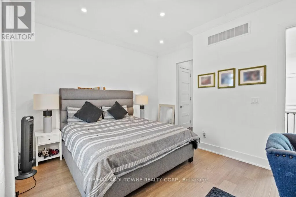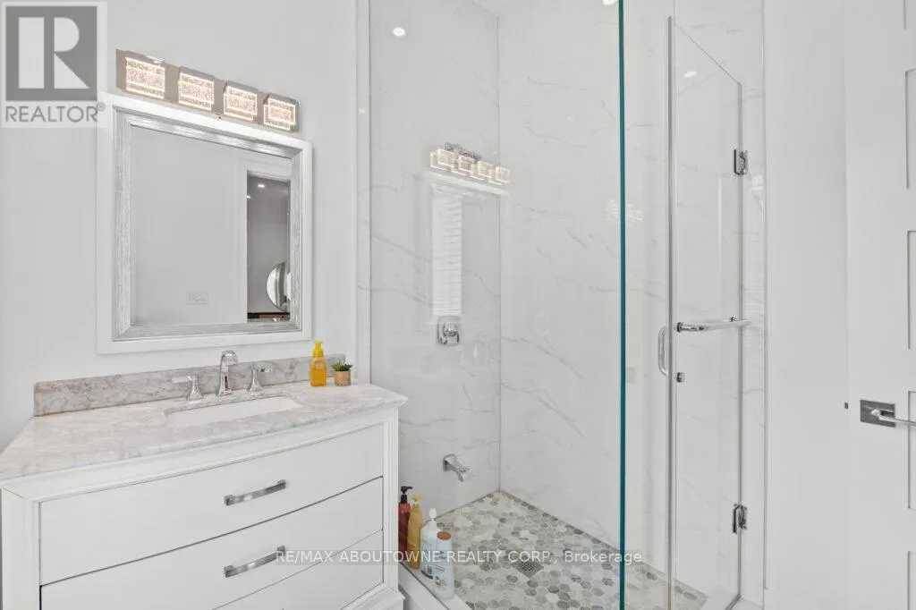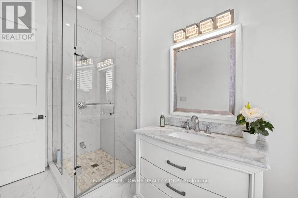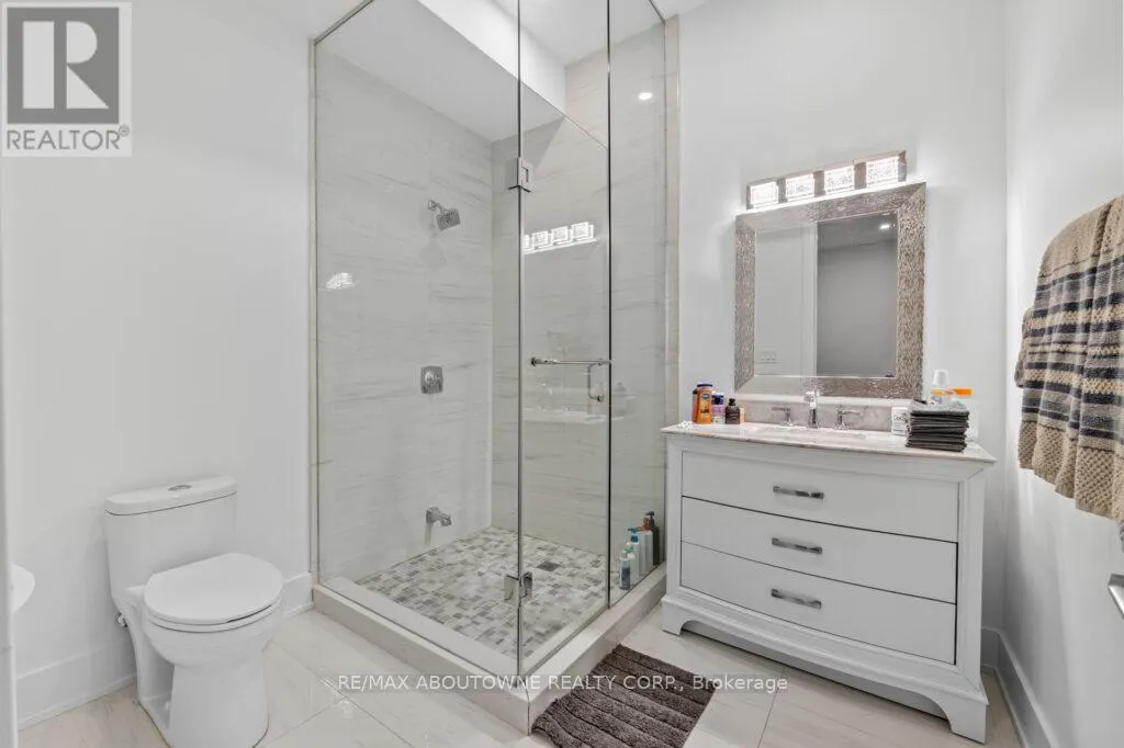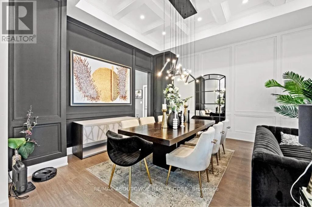 Rebecca and Third Line A showpiece of refined luxury, this home sits on an impressive 77' x 147' lot, where timeless design blends seamlessly with modern sophistication. The grand circular driveway, multiple entry points, and striking stone water feature create an unforgettable arrival experience. Inside, 12-foot ceilings, expansive floor-to-ceiling windows, a custom moss feature wall, and rich hardwood flooring establish a warm yet dramatic atmosphere throughout. At the heart of the home lies a chef-inspired kitchen, thoughtfully designed with sleek quartz countertops, a 10-foot waterfall island, premium built-in stainless steel appliances, central vacuum, kitchen dustpan/sweep inlet and custom full-height cabinetry that elevates both style and function. Upstairs, 10-foot ceilings enhance the sense of space, while the primary suite offers a true private retreat with a custom fireplace, an oversized walk-in closet with tailored organizers, and a spa-like ensuite featuring dual vanities, a deep soaker tub, a glass-enclosed rain shower, and refined finishes. Each additional bedroom includes its own ensuite, ample natural light, and premium details that create individual private sanctuaries. The fully finished lower level provides exceptional versatility, functioning as a self-contained rental suite or a comfortable in-law space with two spacious bedrooms, two full bathrooms, and an open-concept kitchen equipped with upgraded appliances. Outside, the beauty continues with professionally landscaped grounds, fruit trees, a full sprinkler system, a custom deck, and a covered pergola-perfect for outdoor entertaining and year-round enjoyment. A rare offering that exemplifies superior craftsmanship, thoughtful design, and contemporary luxury living. (id:27476)