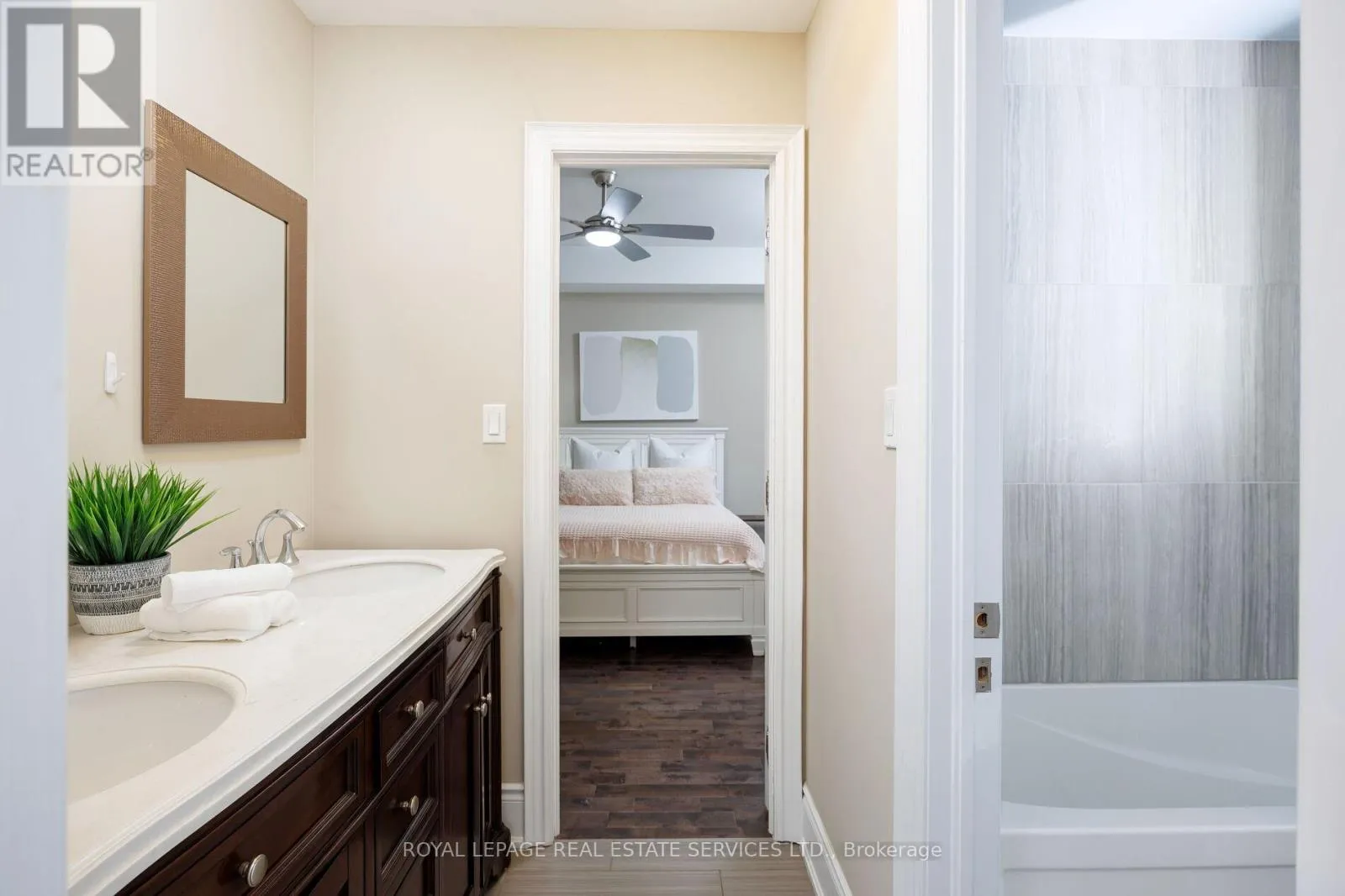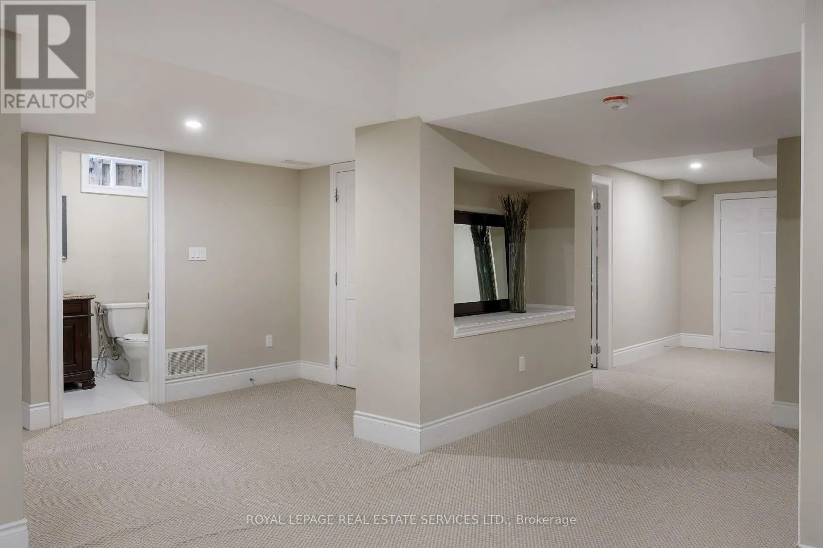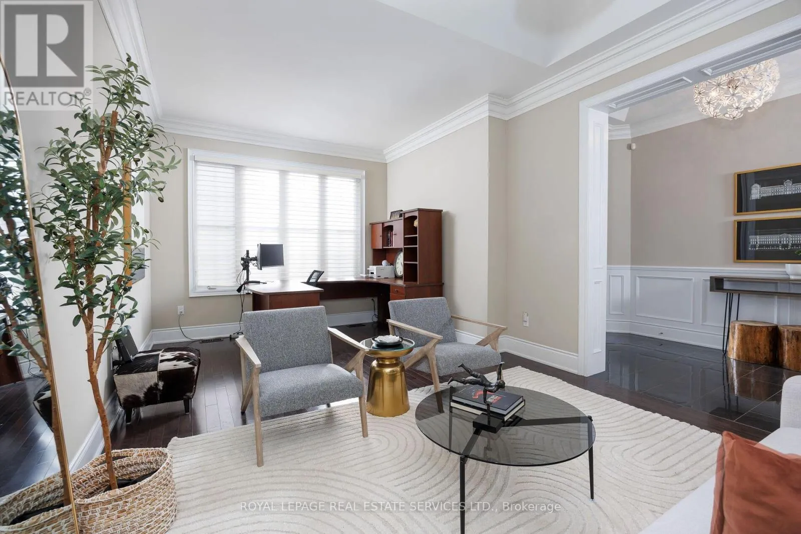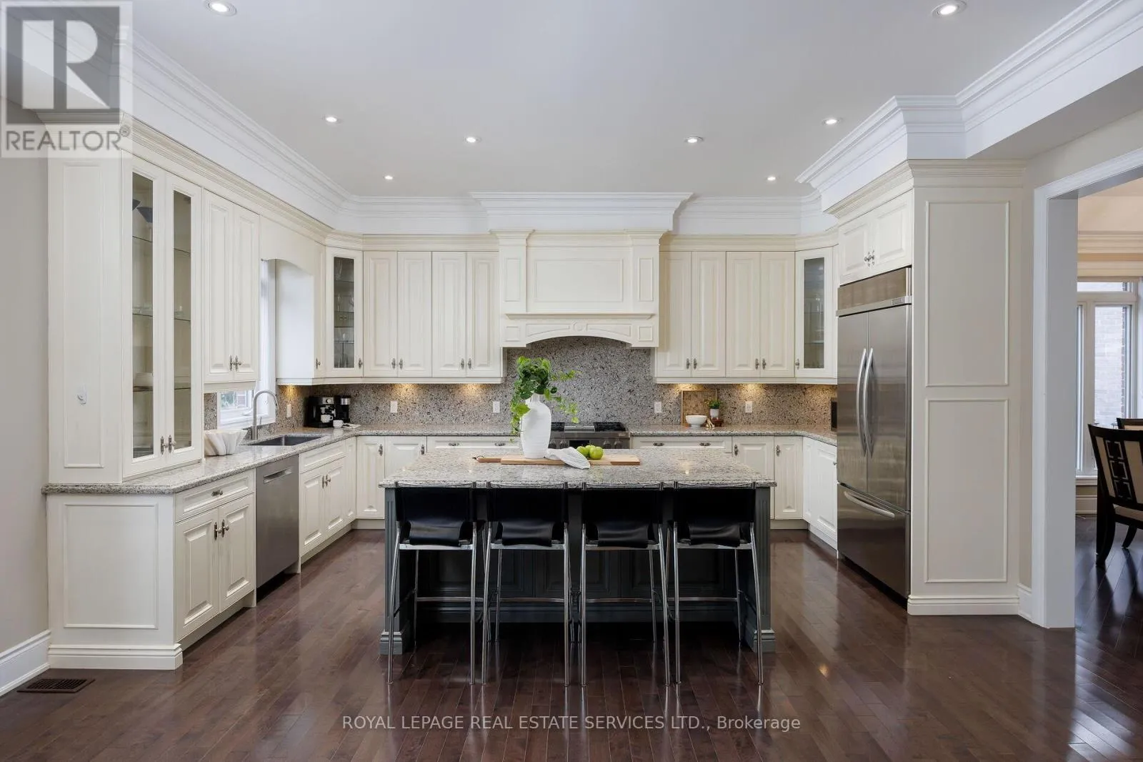 Cross Streets: Paliser & Lakeshore Rd W. ** Directions: Lakeshore Rd W- Paliser Crt. This prestigious southwest Oakville custom home offers luxury living on a large, private pie-shaped lot at the end of a quiet court off Lakeshore Road with mature trees. Ideally located between Oakville Harbour and Bronte Harbour, the property offers quick access to Lake Ontario waterfront parks and beaches,YMCA, downtown Oakville, Bronte Village, and Appleby College, as well as convenient commuter access to the QEW and Bronte GO Station. The striking exterior features a stately stone façade, precast stone accents, a covered front entry, upgraded front door, soffit lighting, and a stone-lined driveway leading to an attached double garage with inside entry. The deep, private backyard, with mature trees, features a newly installed stone patio and ample green space. Offering approximately 3,430 sq. ft. plus finished basement, this 4+1 bedroom, 4.5-bathroom home impresses with 10-foot main-floor ceilings, smooth, coffered, and tray ceiling details, deep crown mouldings, custom cabinetry, upgraded lighting, medium-stained hardwood floors on two levels, and a solid oak staircase with iron pickets spanning three levels. Main-floor living includes a spacious living room/den, formal dining room, and an elegant family room with a coffered (waffle) ceiling and gas fireplace. The chef's kitchen offers extensive custom cabinetry, stone counters and backsplash, under-cabinet lighting, an island with a breakfast bar, deluxe appliances, and a bright breakfast room with a walkout to the patio. All second-floor bedrooms feature ensuite bathroom access, including a luxurious primary suite with two walk-in closets and a spa-like 5-piece ensuite with a freestanding tub and glass shower. The professionally finished basement offers expansive open-concept living, including a recreation/games room, a fifth bedroom, and a 3-piece bathroom. Exclusive & beautiful enclave of homes! (id:27476)