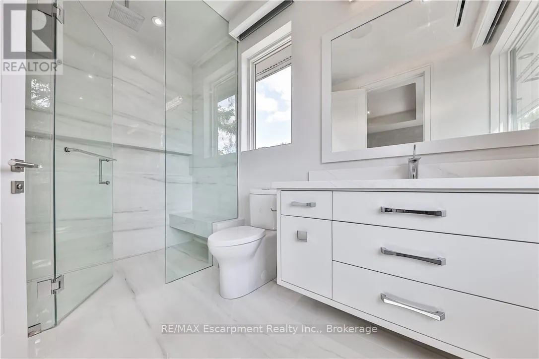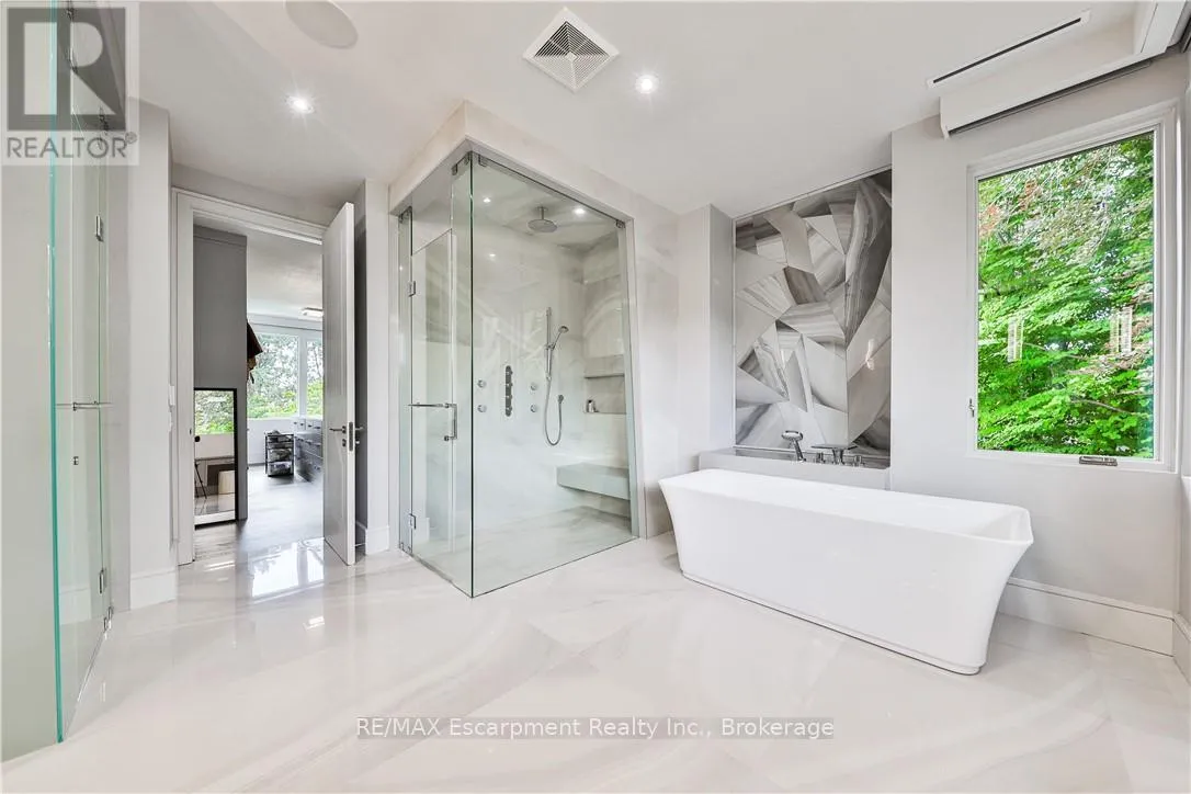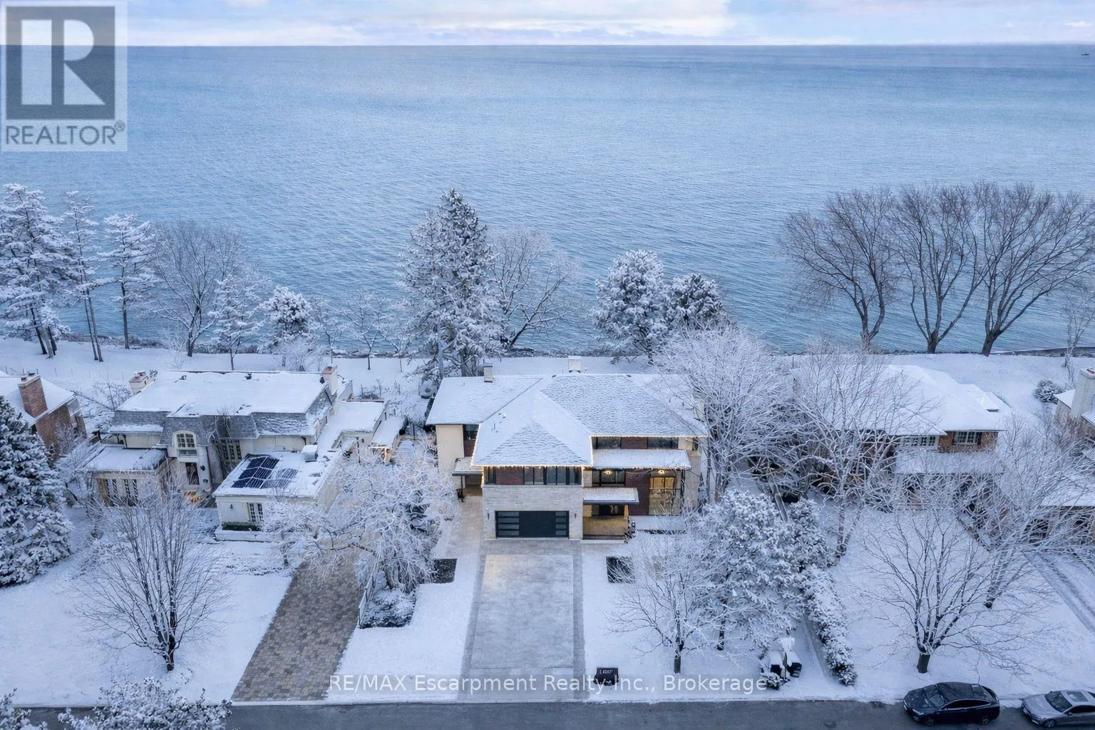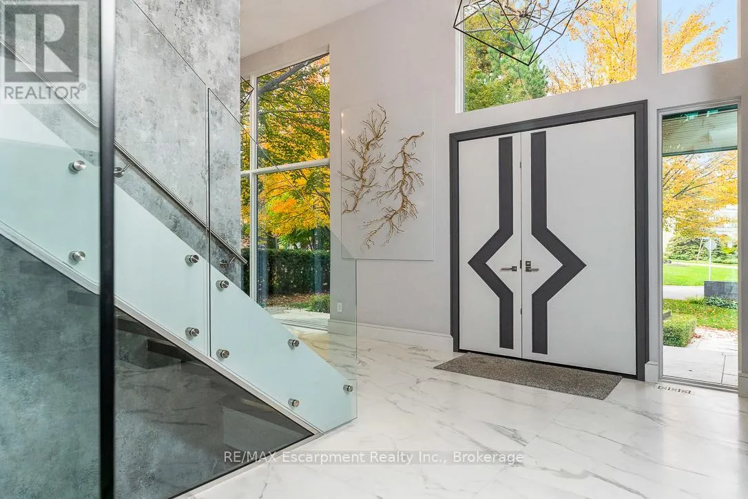 Kingsford Pl to Chancery Lane W Designed to capture panoramic water views - Waterfront luxury awaits at 2250 Chancery Lane W. On exclusive SE Oakville enclave, this modern masterpiece offers 9,177 sf w/5 bdrms & 7 baths. Bright & airy w/ soaring 10ft ceilings on every level & vast windows. Chef's kitchen w/ modern cabinetry, quartz countertops & slab backsplash & top-of-the-line Gaggenau B/I appliances. All living & entertaining spaces are generously proportioned, offer lake vistas & lux finishes such as suspended slab fireplaces, designer lighting & integrated storage to maintain a sleek aesthetic. Multiple walkouts lead to natural stone terrace & infinity pool. MF office. Upstairs - Primary retreat, w/spa-like ensuite & Lake views. 3 add'l bdrms, each w/ensuite, & a laundry rm. Lower Level-Automated theatre, golf simulator, rec/games room w/wet bar; 5th bedroom, exercise room, wine wall, 2 full bathrooms, & walk-up to yard. 3-level elevator, heated tiled floors & full home automation. LUXURY CERTIFIED. (id:27476)