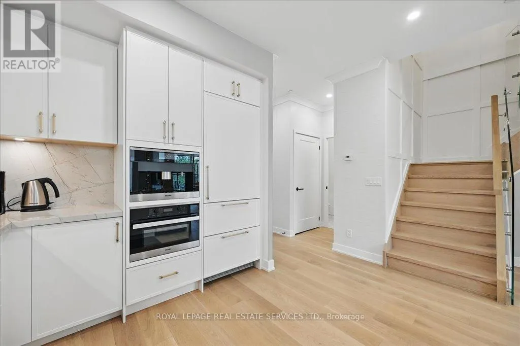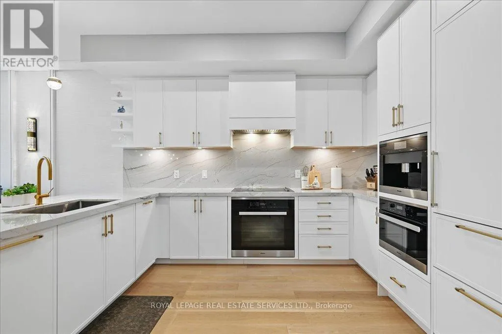 Cross Streets: Trafalgar Road and Dundas Street East. ** Directions: Dundas Street East to Taunton Road (west of Trafalgar Road). RAVINE-VIEW EXECUTIVE TOWNHOME * OVER $100K IN CUSTOM UPGRADES * TWO SIDE-BY-SIDE PARKING SPACES! Experience elevated living in this impeccably curated two bedroom plus spacious den executive townhome, where luxury finishes meet the tranquility of a ravine setting. Thoughtfully reimagined with over $100,000 in custom upgrades, this residence blends inspired design with everyday comfort to create a truly exceptional place to call home. Set against a ravine backdrop, the home's interior is equally captivating. Rich oak hardwood flooring extends throughout, complemented by designer wallpaper and sophisticated detailing that add depth and character to every space. The gourmet kitchen showcases premium Miele appliances, an expansive pantry, and a beautifully balanced design that merges form and functionality. Custom craftsmanship takes centre stage, including a bespoke wall unit, sleek central fireplace, built-in dining cabinetry, refined crown moldings, and a showpiece staircase enhanced with glass panels and artistic accents. The generous den, complete with its own ensuite, offers exceptional versatility, easily serving as a guest suite, home office, or third bedroom depending on your needs. Upstairs, spa-inspired bathrooms feature upgraded backsplashes, statement mirrors, and contemporary finishes that elevate the everyday. Designer chandeliers and sculptural sconce lighting infuse warmth, elegance, and ambiance throughout. Thoughtfully elevated and meticulously finished, this ravine-view retreat offers a rare blend of style, sophistication, and inspired design - an extraordinary home where beauty and comfort are in perfect balance. (id:27476)
