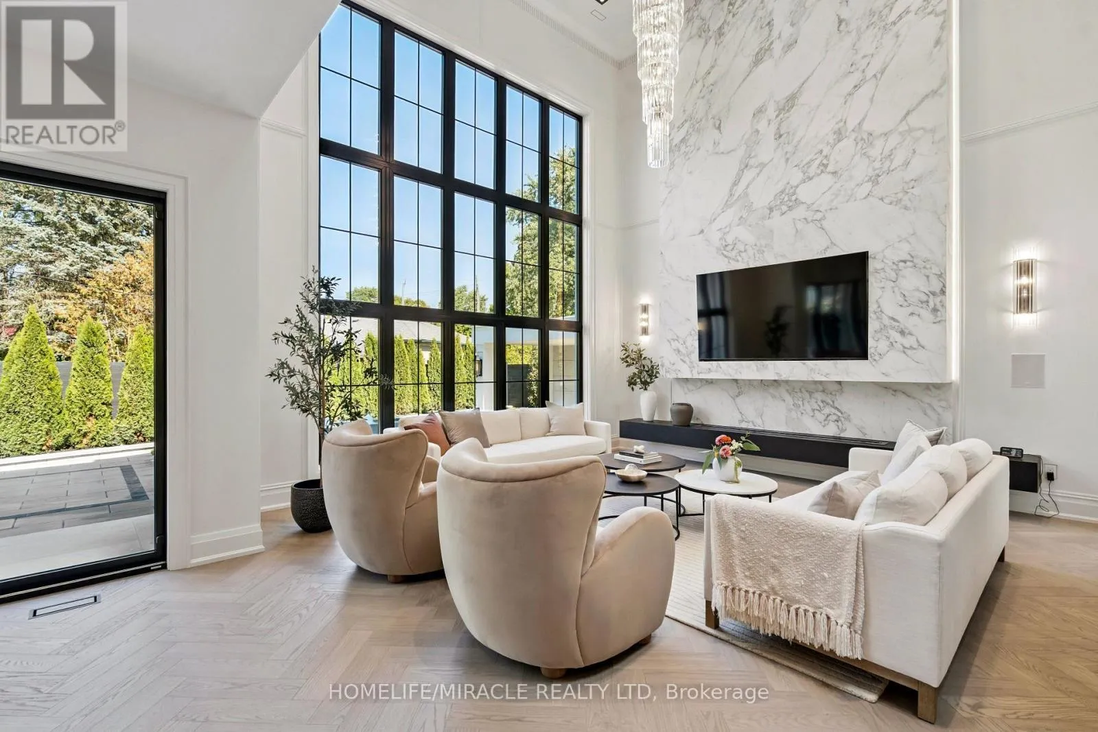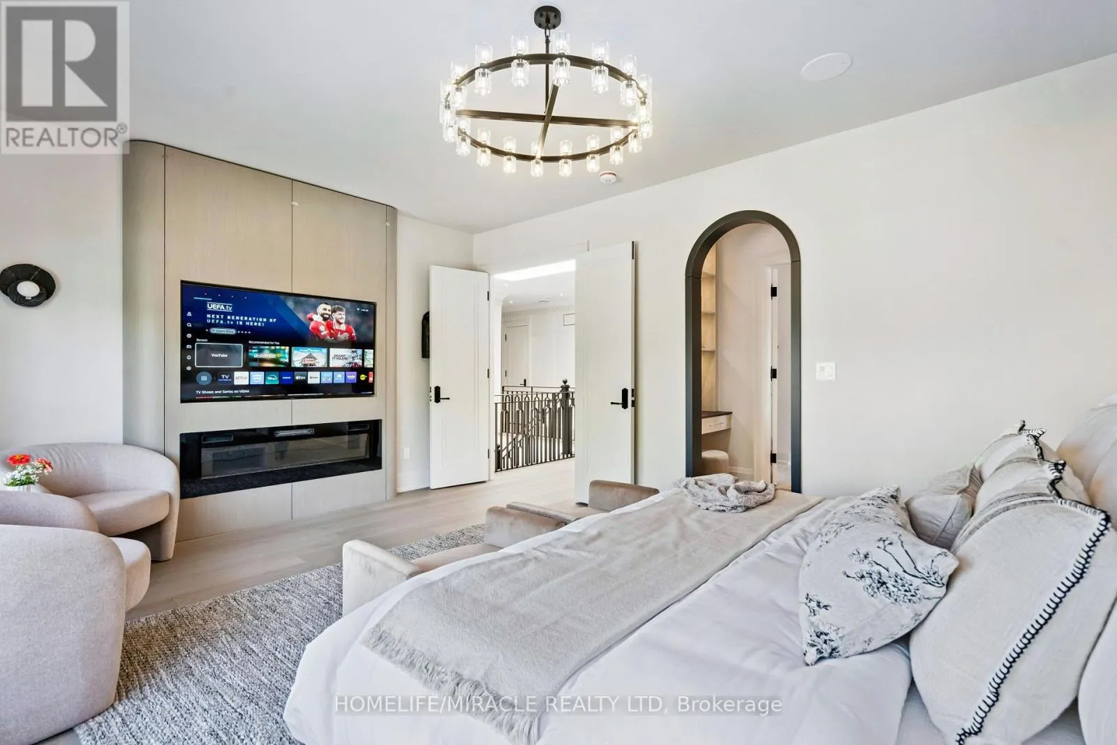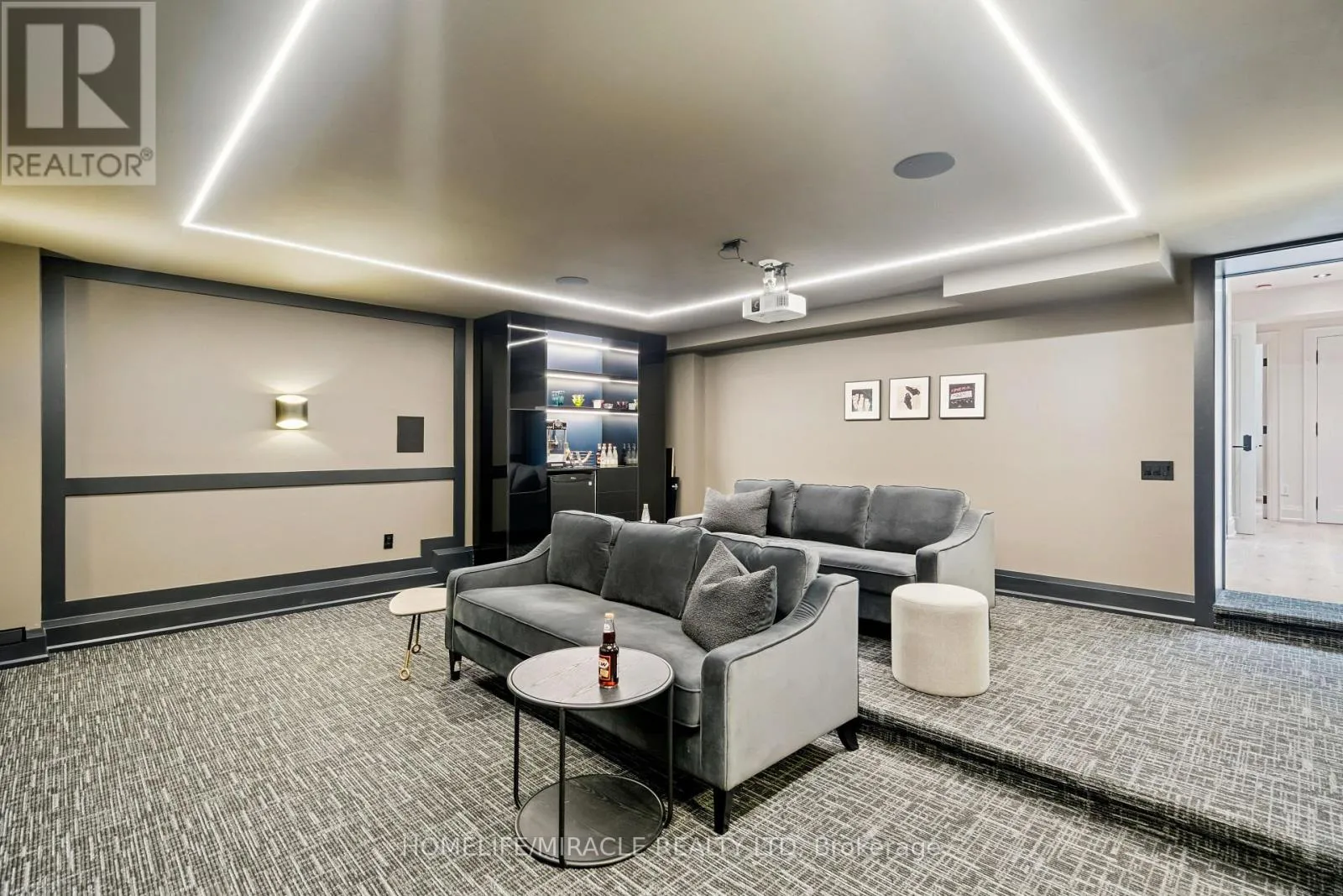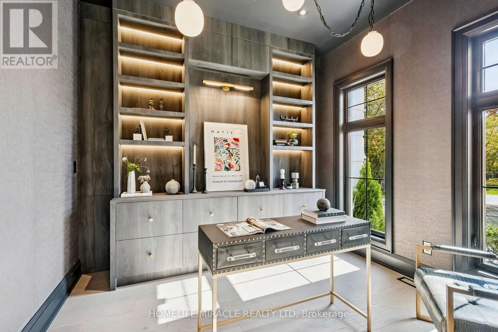 3Rd Line-Bridge -Stafford Welcome to 517 Stafford Drive, an architectural masterpiece in the heart of Oakville where luxury, innovation, and comfort unite. Step through a large custom entry door into a bright foyer finished with elegant ceramic tile and custom lighting, leading to a main floor defined by modern sophistication. Every room features built-in speakers and a fully integrated smart-home system for effortless control of lighting, climate, sound, and security. The formal dining room dazzles with a dramatic chandelier and wine display wall, while the sleek home office offers custom shelving and LED lighting. The chef's kitchen showcases full-height cabinetry, integrated appliances, and a Taj Mahal natural stone waterfall island accented with brass fixtures. The open-concept great room impresses with 20-foot ceilings, a striking marble fireplace, and surround sound. Upstairs, the primary suite is a serene retreat with a spa-inspired ensuite, dual vanities, a freestanding tub, and smart lighting. Additional bedrooms include custom closets and private ensuites. The lower level offers a state-of-the-art home theatre, glass-enclosed gym, recreation room, designer wet bar, and cedar sauna for a spa-like experience. Outside, professionally landscaped grounds provide privacy and tranquility. Minutes from Oakville's premier amenities, residents enjoy proximity to Upper Oakville Shopping Centre, Oakville Place, Farm Boy, Whole Foods, and Metro, with parks and trails nearby. Top-ranked schools-Appleby College, Abbey Park High School, and Iroquois Ridge High School-are close at hand. Perfectly located, beautifully finished, and intelligently designed, 517 Stafford Drive is more than a home-it's a refined, connected way of life. (id:27476)