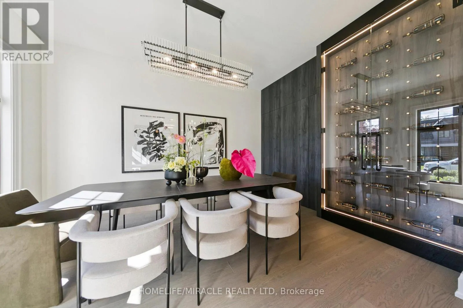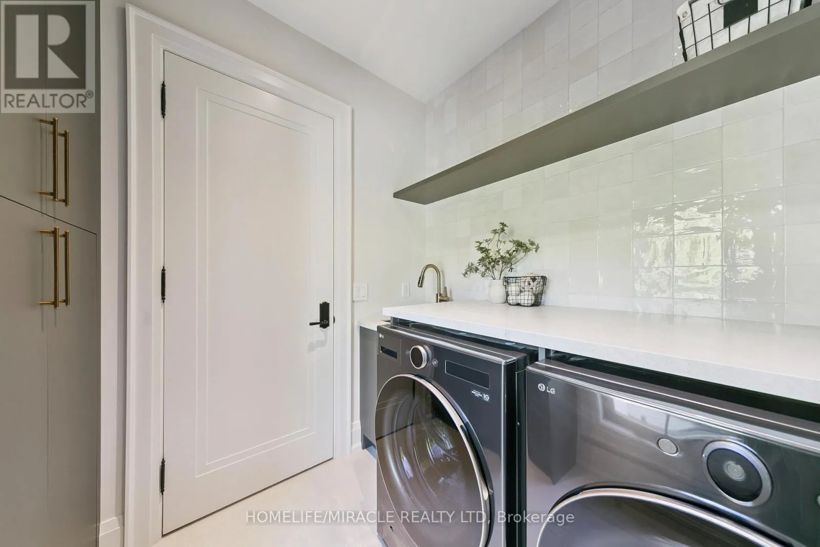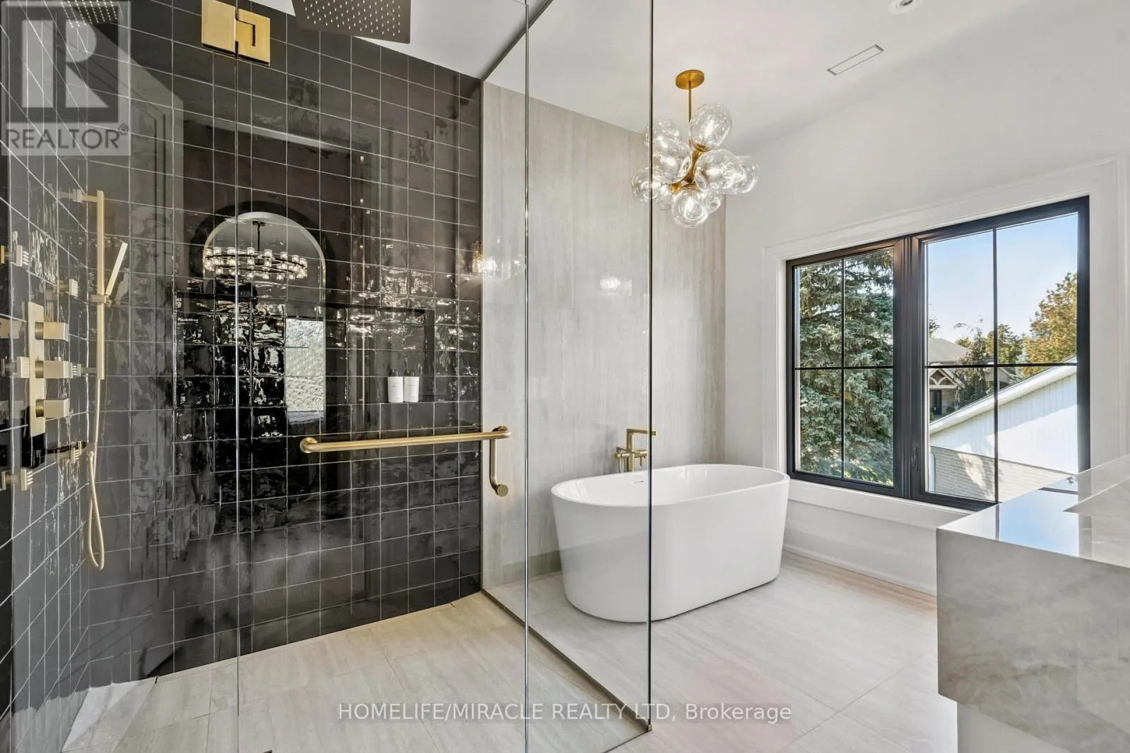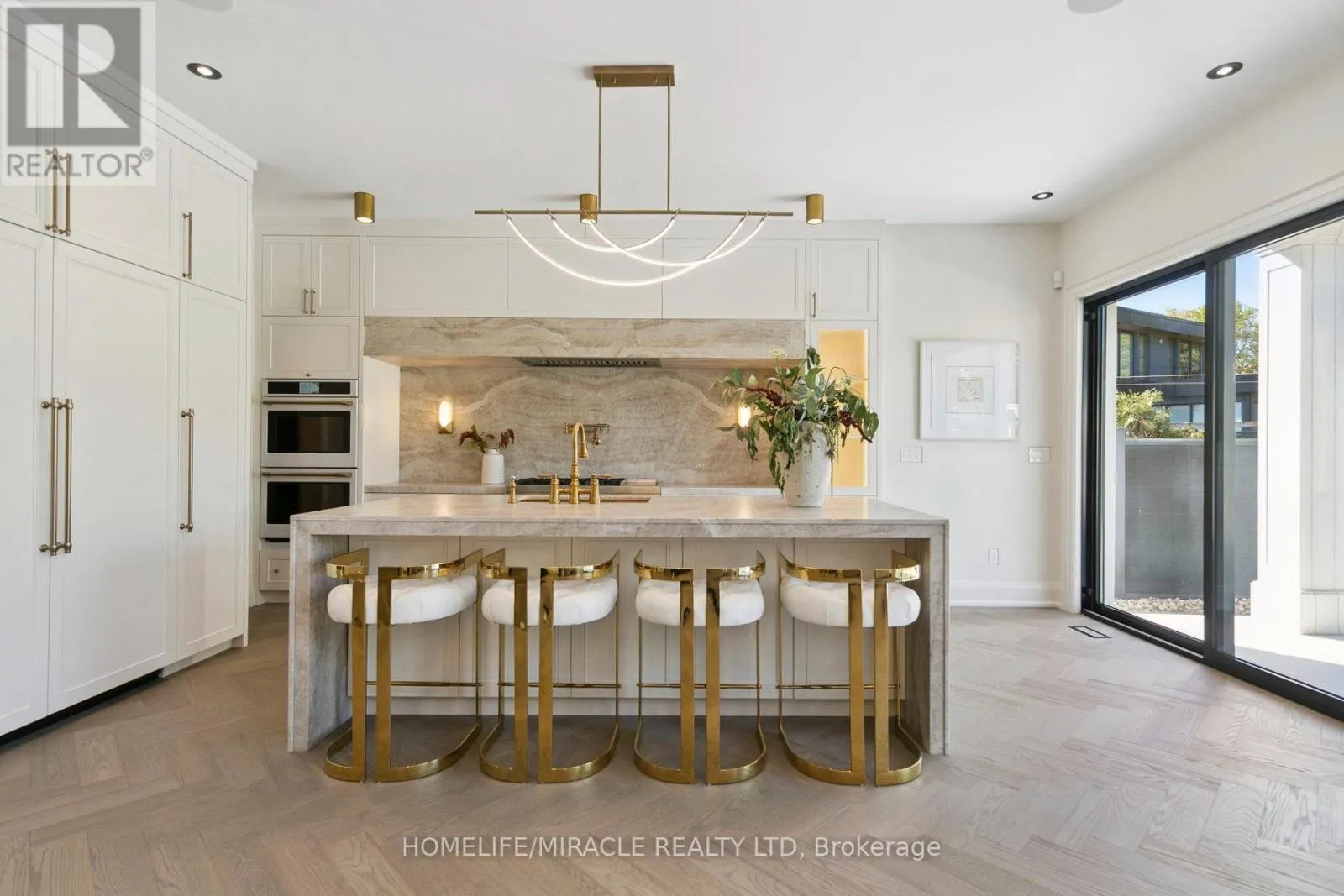 3Rd Line-Bridge -Stafford Welcome to 517 Stafford Drive, an architectural masterpiece in the heart of Oakville where luxury, innovation, and comfort unite. Step through a large custom entry door into a bright foyer finished with elegant ceramic tile and custom lighting, leading to a main floor defined by modern sophistication. Every room features built-in speakers and a fully integrated smart-home system for effortless control of lighting, climate, sound, and security. The formal dining room dazzles with a dramatic chandelier and wine display wall, while the sleek home office offers custom shelving and LED lighting. The chef's kitchen showcases full-height cabinetry, integrated appliances, and a Taj Mahal natural stone waterfall island accented with brass fixtures. The open-concept great room impresses with 20-foot ceilings, a striking marble fireplace, and surround sound. Upstairs, the primary suite is a serene retreat with a spa-inspired ensuite, dual vanities, a freestanding tub, and smart lighting. Additional bedrooms include custom closets and private ensuites. The lower level offers a state-of-the-art home theatre, glass-enclosed gym, recreation room, designer wet bar, and cedar sauna for a spa-like experience. Outside, professionally landscaped grounds provide privacy and tranquility. Minutes from Oakville's premier amenities, residents enjoy proximity to Upper Oakville Shopping Centre, Oakville Place, Farm Boy, Whole Foods, and Metro, with parks and trails nearby. Top-ranked schools-Appleby College, Abbey Park High School, and Iroquois Ridge High School-are close at hand. Perfectly located, beautifully finished, and intelligently designed, 517 Stafford Drive is more than a home-it's a refined, connected way of life. (id:27476)