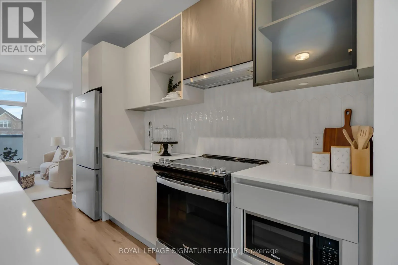 Dundas St W / Neyagawa Blvd Brand New Freehold Townhouse End Unit Backing To A Ravine. Featuring 3 Bedrooms And 3Bathrooms.Laminate Flooring Throughout. Enter Into A Spacious Great Room On The Ground Floor. The Kitchen Is A Chef's Dream, Featuring A Breakfast Area, Modern Appliances, And Quartz Countertops And Backsplash , Along With A Separate Dining Space For Entertaining. Enjoy The Seamless Flow From The Living Room To A Walk-Out Terrace, Ideal For Relaxing. The Master Bedroom Boasts A Luxurious 4-Piece Ensuite And A Private Balcony, Providing A Serene Retreat. Surrounded by Fine Dining, Top Shopping Destinations, A Beautiful Shoreline, And Exceptional Public And Private Schools In The Gta. Conveniently Located Near Highways 407 And 403, GO Transit, And Regional Bus Stops. **EXTRAS** LED lighting throughout the home, Tankless Domestic Hot Water Heater, Stainless steel hood fan, Island with one side waterfall, One Gas connection for barbeque inthe back yard. One hosebibb in the back yard and in the Garage. (id:27476)