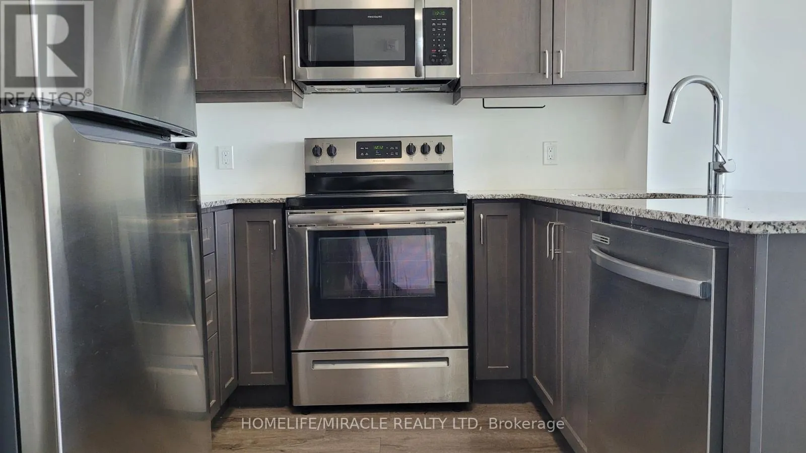 6th Line/Dundas St West Welcome to Mattamy built upgraded beautiful 1 Bedroom + 1 Den unit.9 feet ceiling. Upgraded kitchen with soft close cabinet, granite counter top with flush breakfast bar. Stainless steel appliances with over the range microwave. Washer/Dryer In-Suite laundry. W/O Balcony with beautiful view. Media wall. Bedroom with large picture window and mirrored closet. Smart home equipped keyless entry. Rooftop terrace, Gym/Exercise room. Close to major highways, hospital. Surrounded by many amenities. Short walk to school and shopping. Public transport at door step. Owned 1 Parking and 1 Locker. Internet included in monthly maintenance. (id:27476)