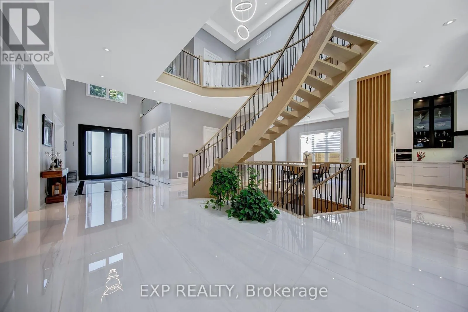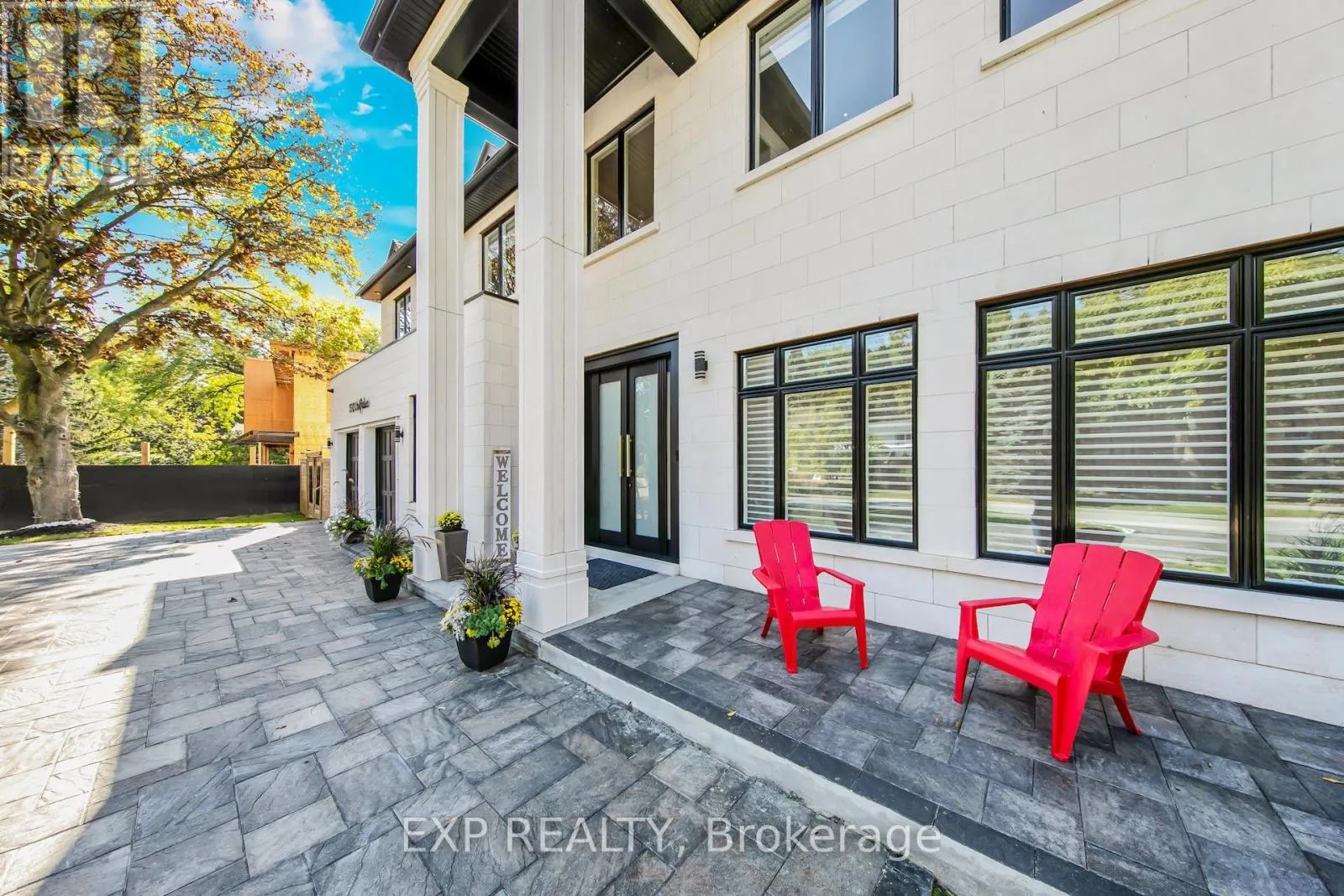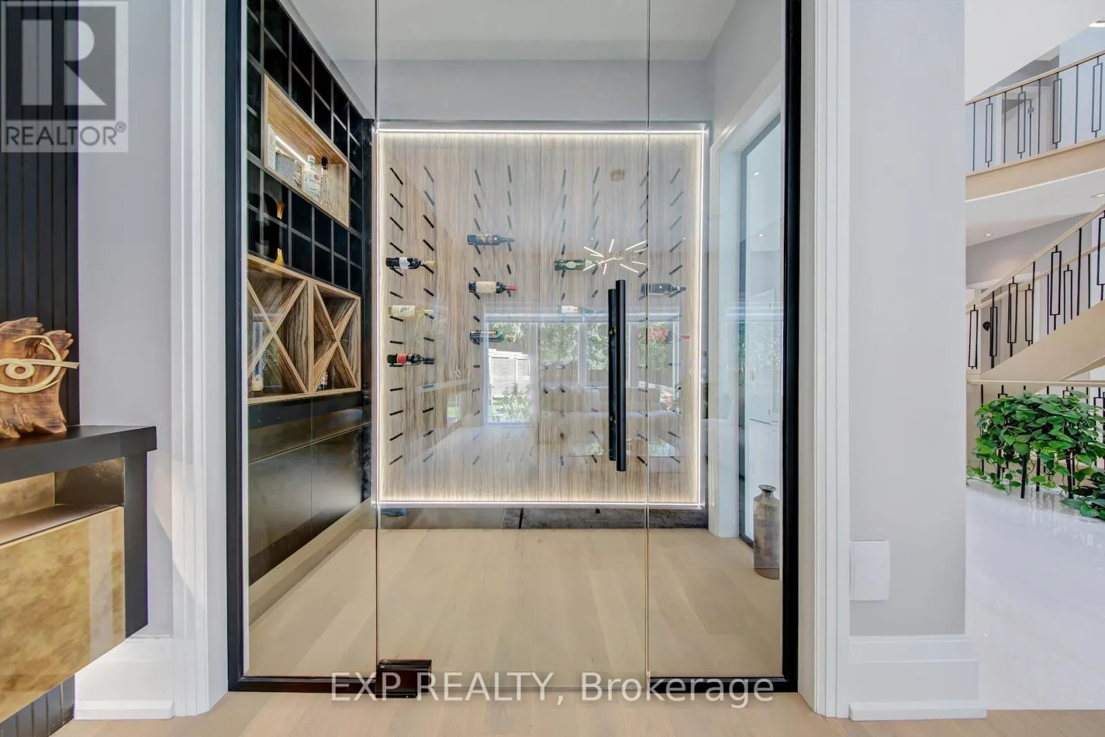 Cross Streets: LAKESHORE RD WEST TO WOLFDALE AVE. ** Directions: LAKESHORE RD WEST /WOLFDALE AVE. Welcome to 150 Wolfdale Avenue. Entertainers dream home, built by Ambassador Fine Custom Homes in 2023 fall, on a 0.36 acres in Southwest Oakville, south of Lakeshore Road. With 7276 square feet of living space on all three levels, this home perfectly combines sophisticated luxurious design with quality construction to create the ultimate package. The main floor is beautifully designed with exquisite detail radiant heated large porcelain tiles. The near 11-foot ceilings provide an open-airy feeling throughout. No estate home would be complete without a grand foyer and and this home has just that with 22 -foot ceilings, center of the house with 24-foot ceilings with large skylight allowing the entire house to be flooded with natural light while also highlighting the stunning hanging circular staircase beneath. Built-in wine cellar storage for over 180 bottles. The kitchen is a show piece with stunning 10-foot waterfall island, quartz slab backsplash and two-toned cabinetry and top-of-the-line Wolf ,Sub-Zero & Miele appliances. The kitchen/great room combination is designed for large scale entertaining with it being open concept to the dining room. A tucked away mud room, walk in closet with custom shelving & an elegant custom powder room are the perfect spaces to keep your family organized while providing inside access to both the garage and rear yard. Main floor you find your primary home office with front yard views. Elevator besides mud area travels all 3 floors for convenience of movement. The upper hallway stops you with a beautifully vaulted ceiling, skylights. Primary bedroom is located across the rear of the home taking in the best views of the backyard with ample natural light. The open concept walk-in closet with a skylight complements the primary ensuite, is a beautiful combination of rich tones to create the ultimate spa oasis. 3 additional bedrooms, Laundry & Library are found upstairs, each one uniquely decorated & appointed with closets and ensuites. (id:27476)