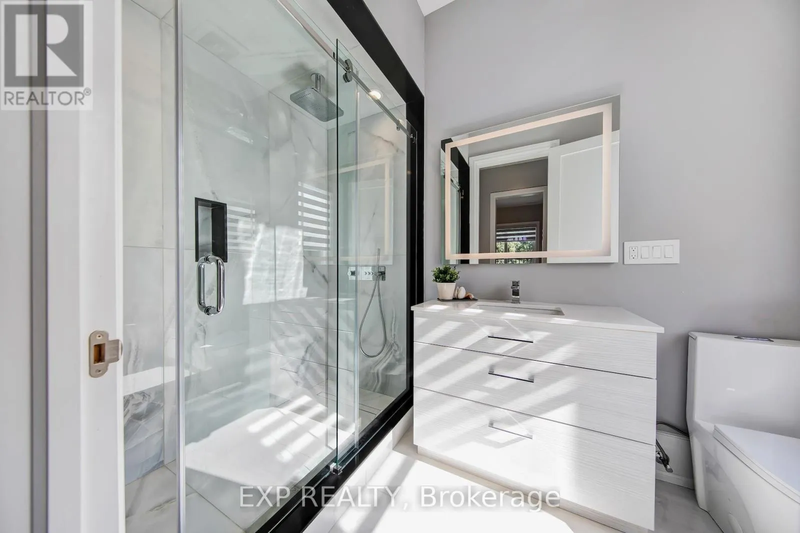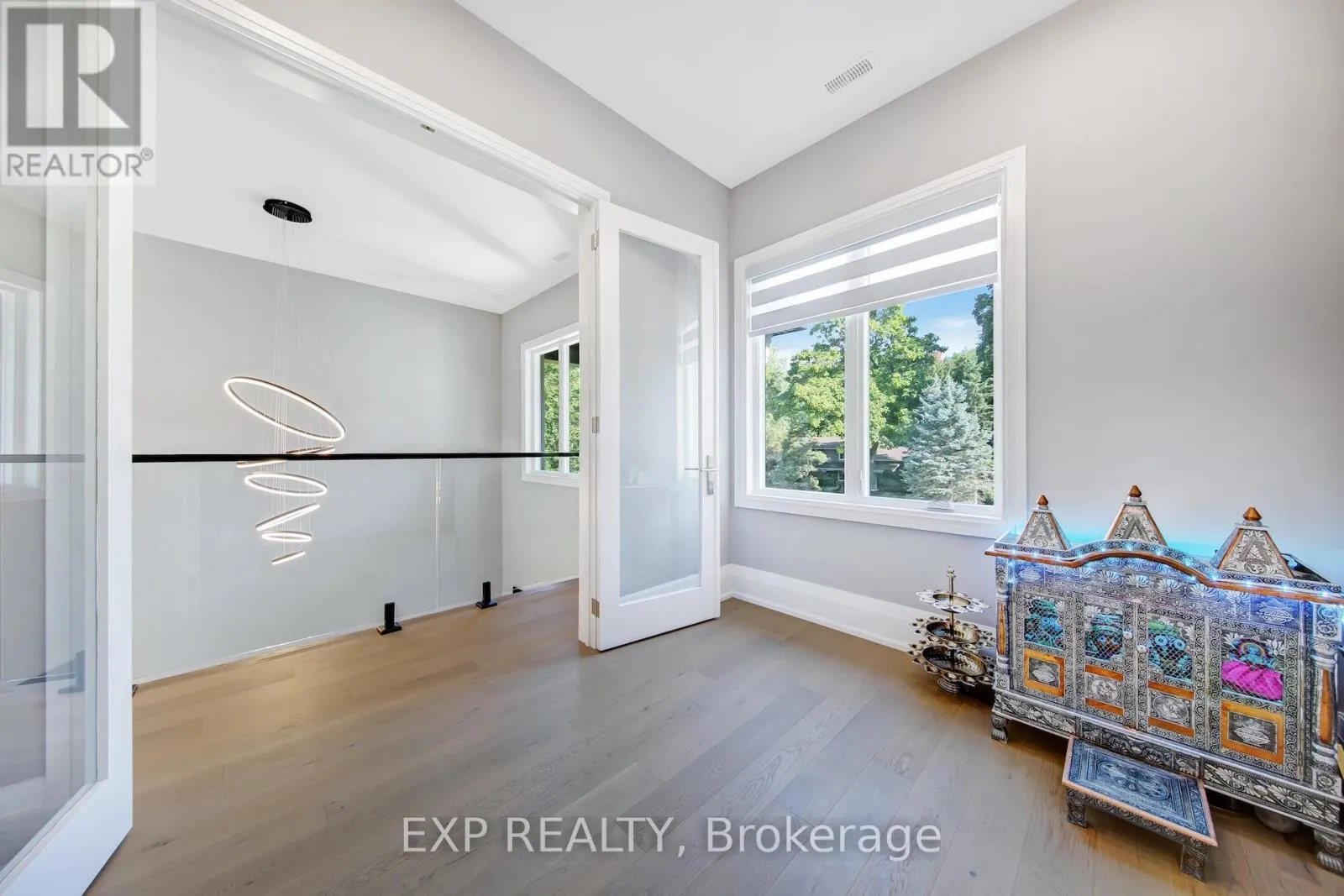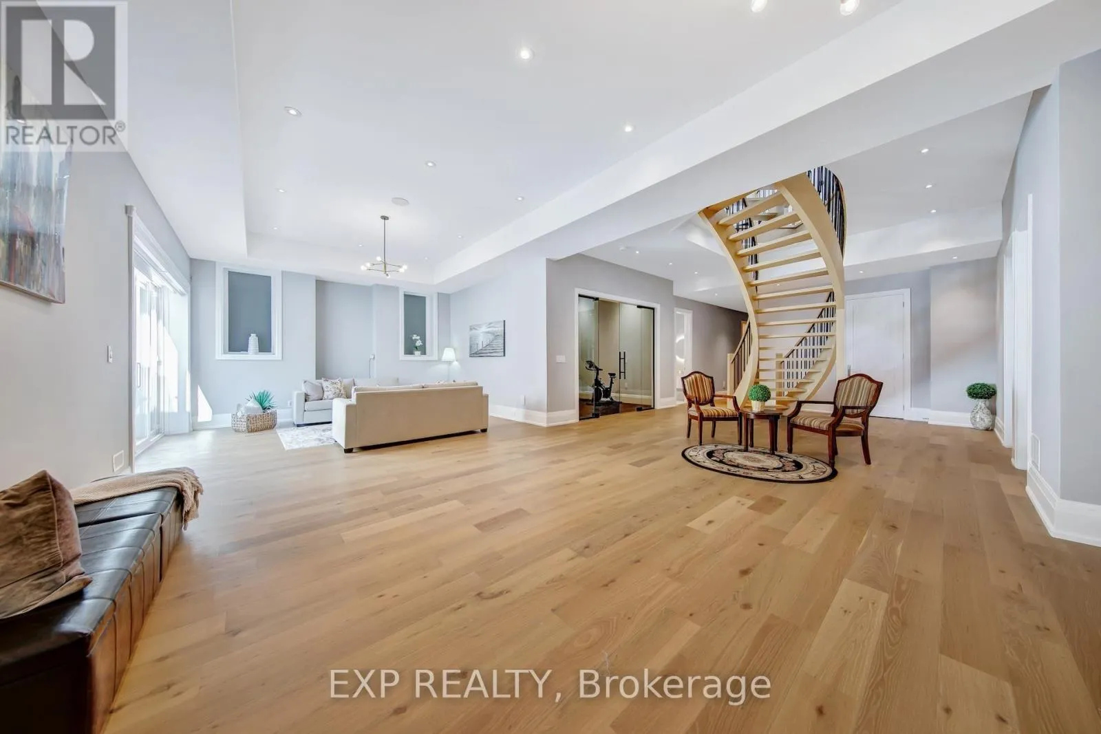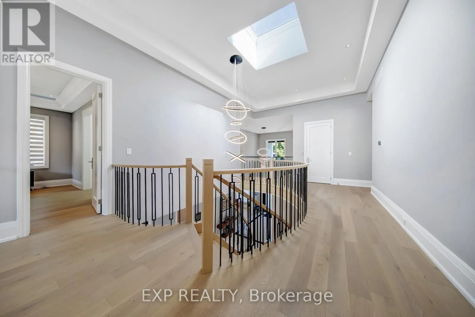 Cross Streets: LAKESHORE RD WEST TO WOLFDALE AVE. ** Directions: LAKESHORE RD WEST /WOLFDALE AVE. Welcome to 150 Wolfdale Avenue. Entertainers dream home, built by Ambassador Fine Custom Homes in 2023 fall, on a 0.36 acres in Southwest Oakville, south of Lakeshore Road. With 7276 square feet of living space on all three levels, this home perfectly combines sophisticated luxurious design with quality construction to create the ultimate package. The main floor is beautifully designed with exquisite detail radiant heated large porcelain tiles. The near 11-foot ceilings provide an open-airy feeling throughout. No estate home would be complete without a grand foyer and and this home has just that with 22 -foot ceilings, center of the house with 24-foot ceilings with large skylight allowing the entire house to be flooded with natural light while also highlighting the stunning hanging circular staircase beneath. Built-in wine cellar storage for over 180 bottles. The kitchen is a show piece with stunning 10-foot waterfall island, quartz slab backsplash and two-toned cabinetry and top-of-the-line Wolf ,Sub-Zero & Miele appliances. The kitchen/great room combination is designed for large scale entertaining with it being open concept to the dining room. A tucked away mud room, walk in closet with custom shelving & an elegant custom powder room are the perfect spaces to keep your family organized while providing inside access to both the garage and rear yard. Main floor you find your primary home office with front yard views. Elevator besides mud area travels all 3 floors for convenience of movement. The upper hallway stops you with a beautifully vaulted ceiling, skylights. Primary bedroom is located across the rear of the home taking in the best views of the backyard with ample natural light. The open concept walk-in closet with a skylight complements the primary ensuite, is a beautiful combination of rich tones to create the ultimate spa oasis. 3 additional bedrooms, Laundry & Library are found upstairs, each one uniquely decorated & appointed with closets and ensuites. (id:27476)