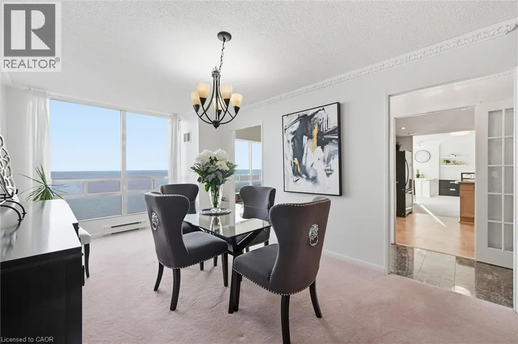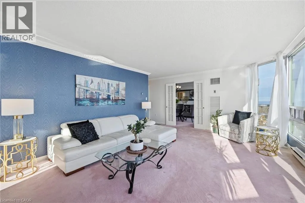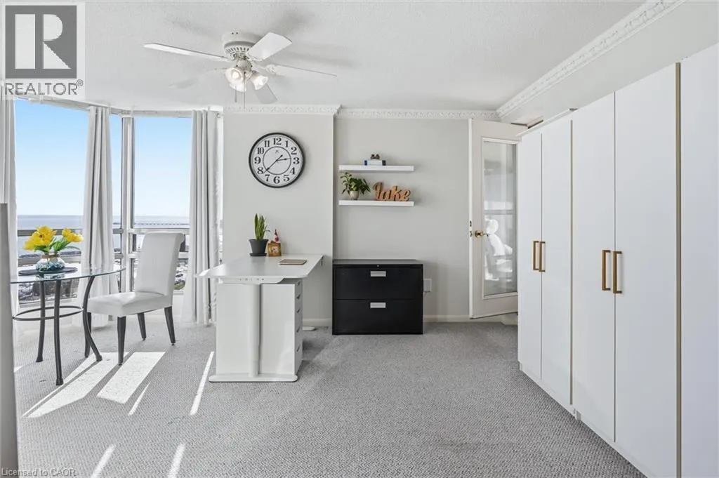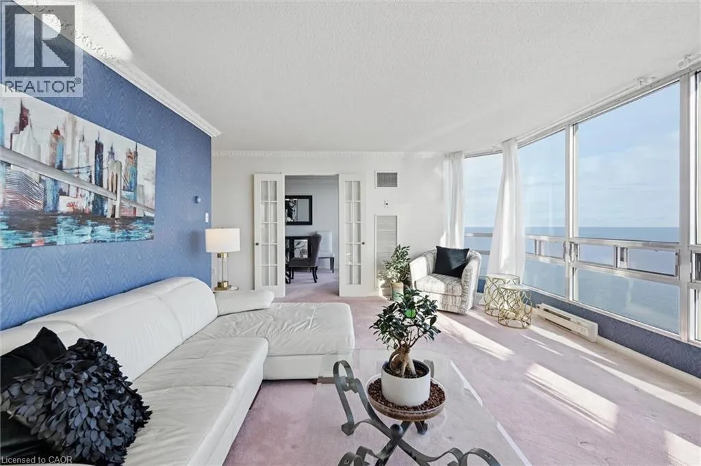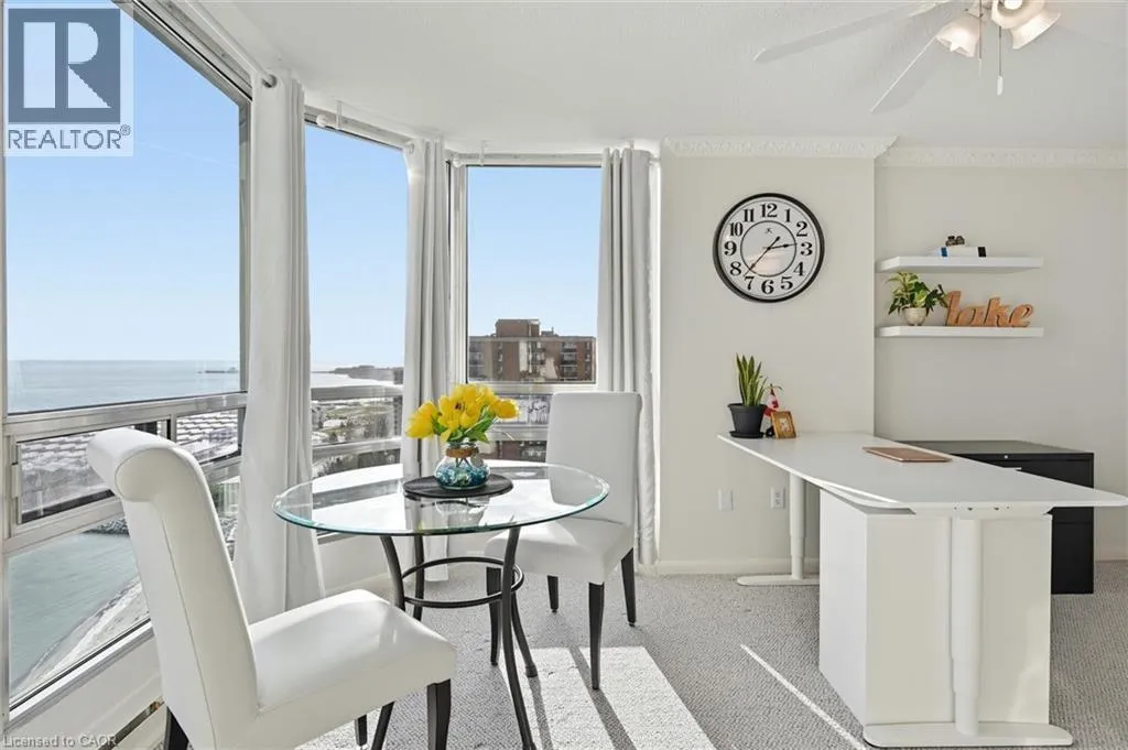 Third Line To Marine Drive, or Bronte Road to Marine Drive Welcome to an exceptional residence at the iconic Ennisclare II on the Lake-where sophistication, serenity & sweeping waterfront vistas define everyday living. Perched on the 18th floor this rare corner suite showcases breathtaking, uninterrupted views of Lake Ontario & Bronte Harbour from every principal room. Offering 1828 sq ft of refined single-level living it features 2 bedrooms, a versatile den, 2 bathrooms and three walkouts to an expansive private balcony designed for effortless indoor-outdoor enjoyment. Floor-to-ceiling windows flood the open-concept living and dining rooms with natural light capturing the beauty of the lake from sunrise to sunset. The impressive foyer with tray ceiling and walk-in closet sets the tone for timeless elegance. The den-enhanced by calming water views and balcony access-makes an ideal home office, reading retreat, or creative space. The quality kitchen blends function and style with abundant cabinetry, sleek countertops, a striking backsplash pot lighting, and a bright breakfast area. The spacious primary suite offers its own balcony walkout, walk-in closet and a spa-inspired ensuite with deep soaker tub. A second bedroom with balcony access and an adjacent 3-piece bath provides exceptional comfort for guests. Additional conveniences include in-suite laundry with storage, two underground parking spaces and an exclusive-use locker. Residents enjoy a resort-calibre lifestyle within this meticulously maintained, smoke-free, pet-free community. Amenities include 24-hour security, an indoor pool and hot tub, state-of-the-art fitness and yoga studios, clubhouse with library, entertainment lounges, billiards, golf simulator, squash and tennis courts, art and woodworking studios, car wash, visitor parking, and beautifully landscaped grounds. Just steps to Bronte Village's marina, waterfront trails boutique shops, cafés, and dining-with easy access to the GO-this luxurious lakeside suite embodies Oakville's premier waterfront living. (id:27476)