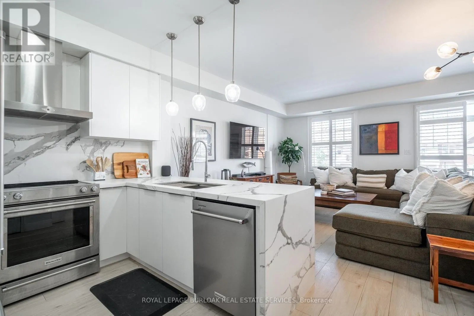 Cross Streets: Glenashton Dr & Taunton Rd. ** Directions: Glenashton Dr to Taunton Rd, left on Gerogian Dr. No detail was overlooked in the professional renovation of this luxurious executive townhome. Nestled in the highly desirable Oak Park neighbourhood of Oakville, it offers the perfect balance of convenience and natural beauty, with easy access to local amenities, scenic trails, and parks, as well as being just minutes from major highways. Highlights include Kitchen Aid appliances, elegant porcelain countertops with waterfall edge and backsplash, stunning oak wood flooring, modern lighting, and California shutter throughout. The expansive top-floor patio equipped with a gas line, is ideal for entertaining. Additional storage space is provided with a garage and locker below. (id:27476)