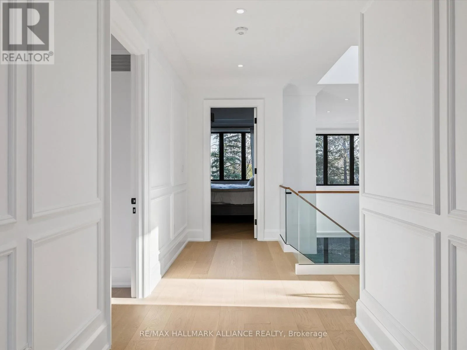 Cross Streets: Third Line /Bridge Rd. ** Directions: 3rd Line & Bridge Rd & Seaton Dr. Experience the perfect blend of modern sophistication and timeless craftsmanship in this new Keeren Design Modern Farmhouse, situated on an oversized 60' x 141' mature lot fronting onto a quiet park in desirable Southwest Oakville. Built to the highest standards with meticulous attention to detail, this home features a double-height open to above great room and the oversize windows and a central skylight fills the home with natural light, 7" wide select hardwood flooring, 9" baseboards, oversized 5" casings, and solid wood trendy trim work throughout. Expansive windows flood the interior with natural light, complemented by pot lights, built-in speakers, high-end Riobel fixtures, Restoration Hardwares. The stunning Misani Custom Design kitchen showcases full quartz slab countertops and backsplash, Wolf gas range, Sub-Zero refrigerator, Miele dishwasher and microwave, and prep pantry kitchen-ideal for family living and entertaining. A sleek micro-concrete modern fireplace enhances the main floor's contemporary aesthetic. Upstairs, the primary suite features 10ft tray ceilings, artistic ceiling details, a spa-like ensuite with dual steam shower, freestanding tub, and heated smart toilet. Each bedroom offers private access to ensuites with curb-less frameless-glass Italian porcelain showers. The finished lower level includes wide-plank hardwood flooring, a recreation room, bedroom with office nook, and a custom Saunacore cedar sauna with frameless glass. Exterior features include Fraser cedar siding, custom cedar garage doors, covered porch with gas line, and a multi-zone irrigation system. The oversized garage accommodates a 20' vehicle or boat with ultra-quiet jack-lift openers. An architectural masterpiece combining elegance, functionality, and location-just minutes from Appleby College and other top-rated schools, Coronation Park, the lake and Go stations and highways. (id:27476)