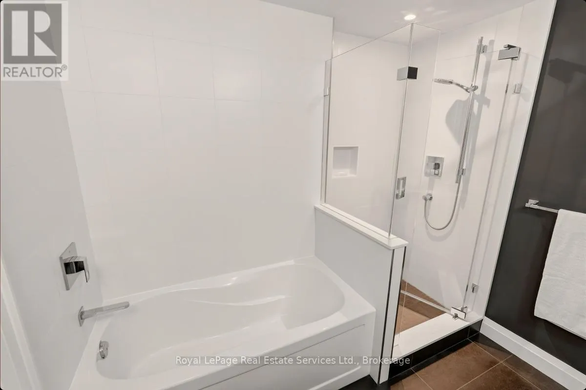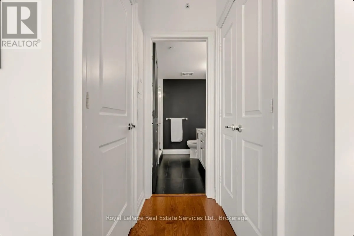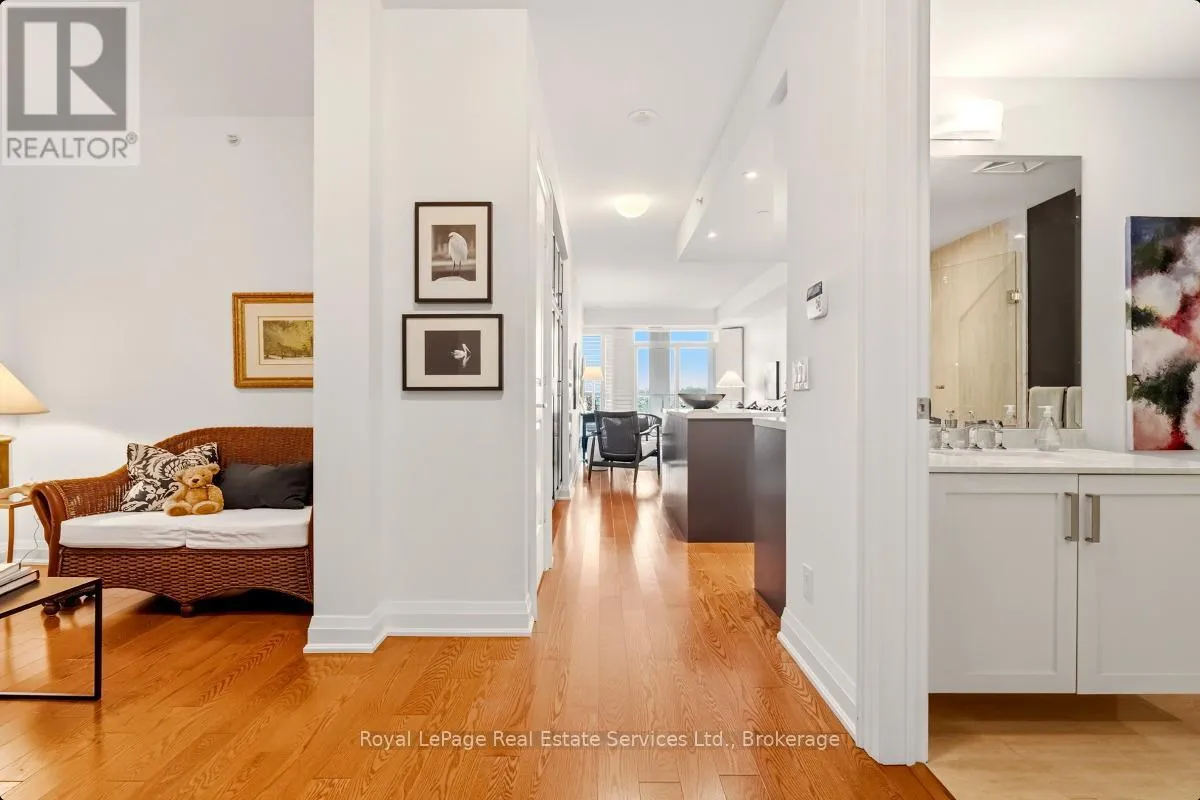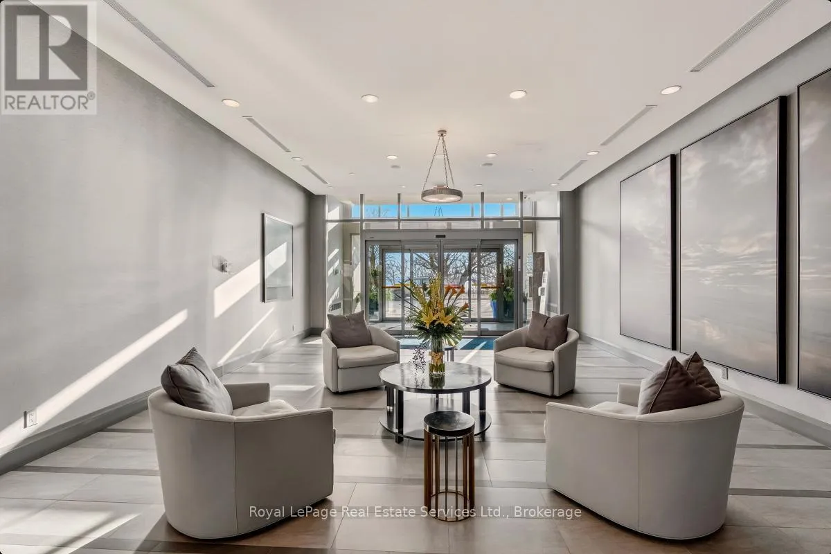 Cross Streets: Bronte Rd and Lakeshore Rd W. ** Directions: QEW West to Bronte Rd, S on Bronte. Experience refined, resort-style living at The Shores Residences, perfectly situated in the highly sought-after lakeside community of Bronte Harbour. This elegant one-bedroom, plus den, two-bathroom suite-known as The Cavalier-offers over 823 sq. ft. of thoughtfully designed living space, complemented by a spacious 155 sq. ft. terrace. The functional layout showcases floor-to-ceiling windows, soaring 9-foot ceilings, engineered hardwood flooring, and a sleek kitchen featuring a large island, quartz countertops, task lighting, and stainless steel Wolf range and Miele washer/dryer appliances. Residents of The Shores enjoy an exceptional collection of amenities designed to impress even the most discerning buyer, including a 24-hour concierge, fully equipped fitness centre, yoga studio, library, meeting and party rooms, dog wash station, outdoor pool with loungers, sauna and change rooms, BBQ areas, and an outdoor fireplace with gathering spaces. Additional highlights include a wine snug with climate-controlled wine storage, theatre room, games room, and even a car wash. All of this is just steps from charming restaurants, boutique shops, and the marina. Welcome to The Shores at Bronte Harbour. (id:27476)