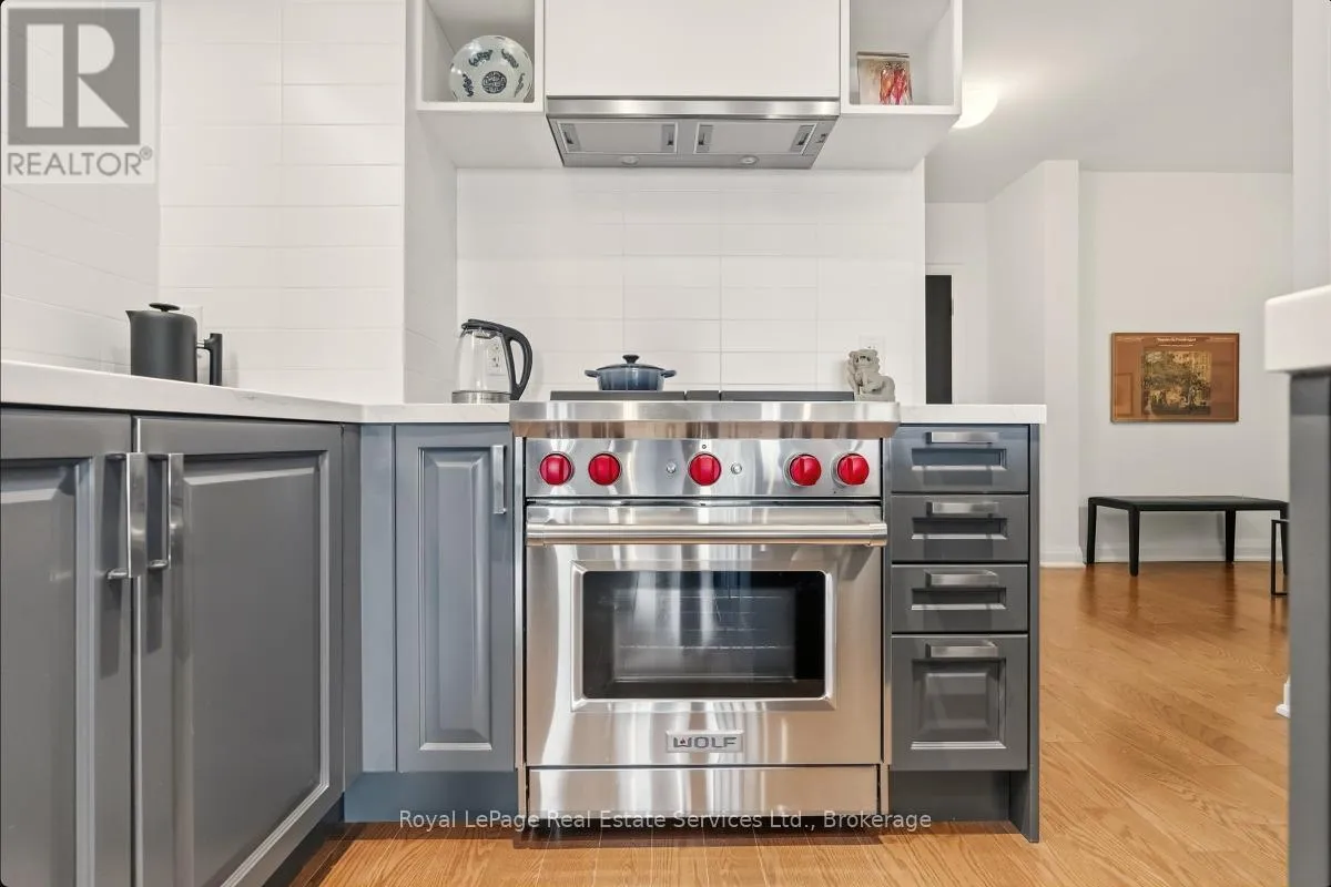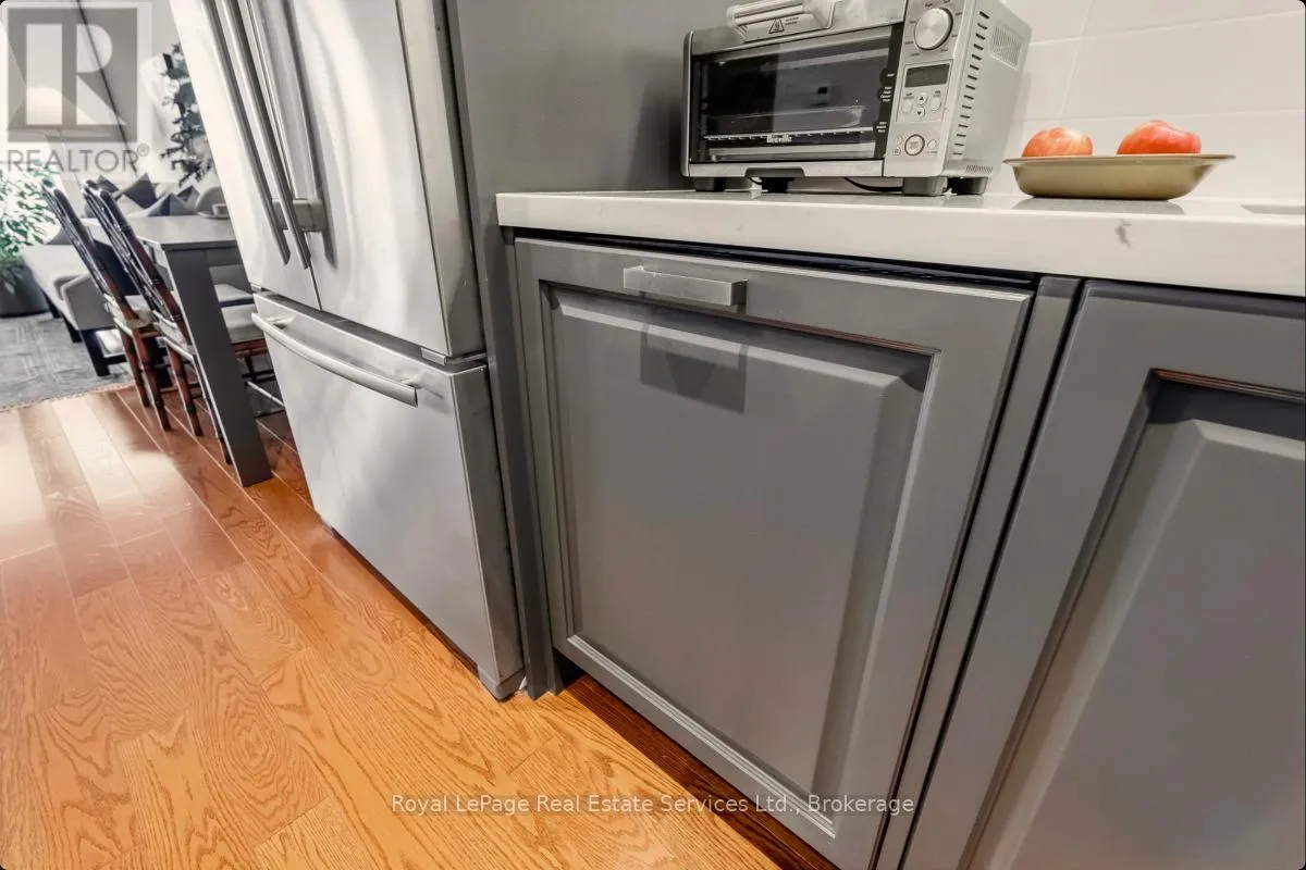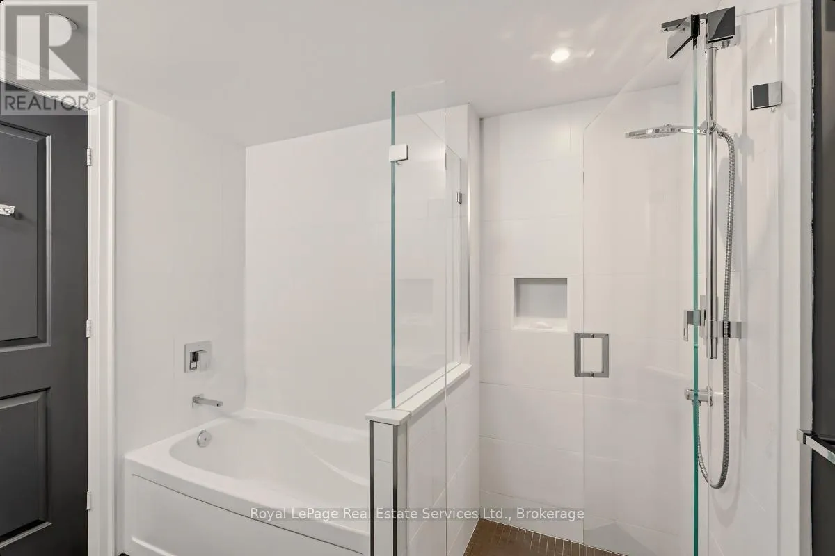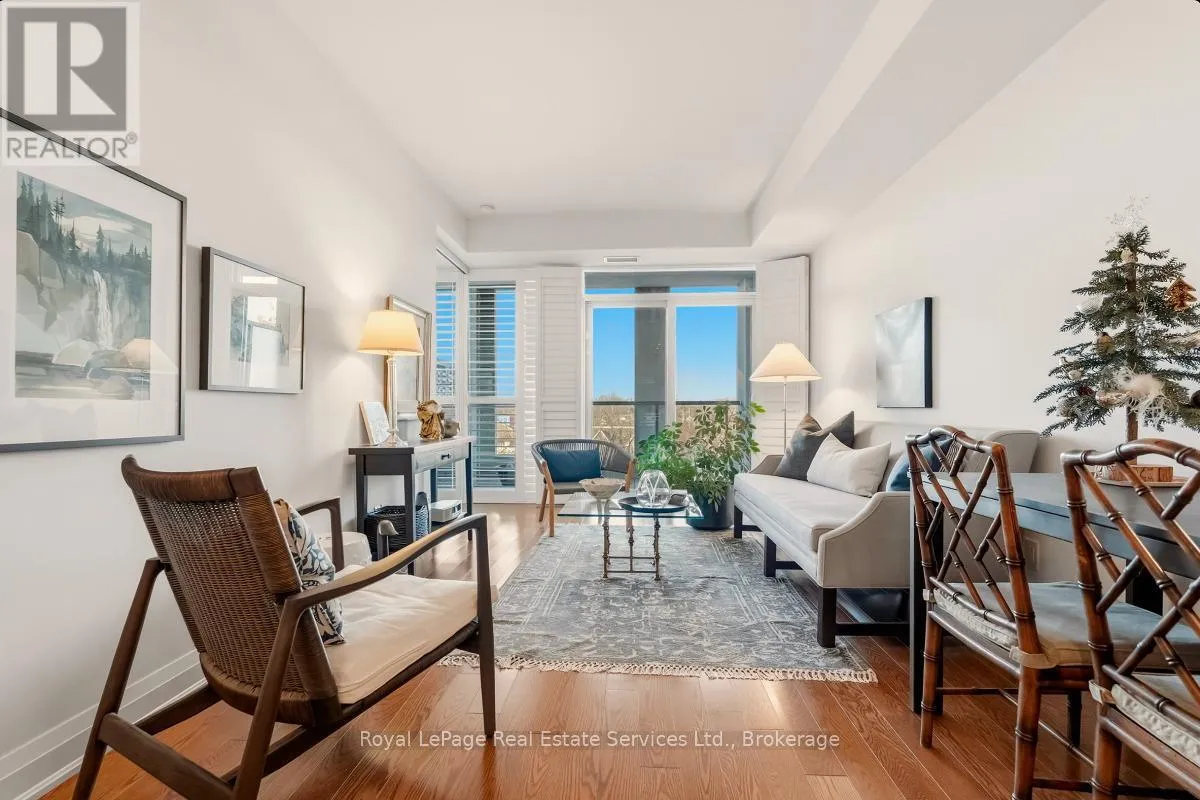 Cross Streets: Bronte Rd and Lakeshore Rd W. ** Directions: QEW West to Bronte Rd, S on Bronte. Experience refined, resort-style living at The Shores Residences, perfectly situated in the highly sought-after lakeside community of Bronte Harbour. This elegant one-bedroom, plus den, two-bathroom suite-known as The Cavalier-offers over 823 sq. ft. of thoughtfully designed living space, complemented by a spacious 155 sq. ft. terrace. The functional layout showcases floor-to-ceiling windows, soaring 9-foot ceilings, engineered hardwood flooring, and a sleek kitchen featuring a large island, quartz countertops, task lighting, and stainless steel Wolf range and Miele washer/dryer appliances. Residents of The Shores enjoy an exceptional collection of amenities designed to impress even the most discerning buyer, including a 24-hour concierge, fully equipped fitness centre, yoga studio, library, meeting and party rooms, dog wash station, outdoor pool with loungers, sauna and change rooms, BBQ areas, and an outdoor fireplace with gathering spaces. Additional highlights include a wine snug with climate-controlled wine storage, theatre room, games room, and even a car wash. All of this is just steps from charming restaurants, boutique shops, and the marina. Welcome to The Shores at Bronte Harbour. (id:27476)