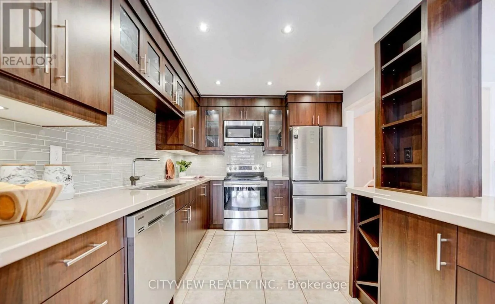 Cross Streets: North Of Upper Middle Off West. ** Directions: Oakville. Bright & well-maintained freehold townhome in sought-after West Oak Trails. Open-concept layout with 3 spacious bedrooms plus a fully finished basement. Upgraded kitchen features modern dark cabinetry, glass tile backsplash, Caesarstone countertops, under-mount sink, glass cabinet doors with lighting, Dining area with walk-out to large deck. Primary bedroom offers 4-piece ensuite and large closet. Finished basement with modern flooring . Single garage with second driveway parking. Walk to schools and Heritage Trails. Property currently tenanted.Pictures from previous owner state (id:27476)